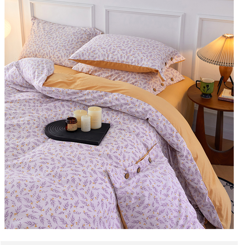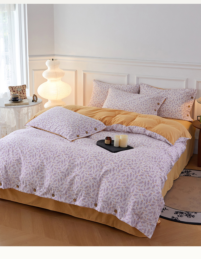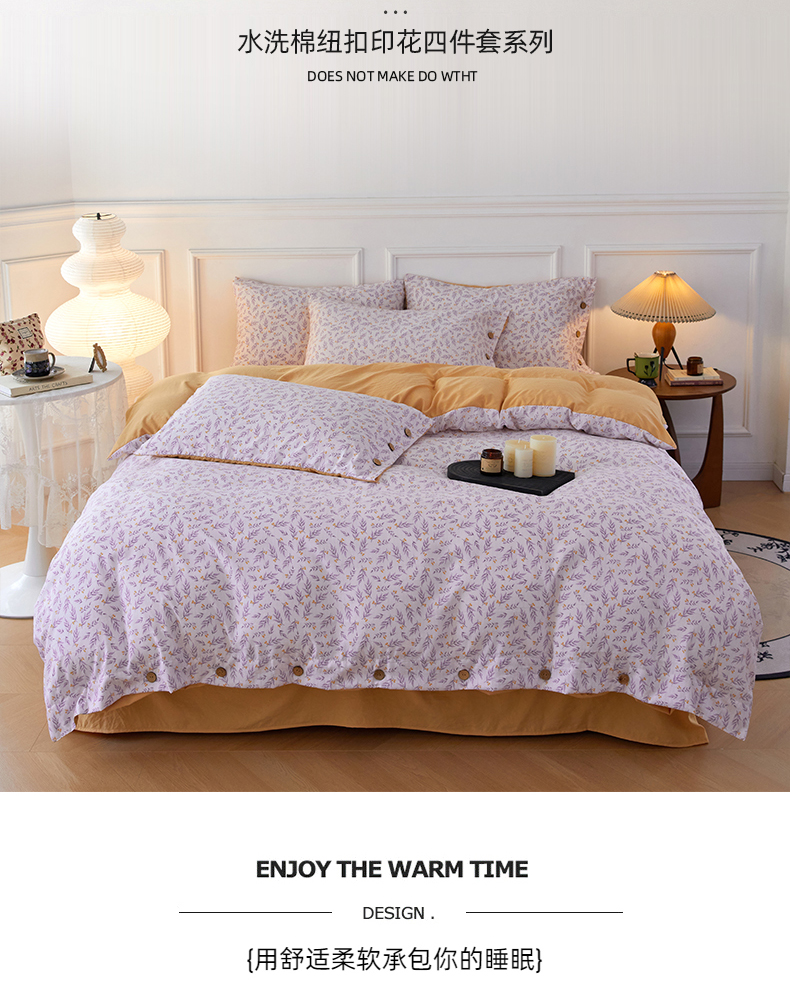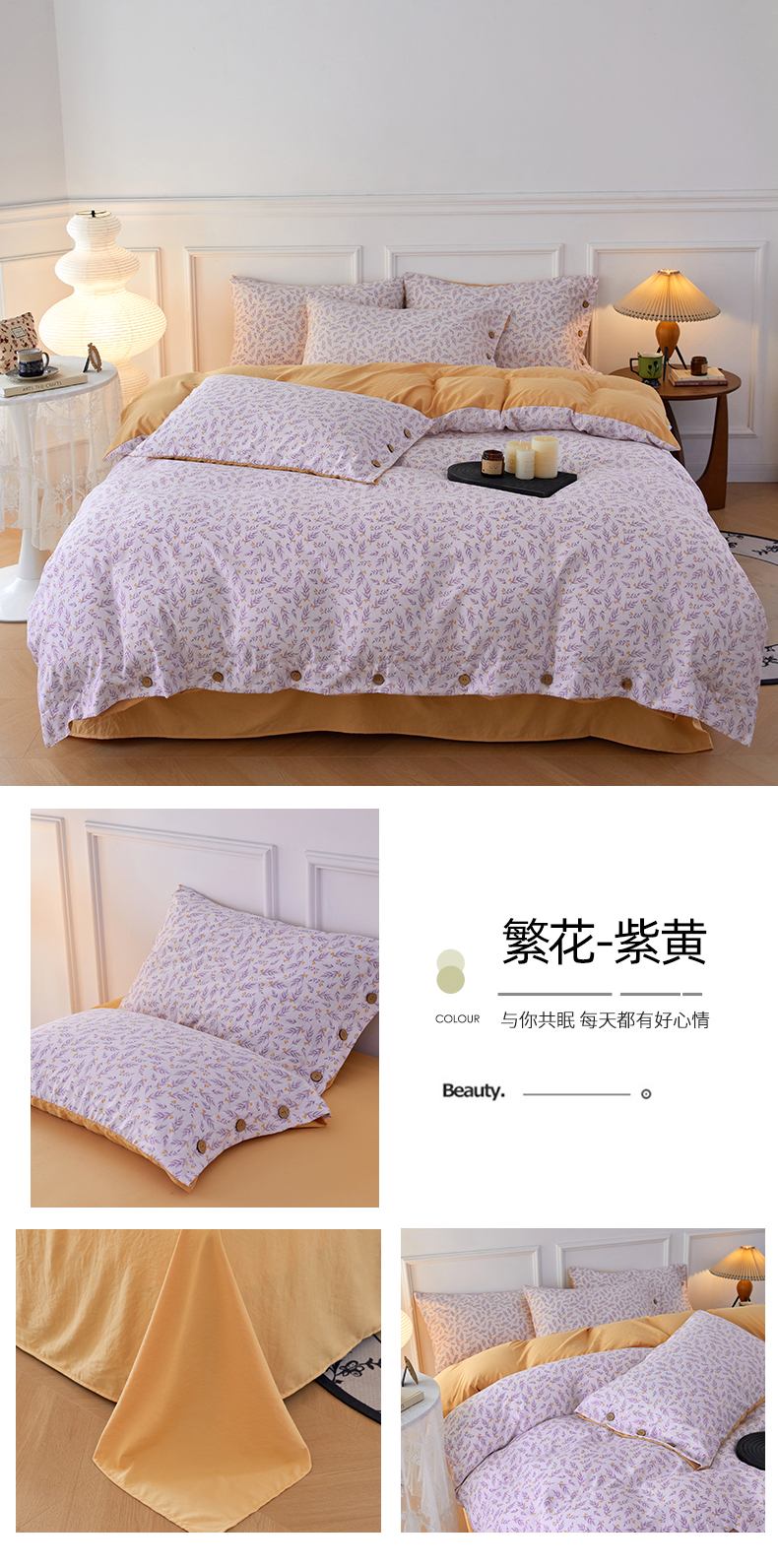 当前位置: 91家纺网 > 商品网购 > 床品套件 > 四件套 > 水洗棉四件套 > yyds网供 2024新款小碎花纽扣款田园风四件套非全棉纯棉日式水洗棉三件套花卉 繁花紫黄