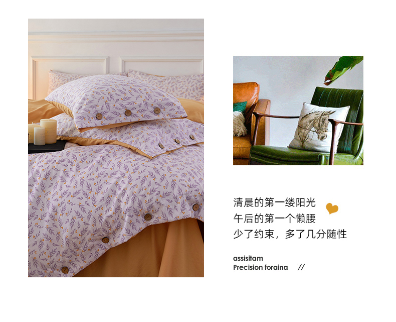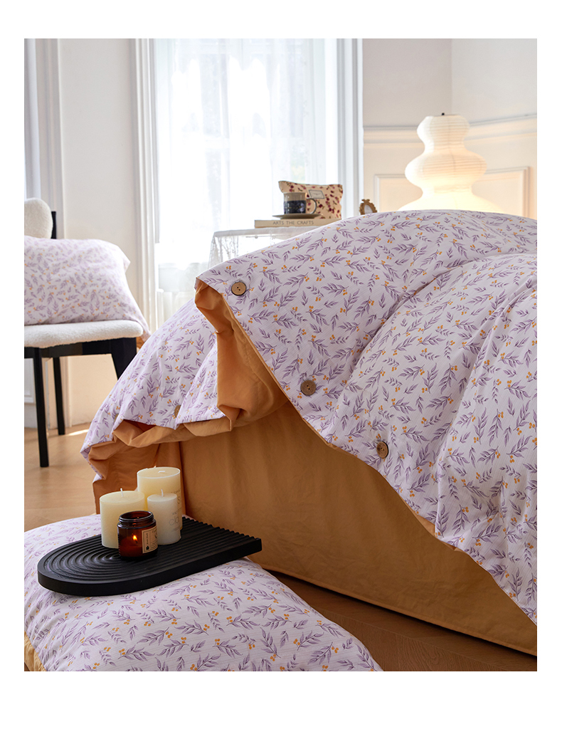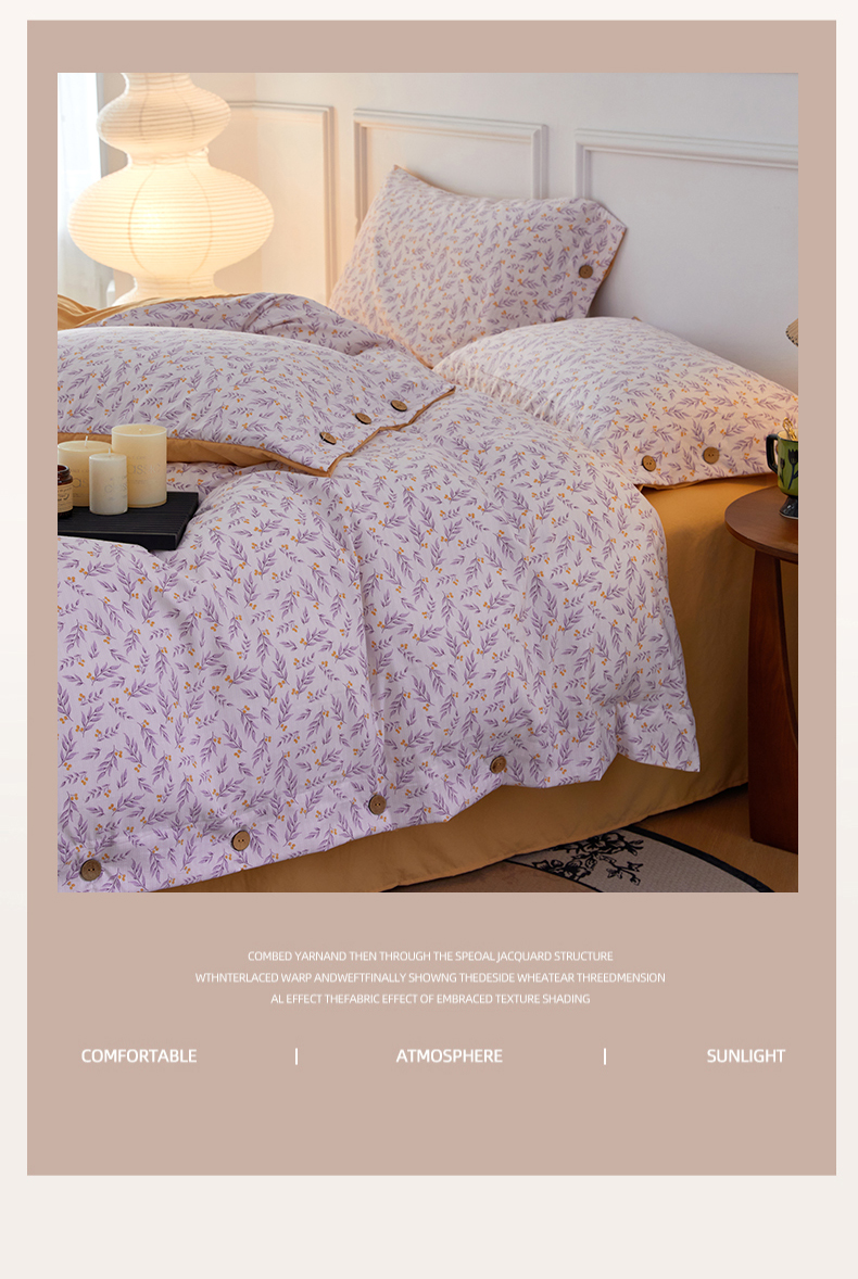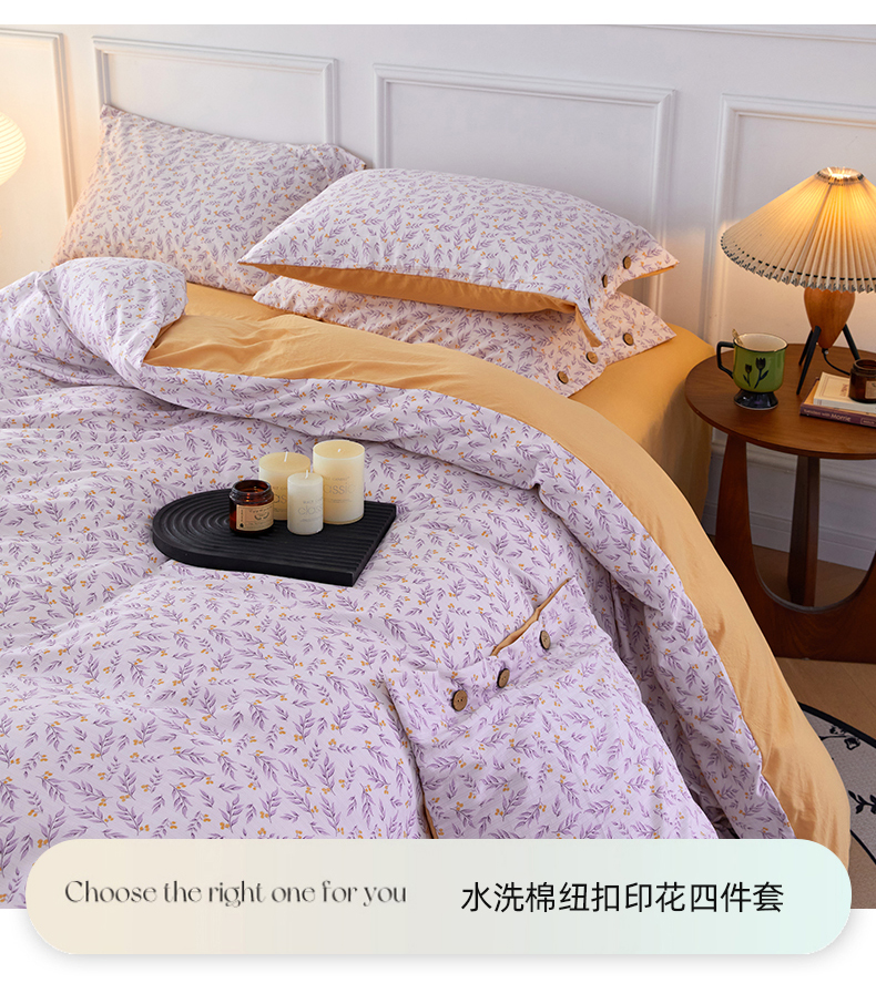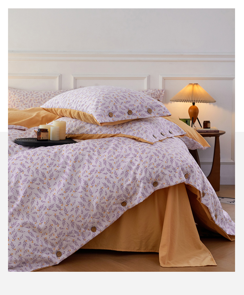 当前位置: 91家纺网 > 商品网购 > 床品套件 > 四件套 > 水洗棉四件套 > yyds网供 2024新款小碎花纽扣款田园风四件套非全棉纯棉日式水洗棉三件套花卉 繁花紫黄