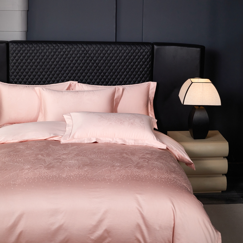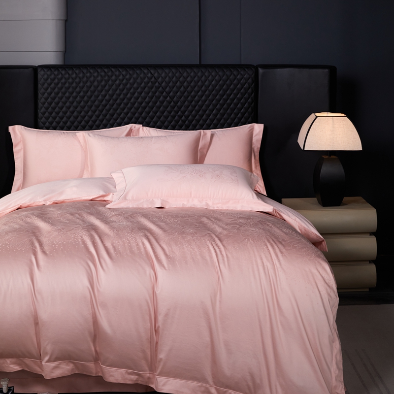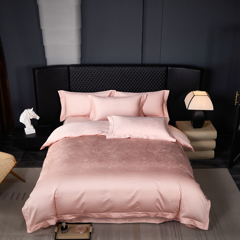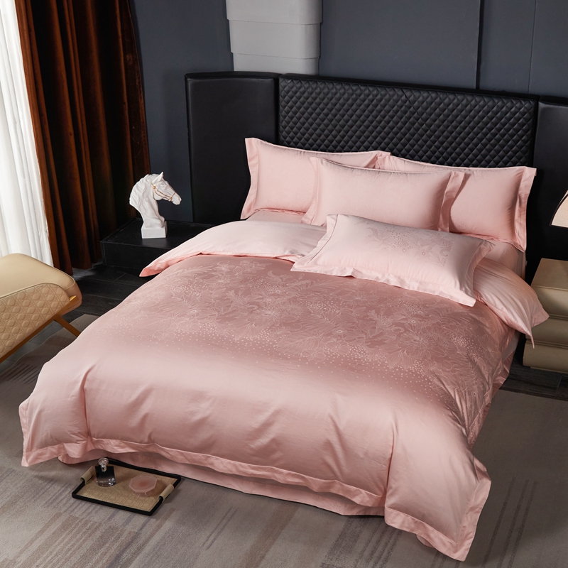 商品名称:淳绵家居 2024新款50*50S双股长绒棉大版定位提花四件套 卡莎米-温馨粉
