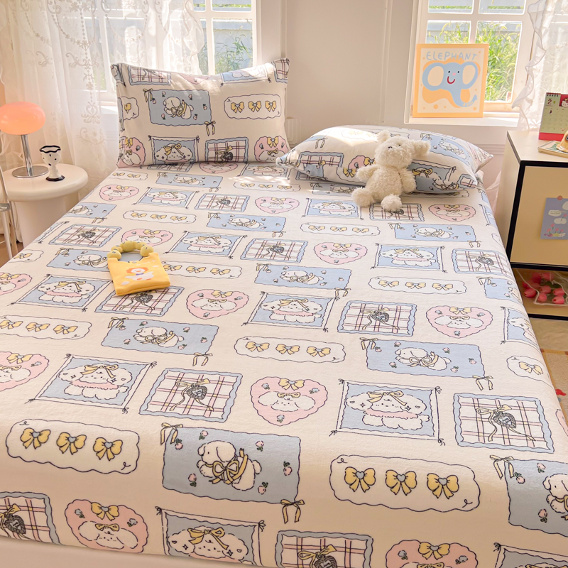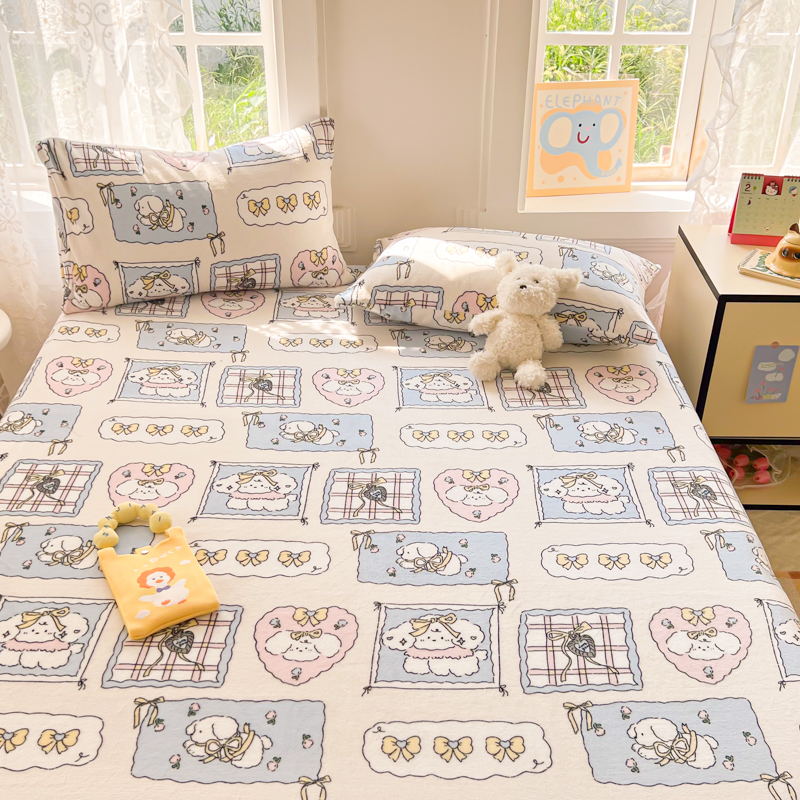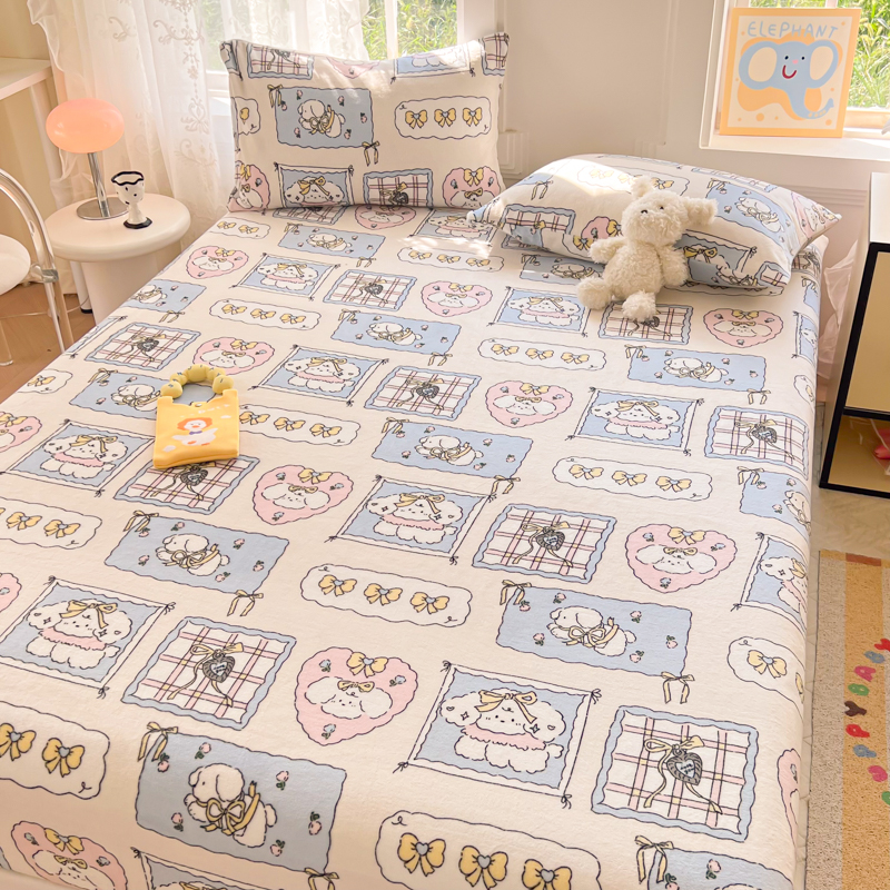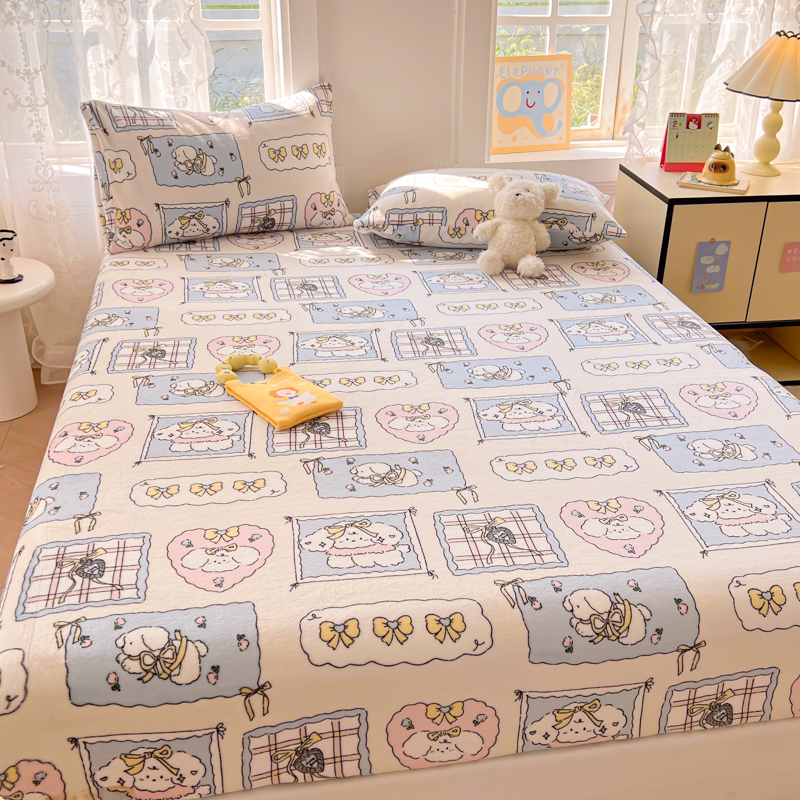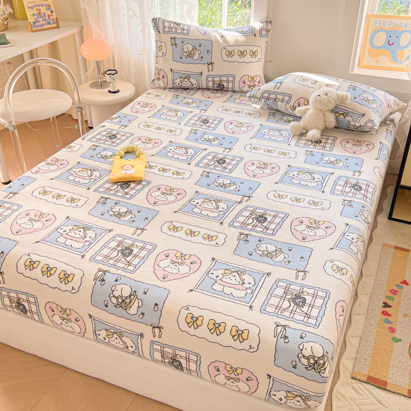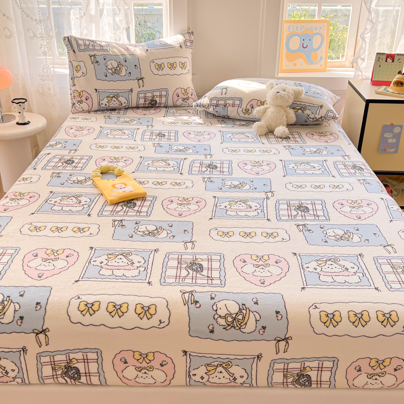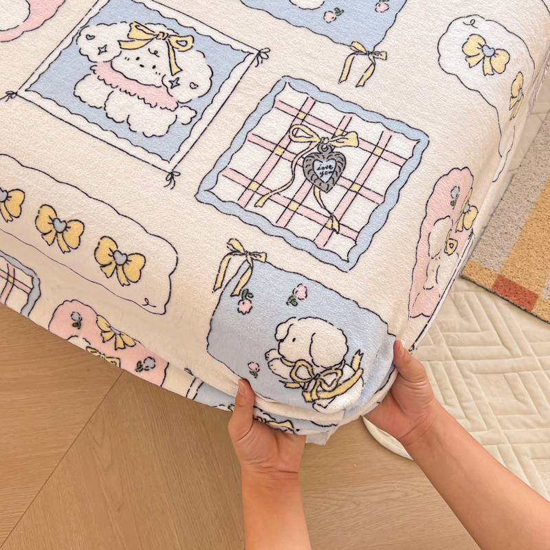 吉象家纺 2024新款牛奶绒卡通印花单床笠 卡哇伊狗狗