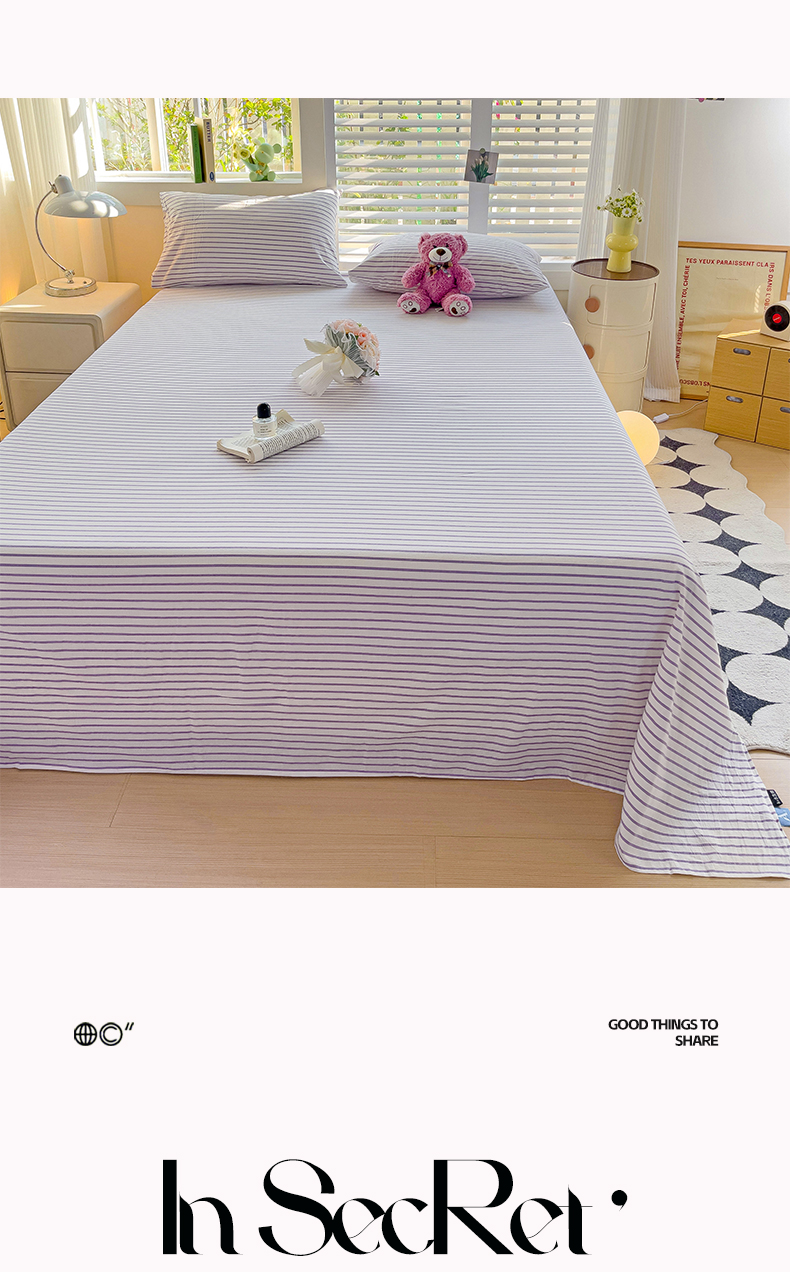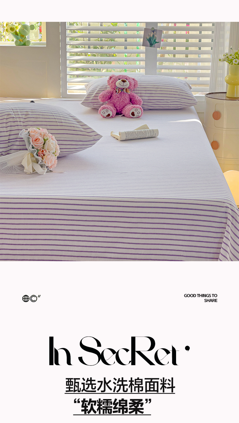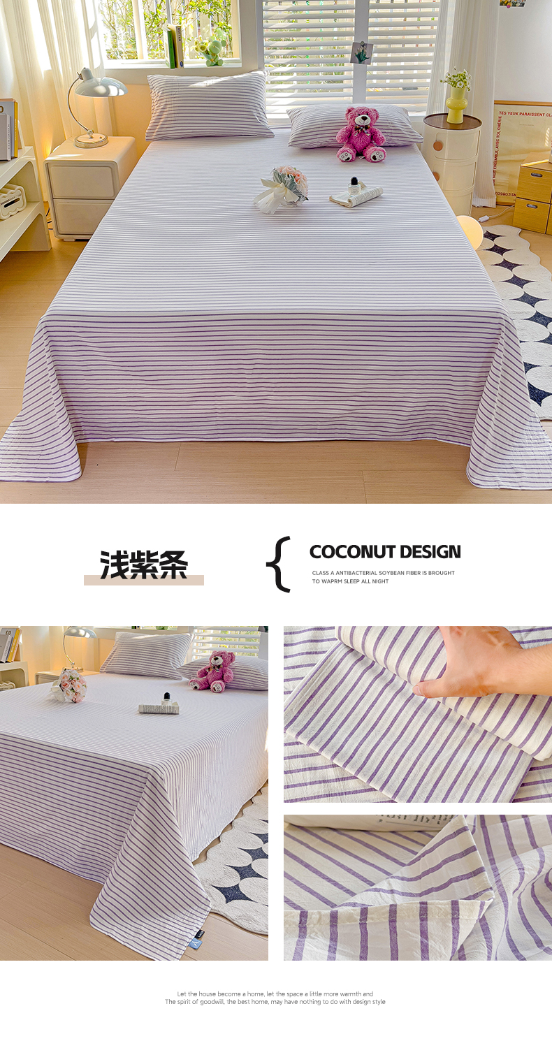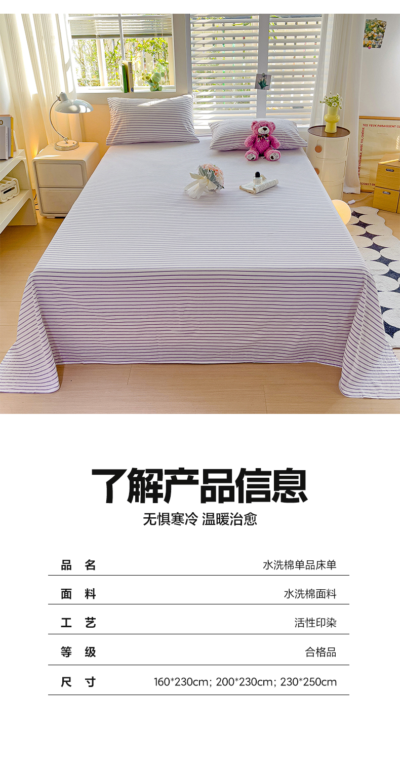 商品名称:水墨江南 2024新款水洗棉单床单系列 浅紫条
