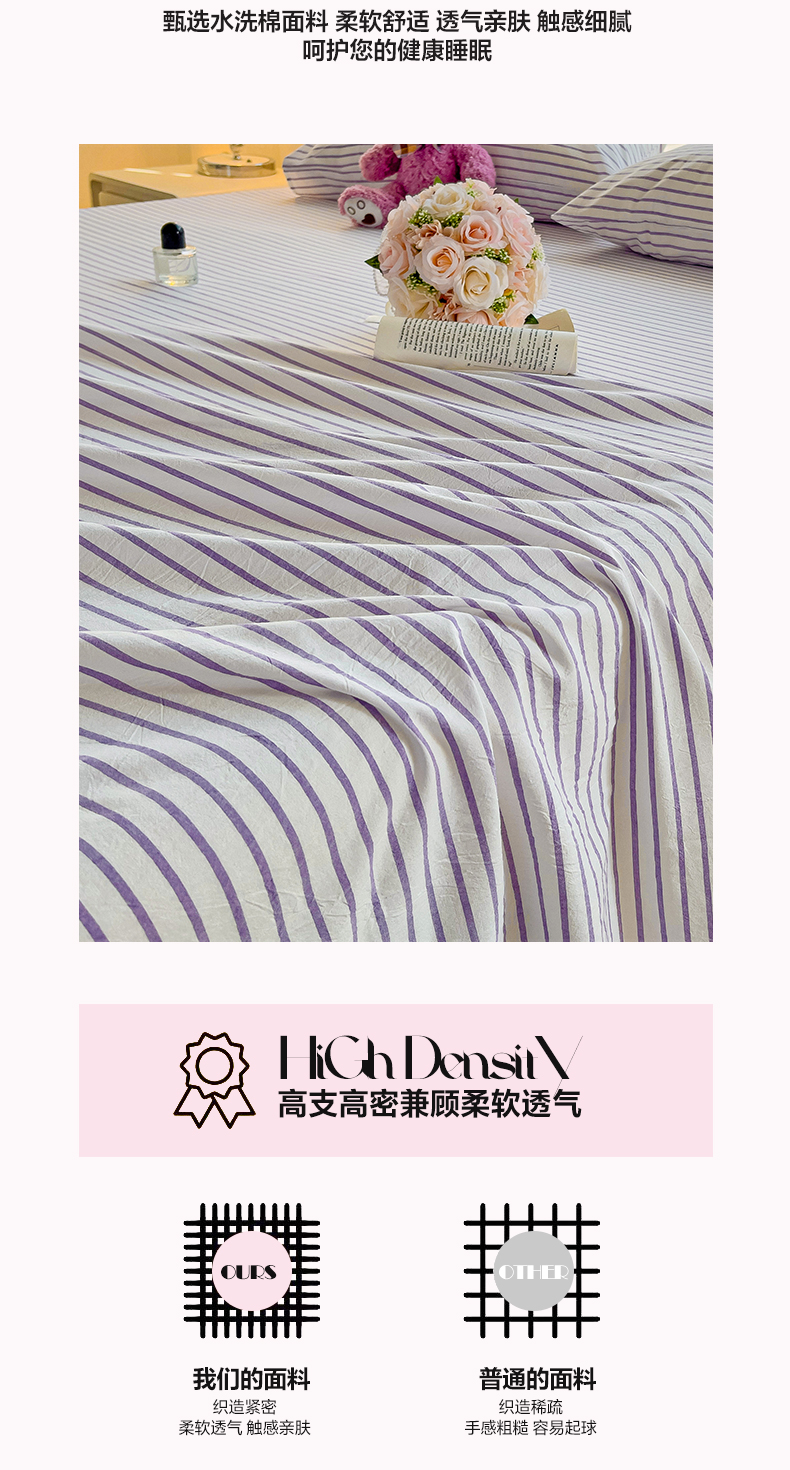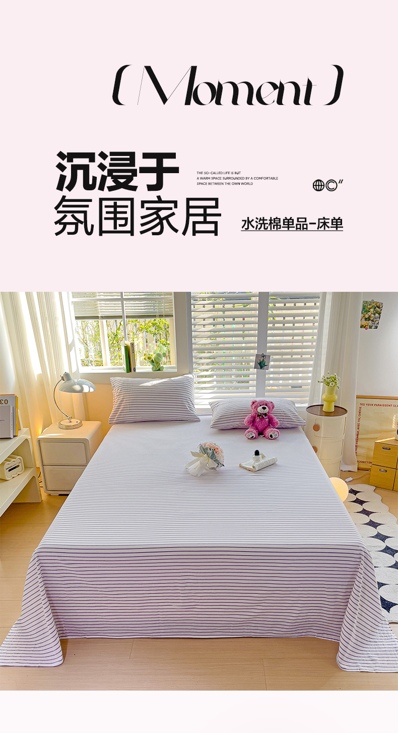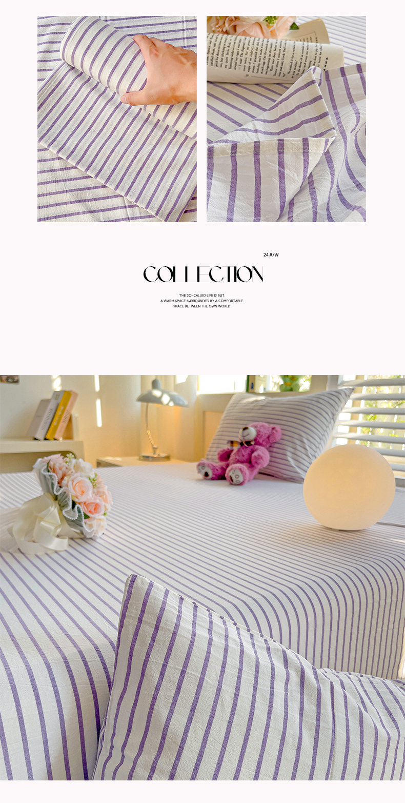 商品名称:水墨江南 2024新款水洗棉单床单系列 浅紫条