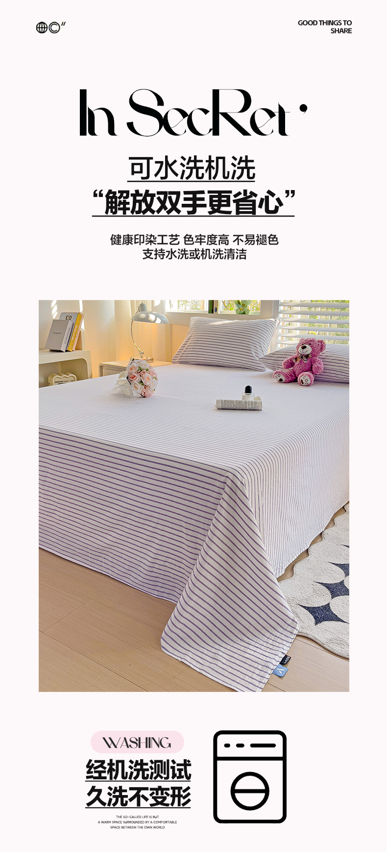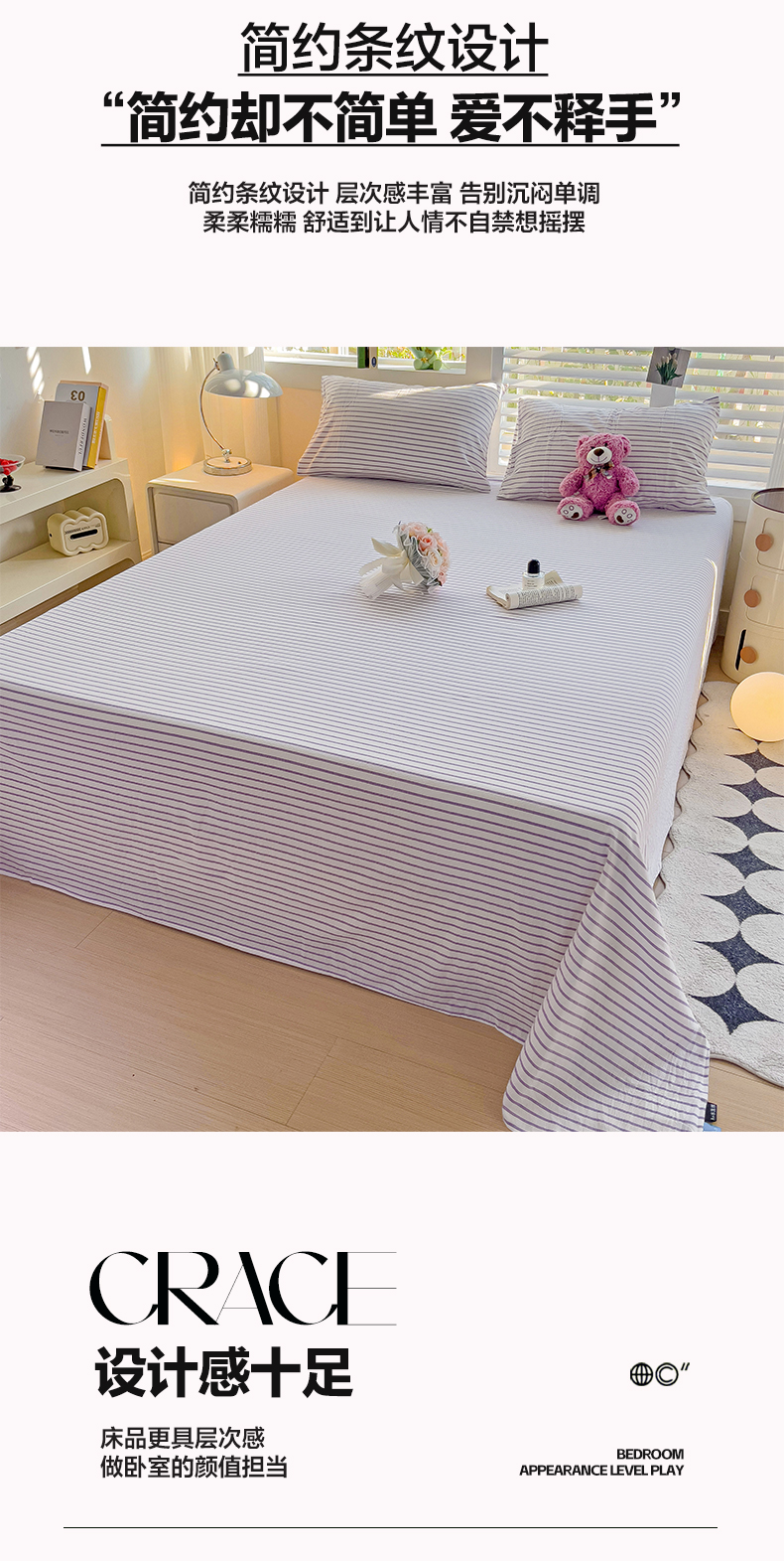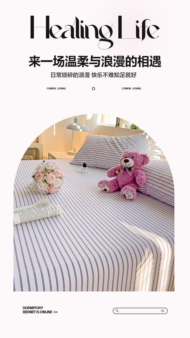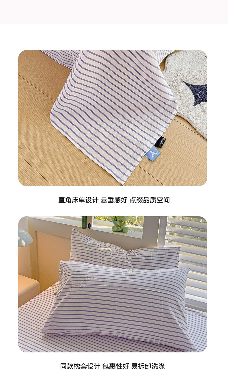 商品名称:水墨江南 2024新款水洗棉单床单系列 浅紫条