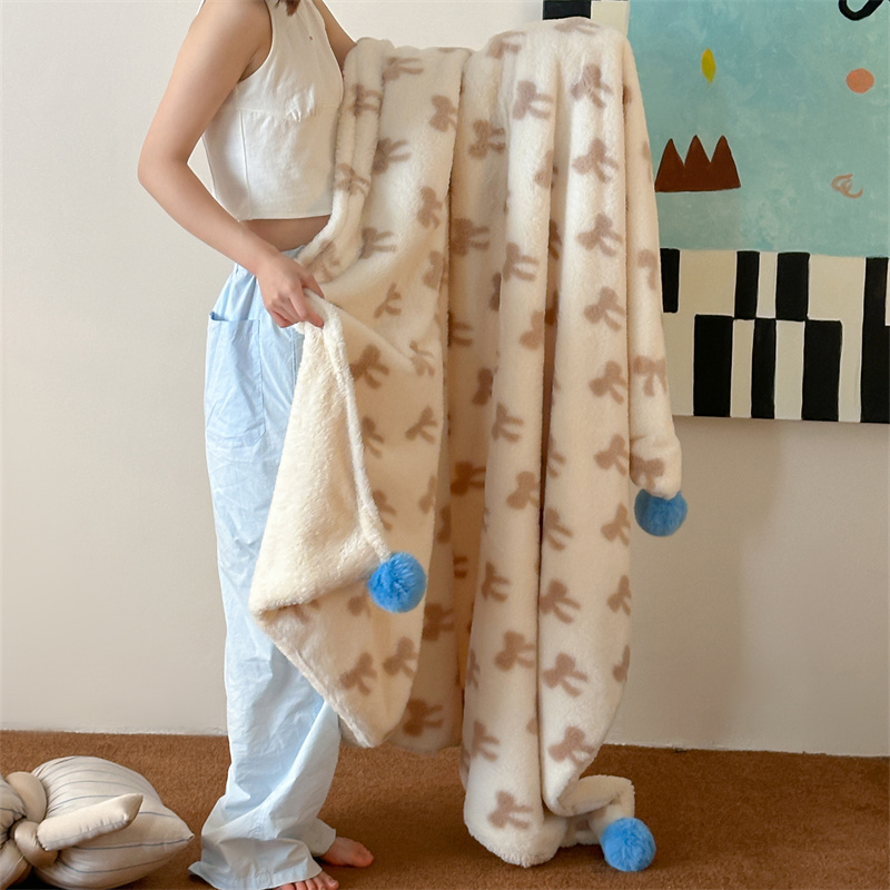 商品名称:桔子家纺 2024新款兔兔绒派对皮草毯毛毯毯子 蝴蝶棕毯子