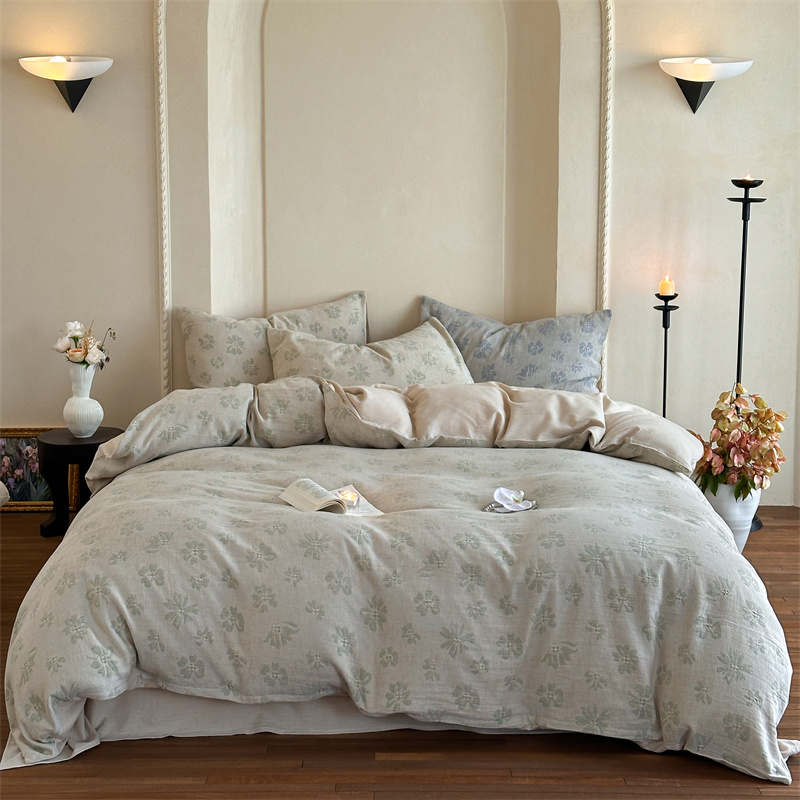 (总)云上 2025新款三层纱全棉纯棉色织大提花曲奇格子四件套,曲奇粉格,曲奇蓝格,曲奇绿格