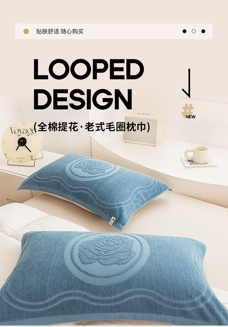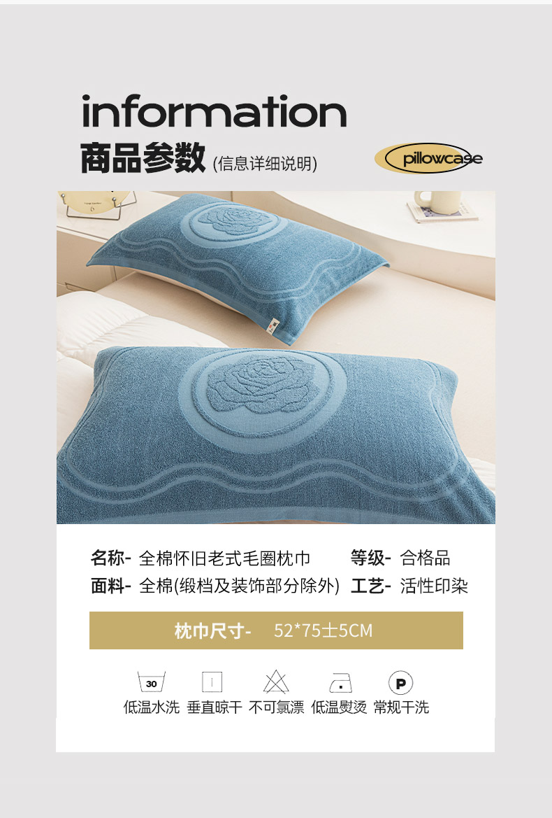 商品名称:美宜家 2025新款全棉怀旧老式毛巾圈枕巾一对 盛开兰