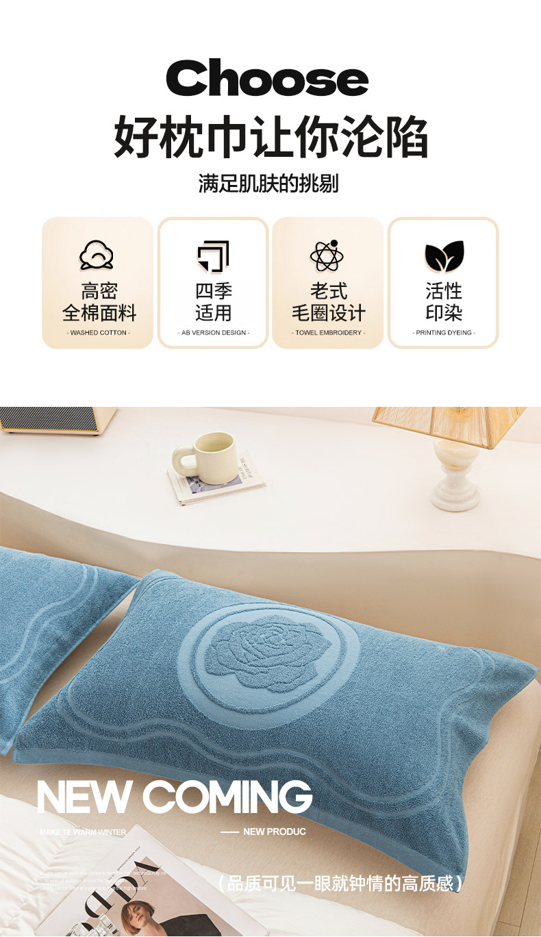 (总)美宜家 2025新款全棉毛圈防滑隔脏婚庆老式全棉枕巾,喜上加喜,幸福美满 ,永结同心,鸳鸯福禄