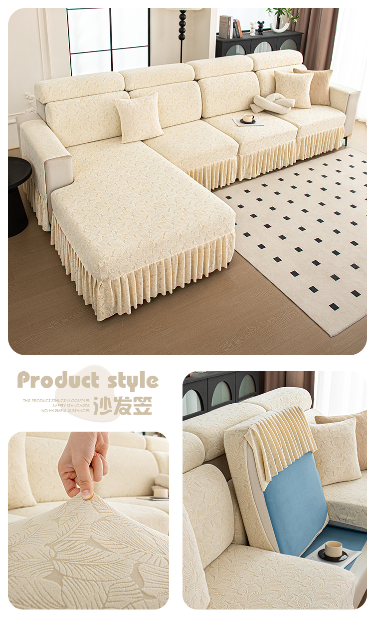 当前位置: 91家纺网 > 商品网购 > 居家布艺 > 坐垫/椅垫/沙发垫 > 沙发垫 > 沐沐家纺 2026新款小树叶裙边沙发笠 米白