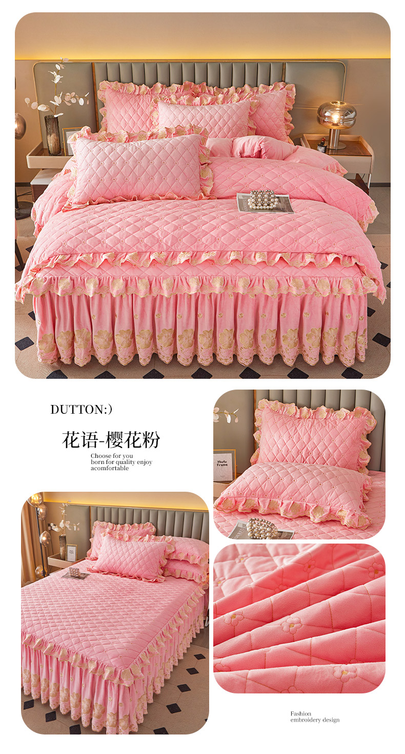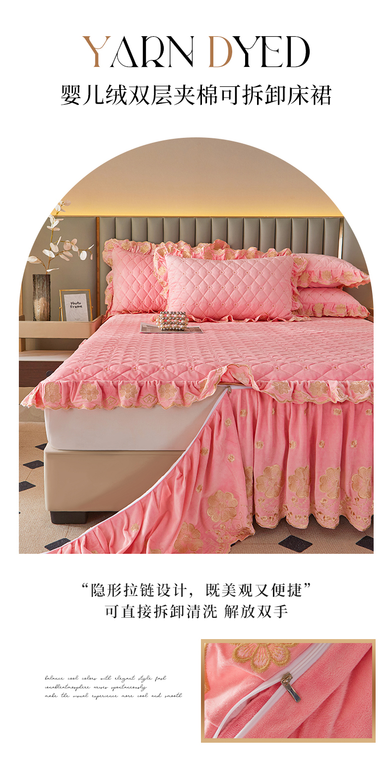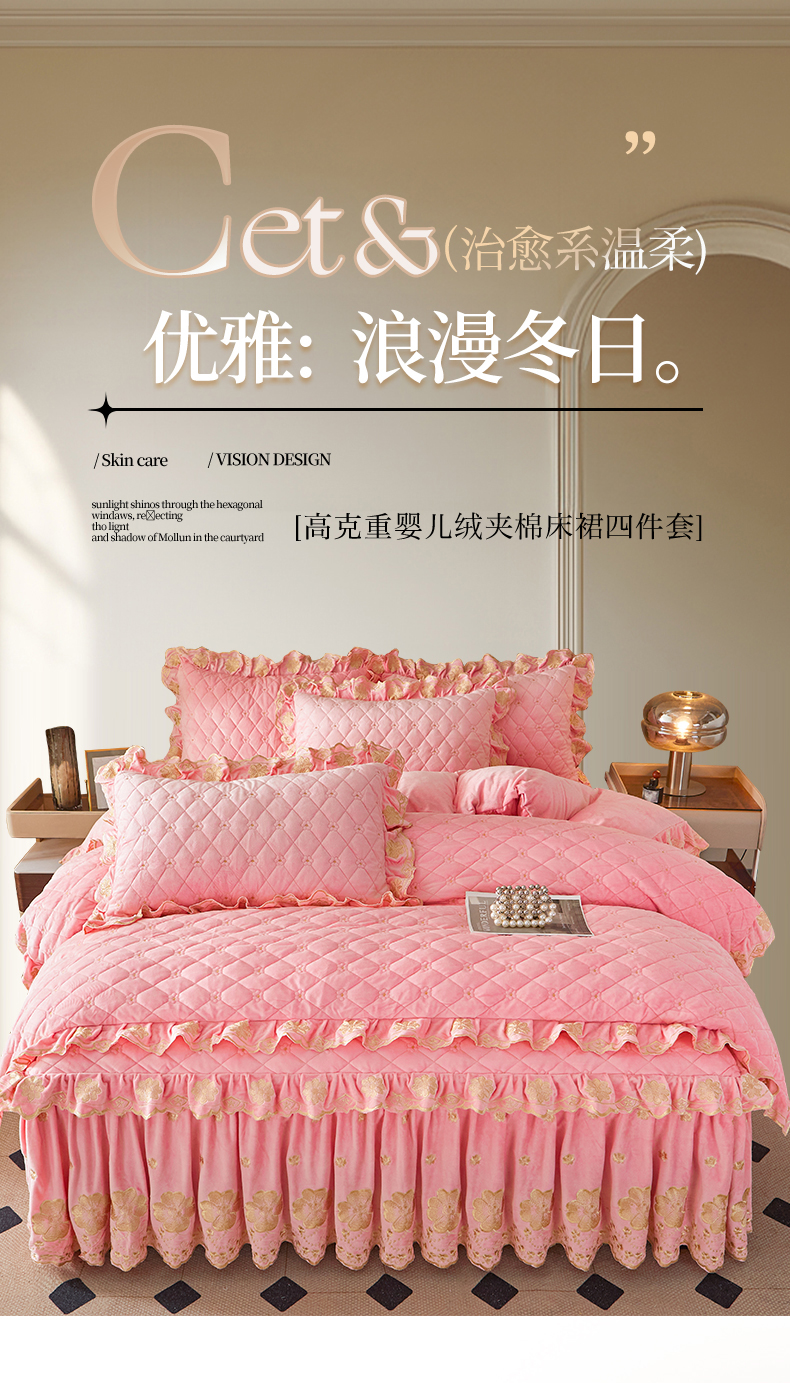 当前位置: 91家纺网 > 商品网购 > 床品套件 > 四件套 > 其它四件套 > 罗艺轩 2025新款婴儿绒双层夹棉可拆卸床裙四件套-花语 花语-樱花粉