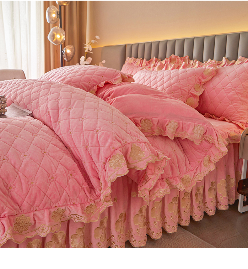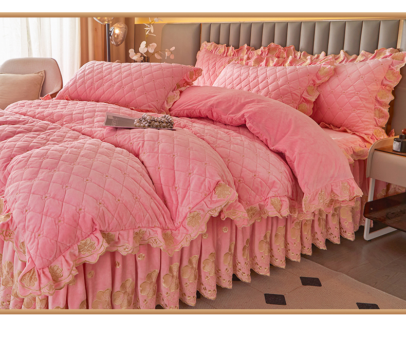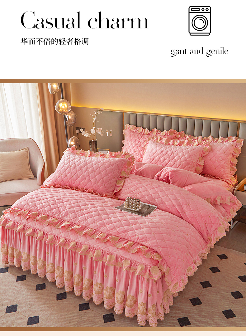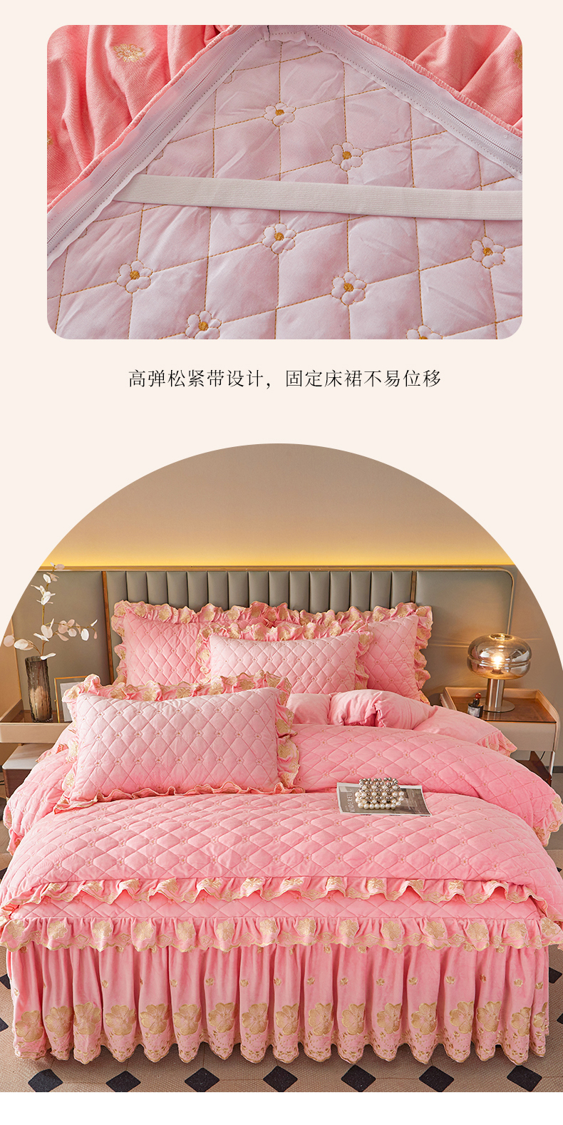 当前位置: 91家纺网 > 商品网购 > 床品套件 > 四件套 > 其它四件套 > 罗艺轩 2025新款婴儿绒双层夹棉可拆卸床裙四件套-花语 花语-樱花粉