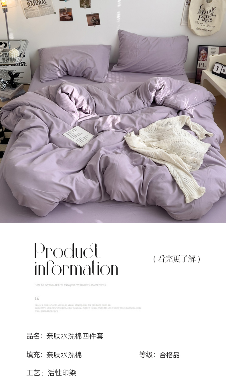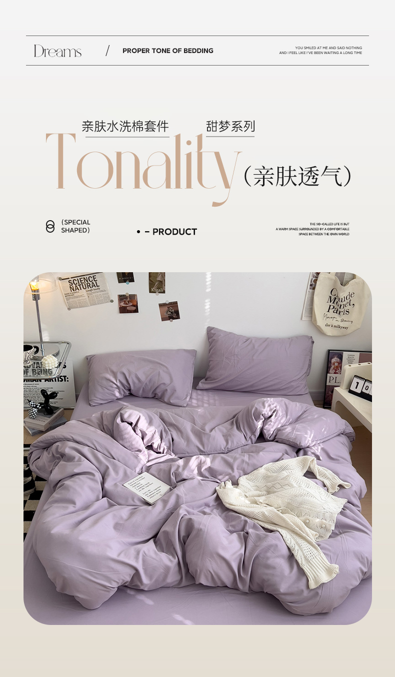 当前位置: 91家纺网 > 商品网购 > 床品套件 > 四件套 > 水洗棉四件套 > 梦卓家纺 2025爆款ins风超柔褶皱亲肤磨毛水洗棉四件套 芋泥紫