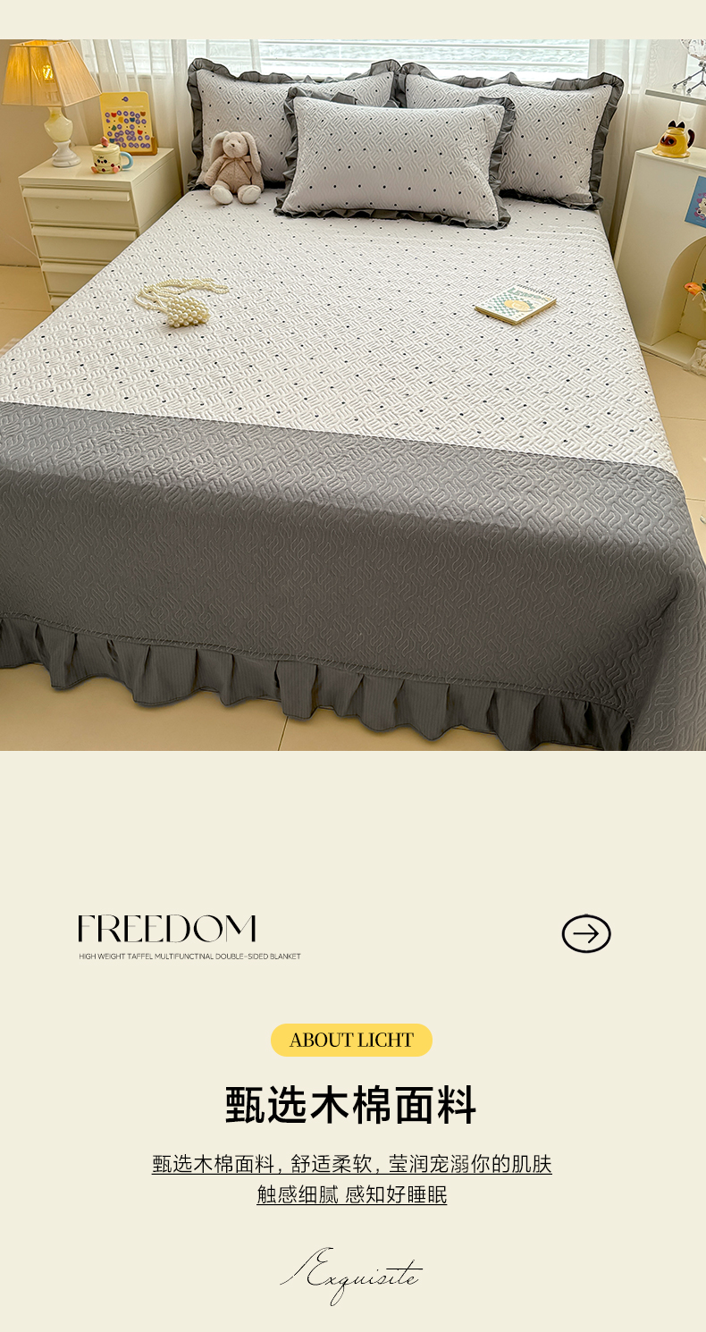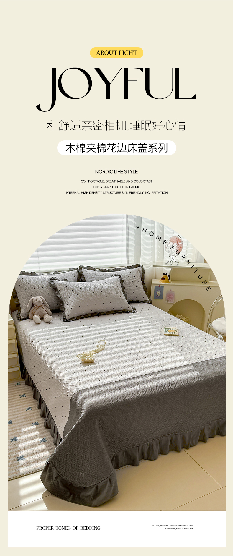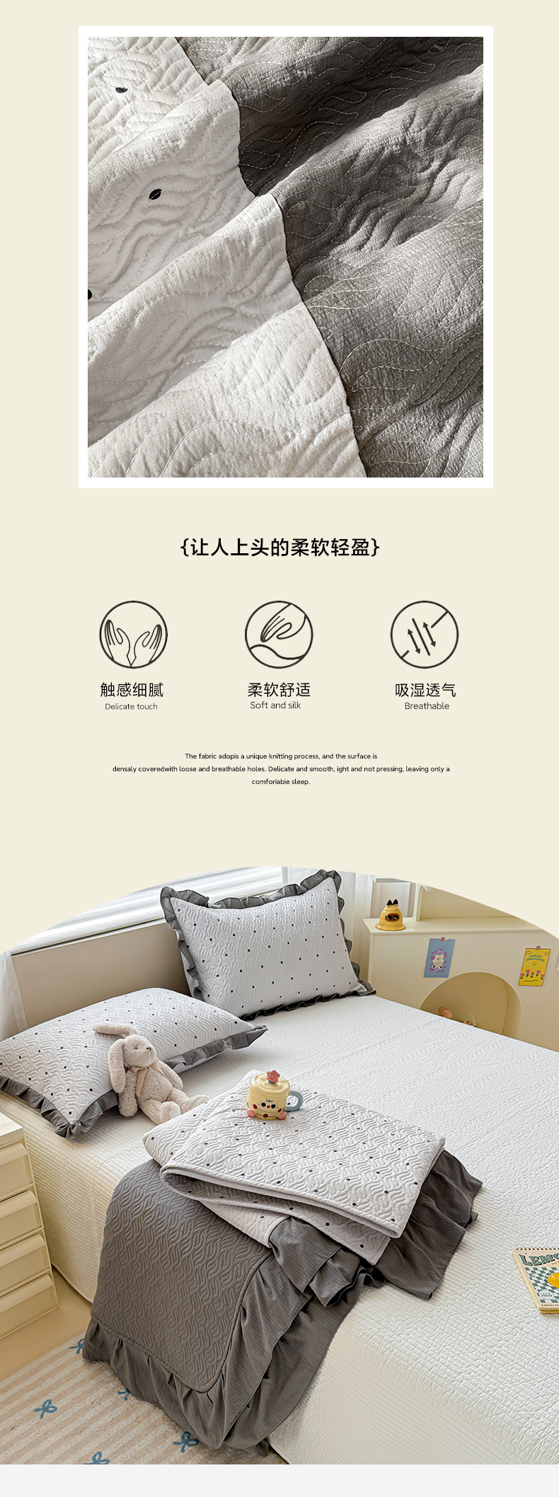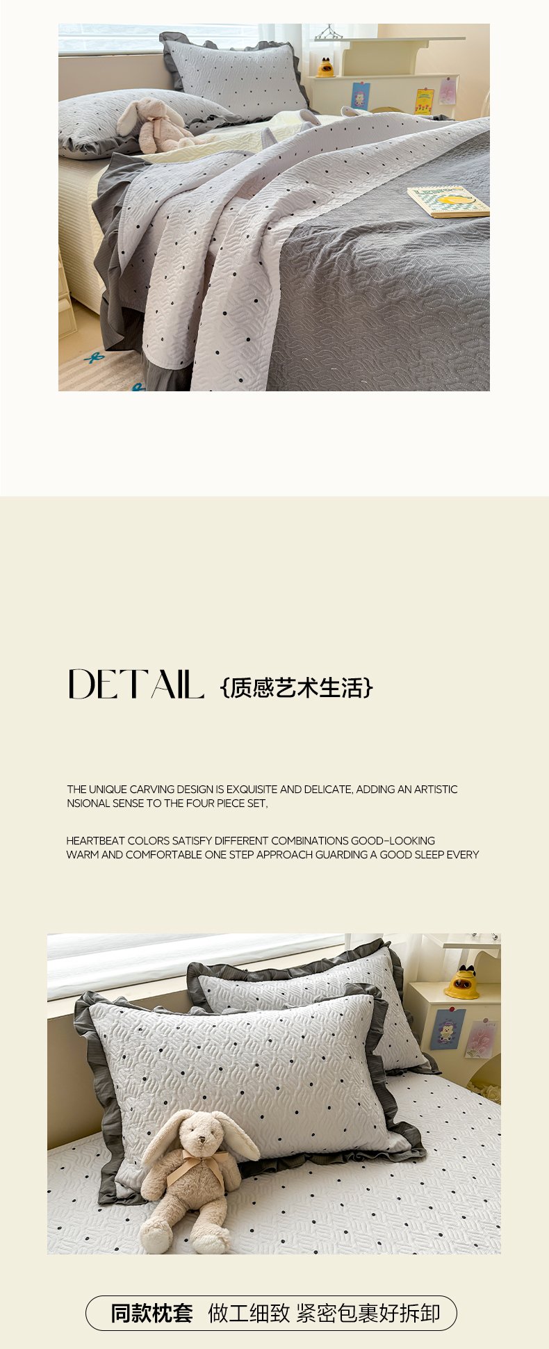 商品名称:2025新款木棉夹棉花边拼接床盖系列 小波点-深灰