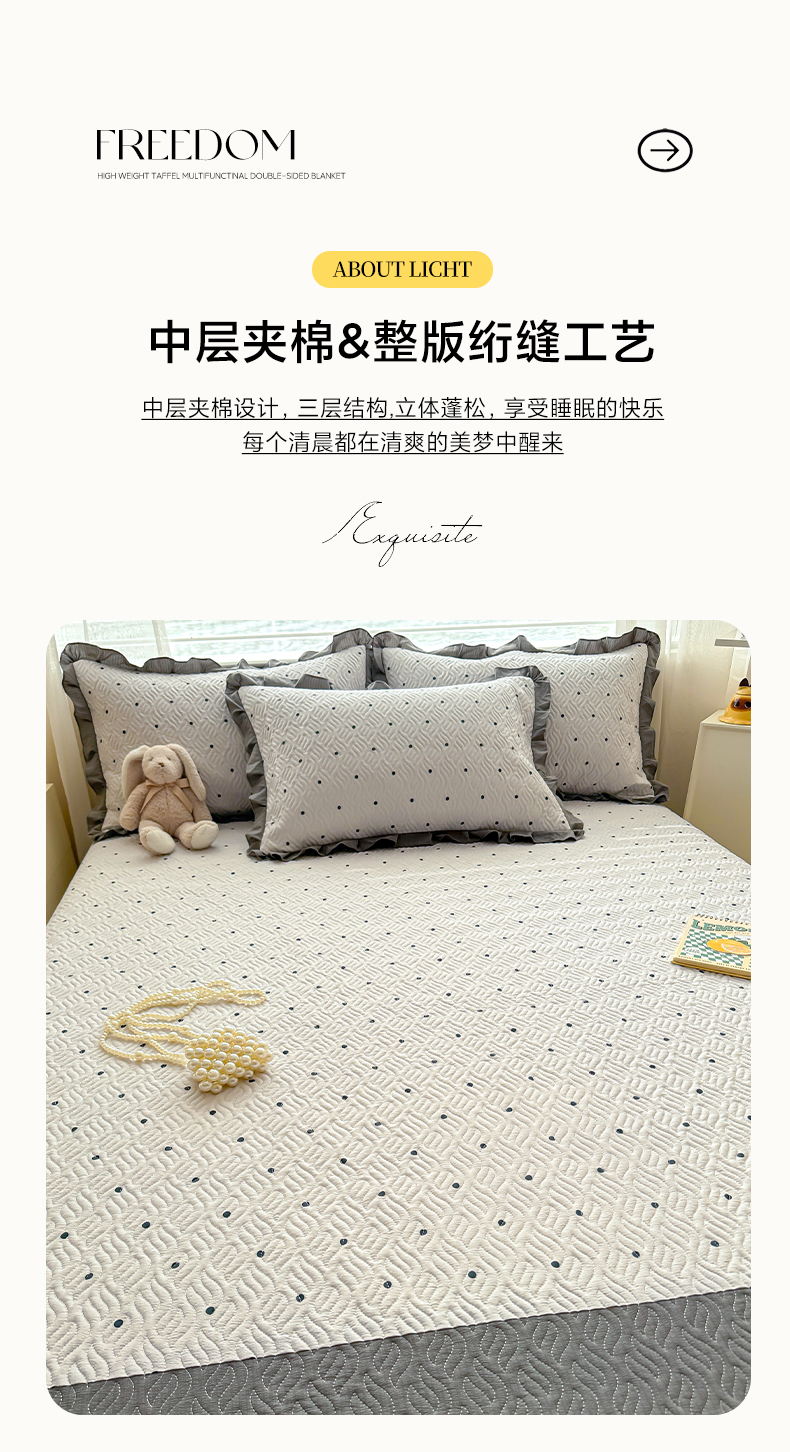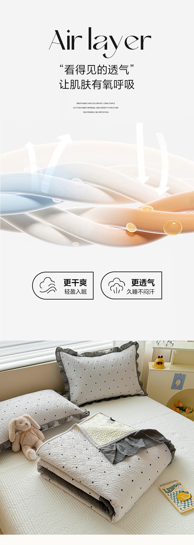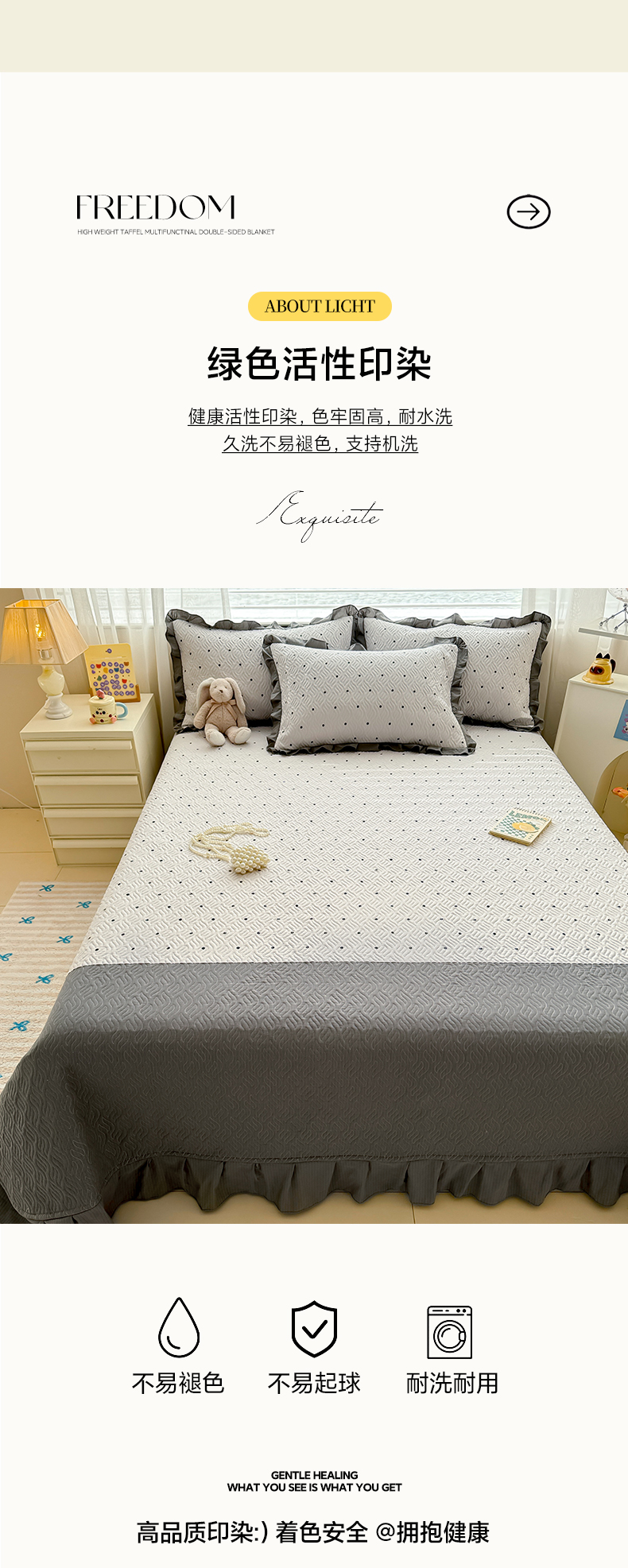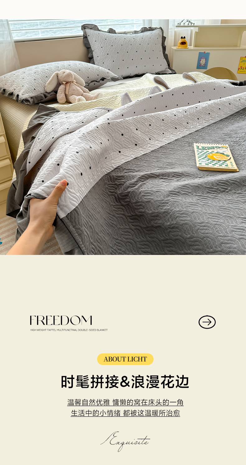 商品名称:2025新款木棉夹棉花边拼接床盖系列 小波点-深灰
