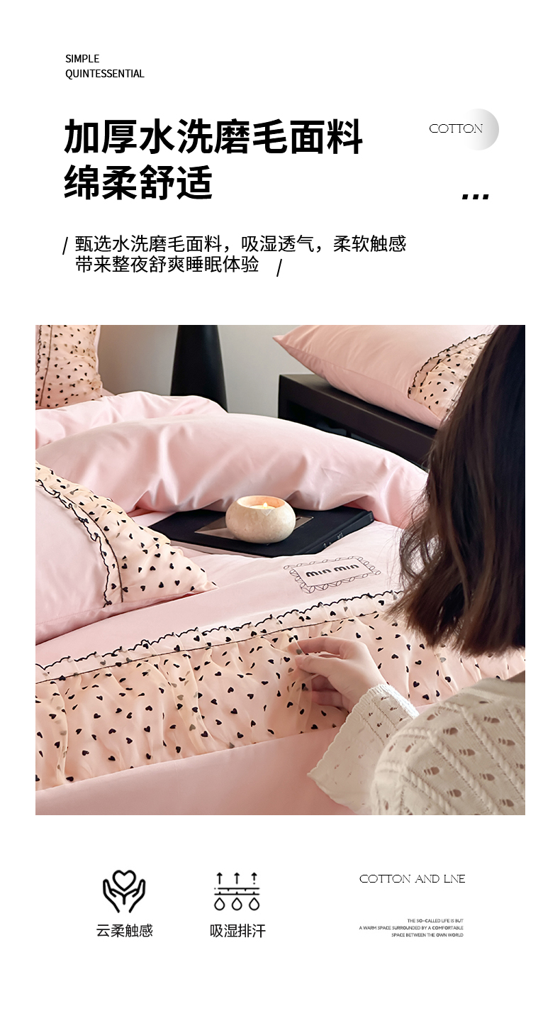 当前位置: 91家纺网 > 商品网购 > 床品套件 > 四件套 > 磨毛活性四件套 > 2025新款直播热款奶油公主风法式蕾丝花边四件套水洗磨毛纯色床笠学生三件套-简单爱 简单爱-粉
