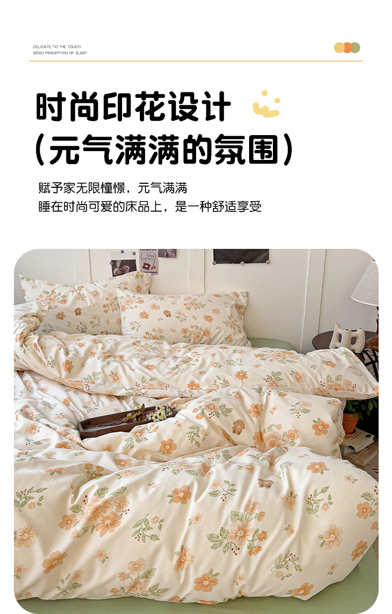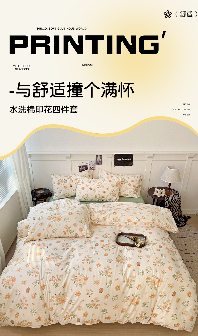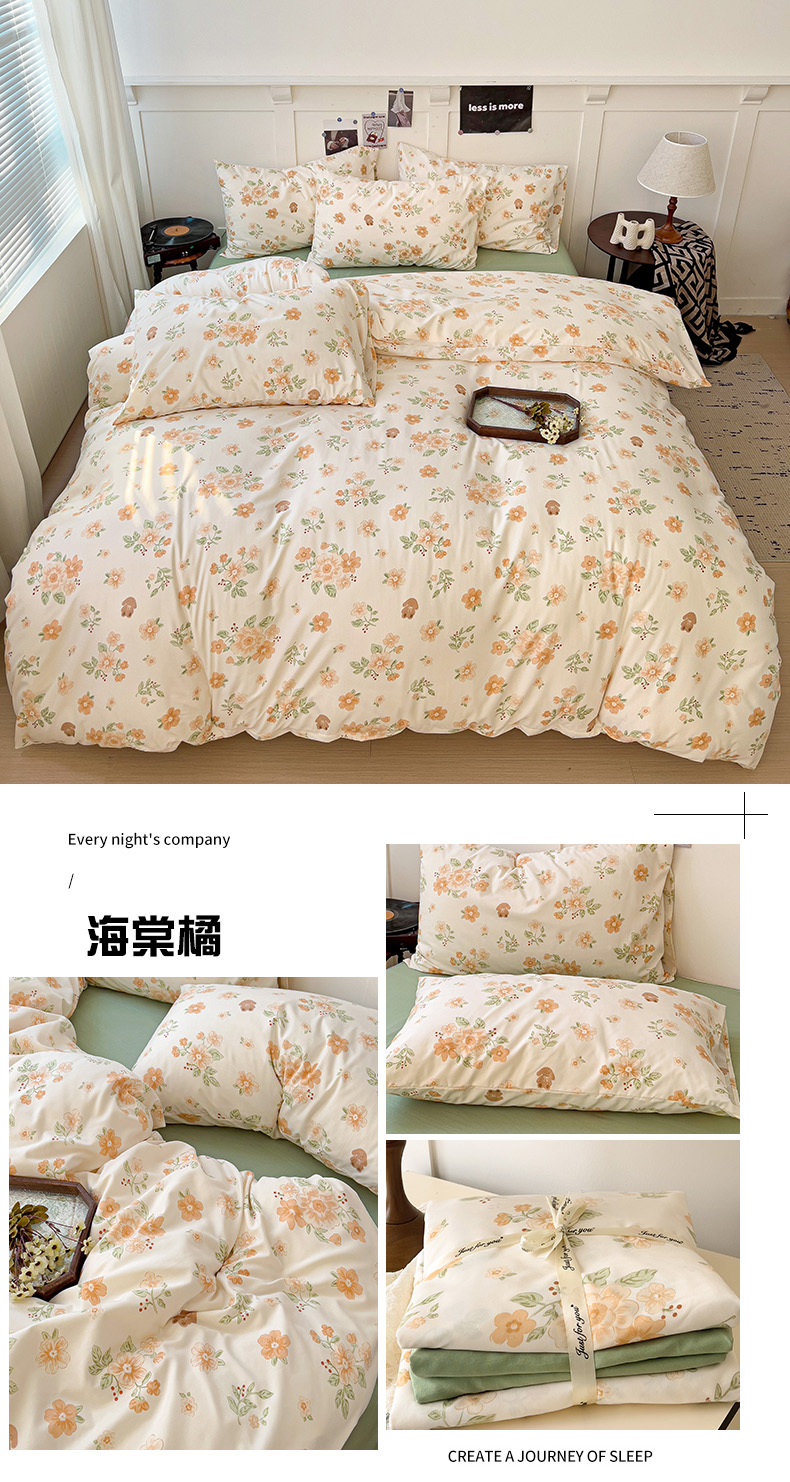 商品名称:港岛妹妹 2025 新款水洗双层纱 绑带款系列四件套(可提供买家秀) 海棠橘
