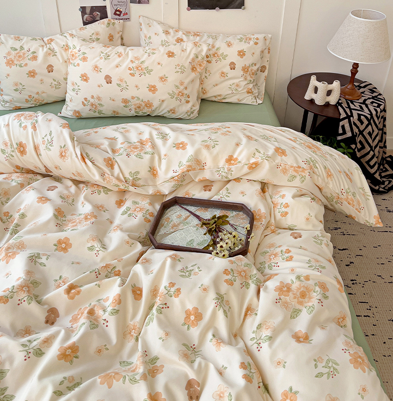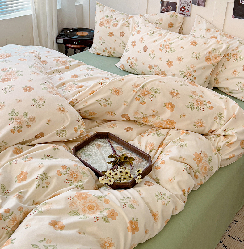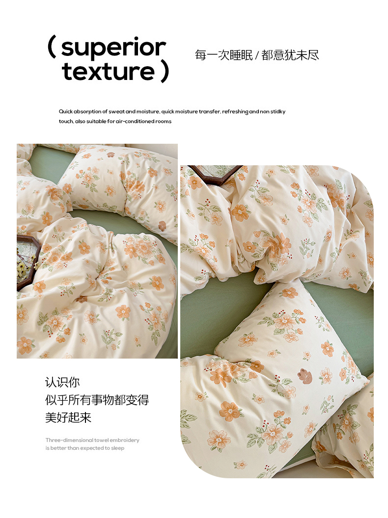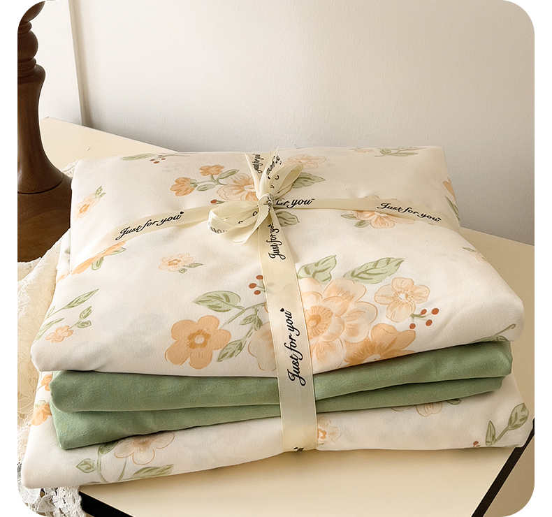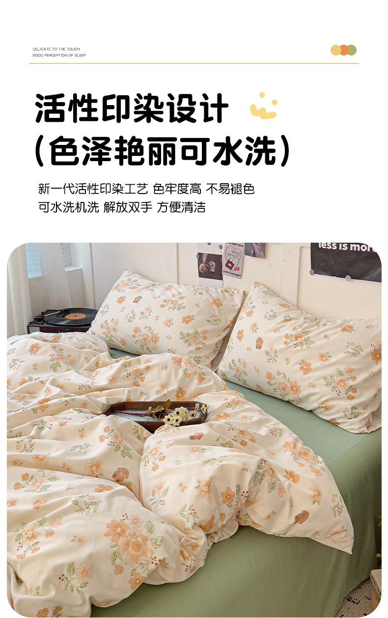 商品名称:港岛妹妹 2025 新款水洗双层纱 绑带款系列四件套(可提供买家秀) 海棠橘