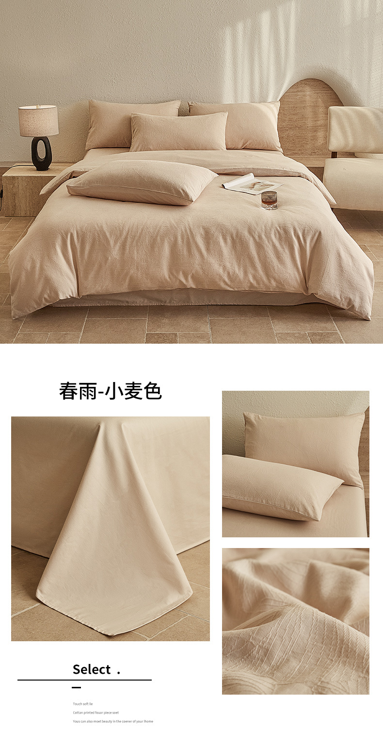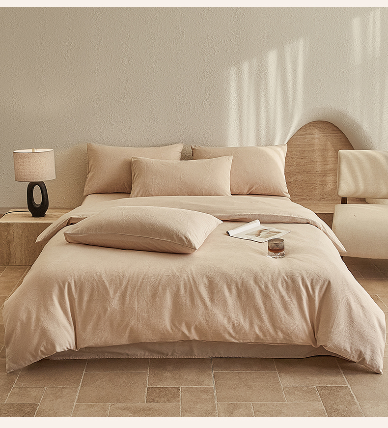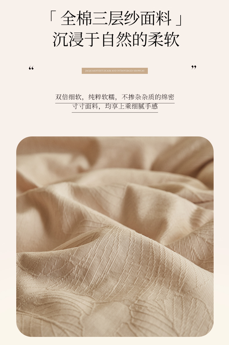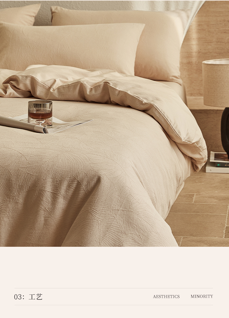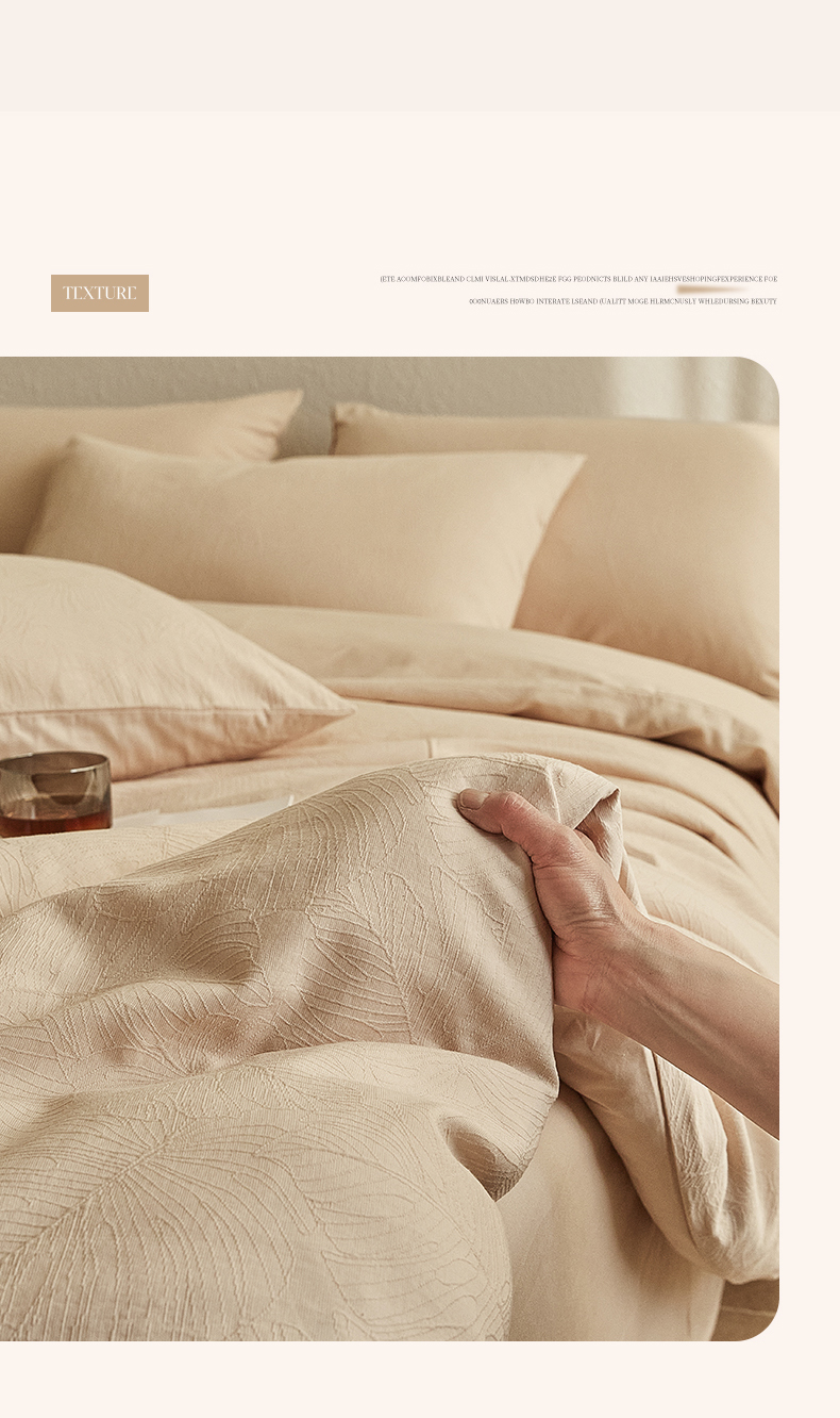 当前位置: 91家纺网 > 商品网购 > 床品套件 > 四件套 > 全棉普通四件套 > 2025新款全棉三层纱浮雕大提花四件套系列 春雨-小麦色