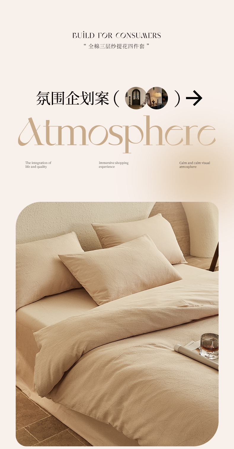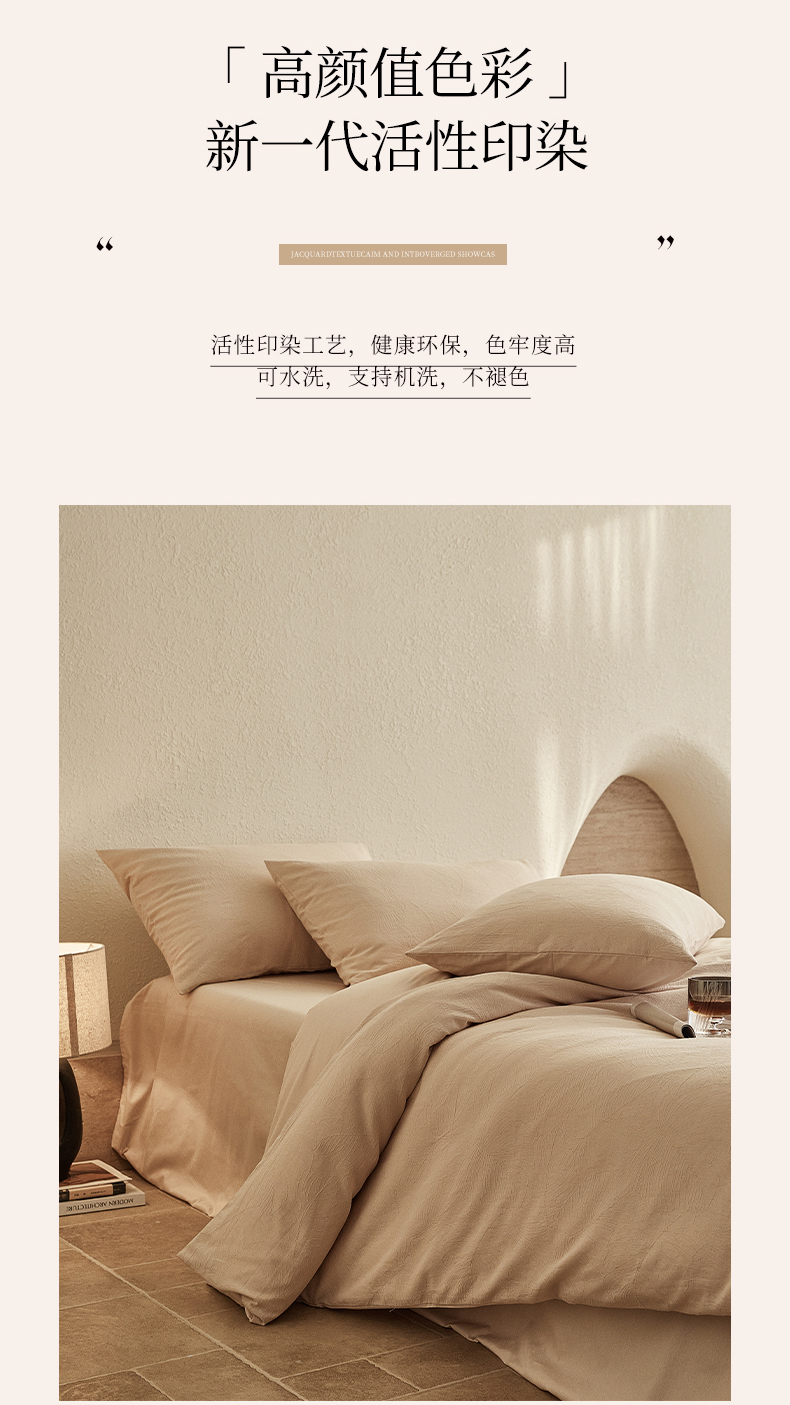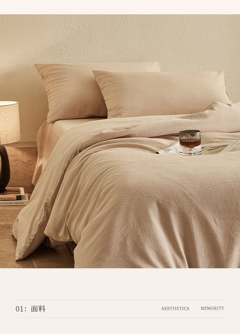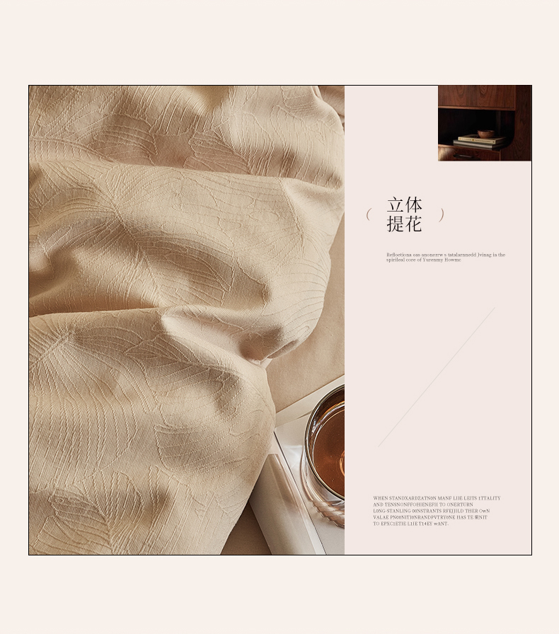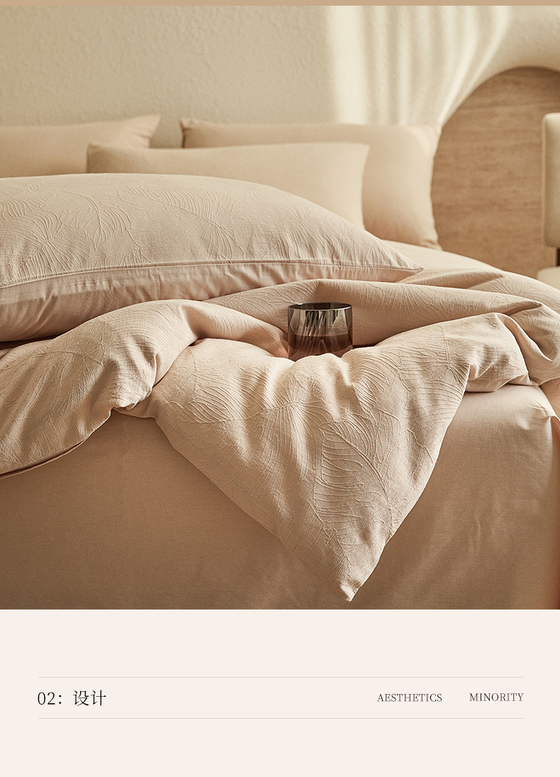 当前位置: 91家纺网 > 商品网购 > 床品套件 > 四件套 > 全棉普通四件套 > 2025新款全棉三层纱浮雕大提花四件套系列 春雨-小麦色