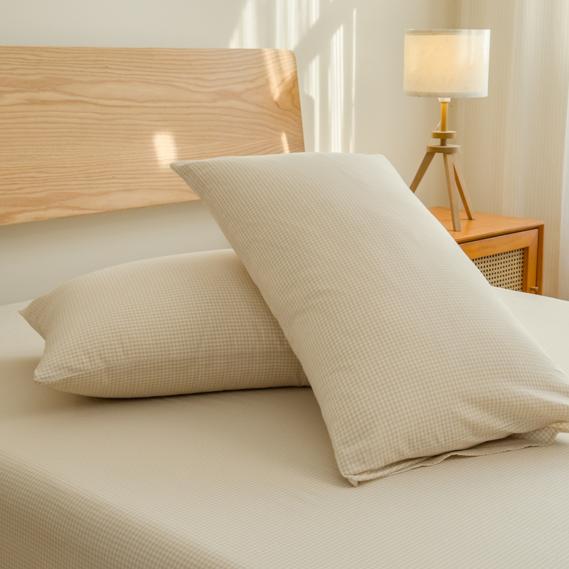 商品名称:2025新款简约款色织水洗棉单品枕套 可可灰
