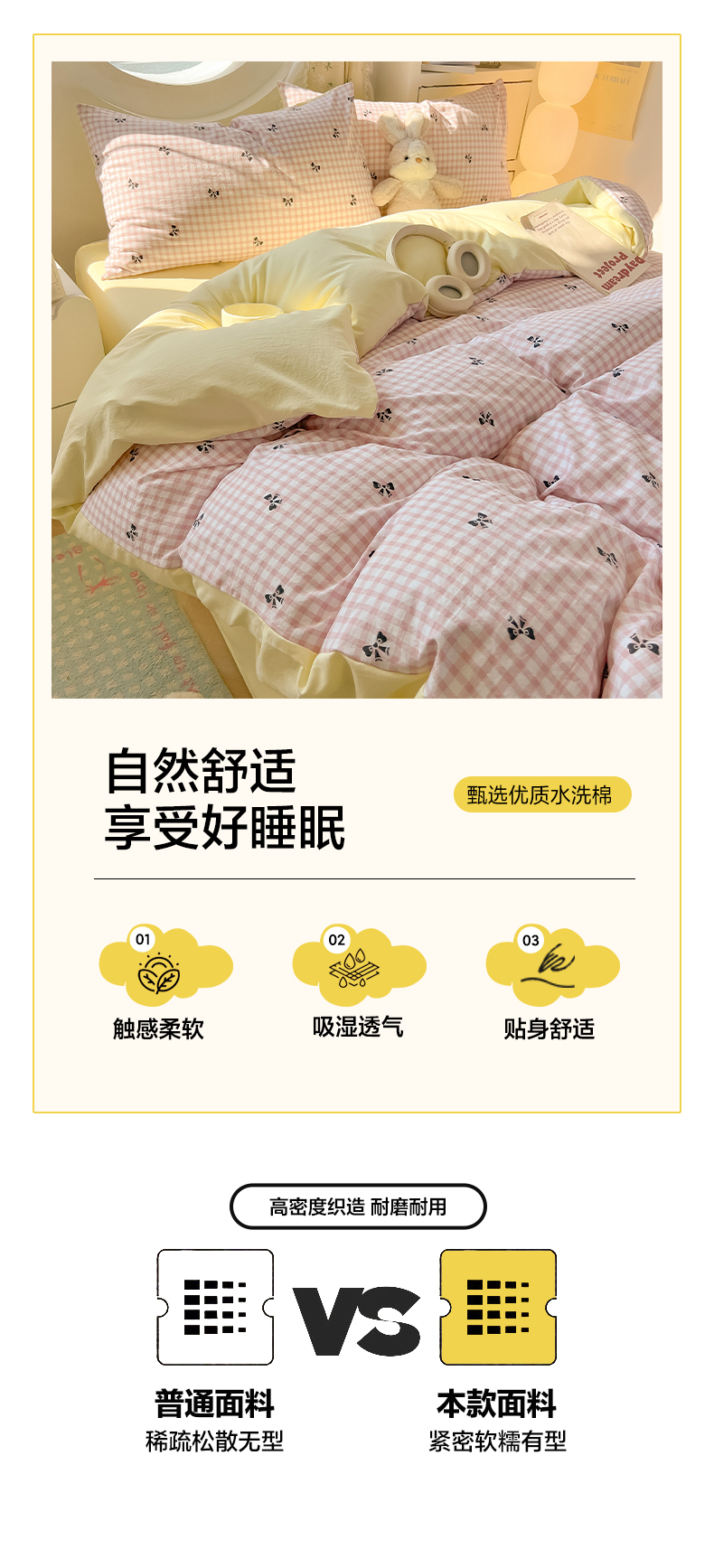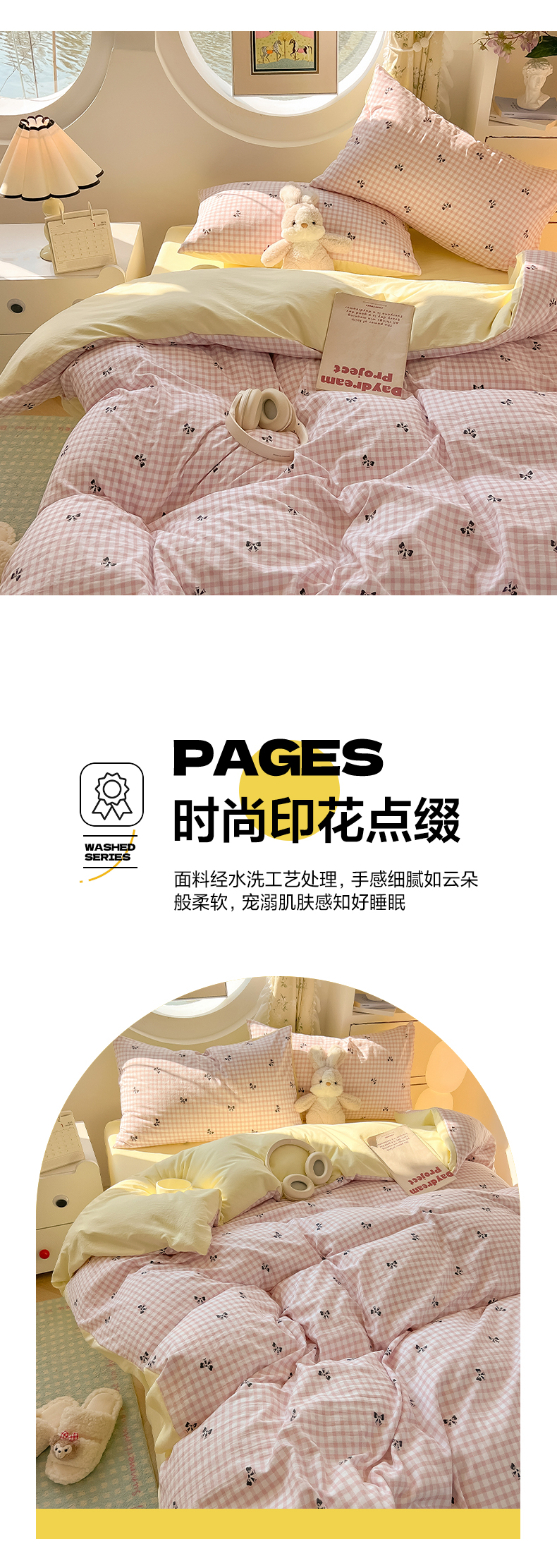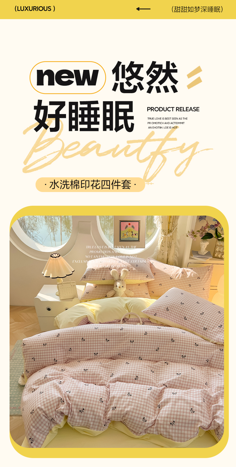 当前位置: 91家纺网 > 商品网购 > 床品套件 > 四件套 > 水洗棉四件套 > 韩巢家纺 2025新款水洗棉ins风格子被套床单四件套-蝴蝶结格子(提供卖家秀) 雾粉格浅黄