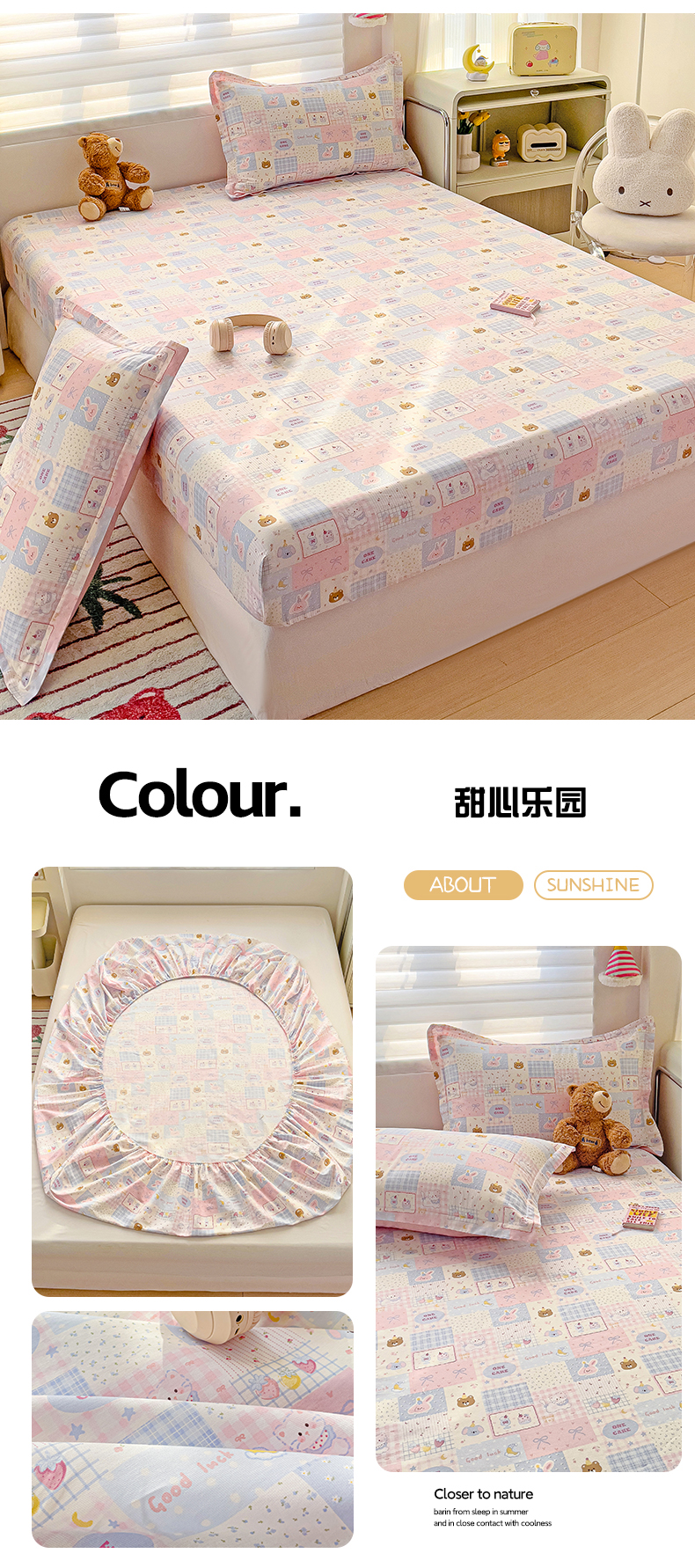 • 91家纺网 家纺一手货源 找家纺 春雨家居 2025新款春夏卡通印花全棉单床笠 甜心乐园