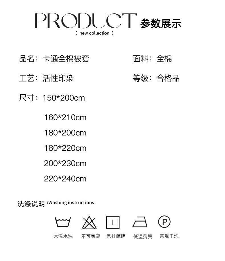 150*200cm单被套+枕套/对 | ¥52.00 |