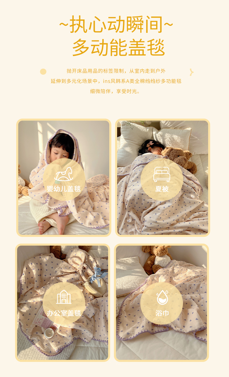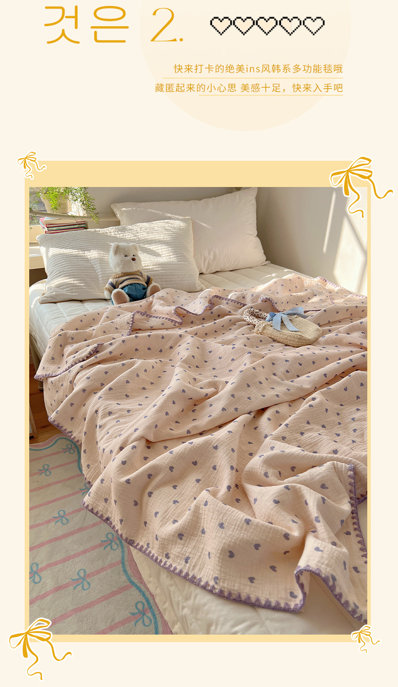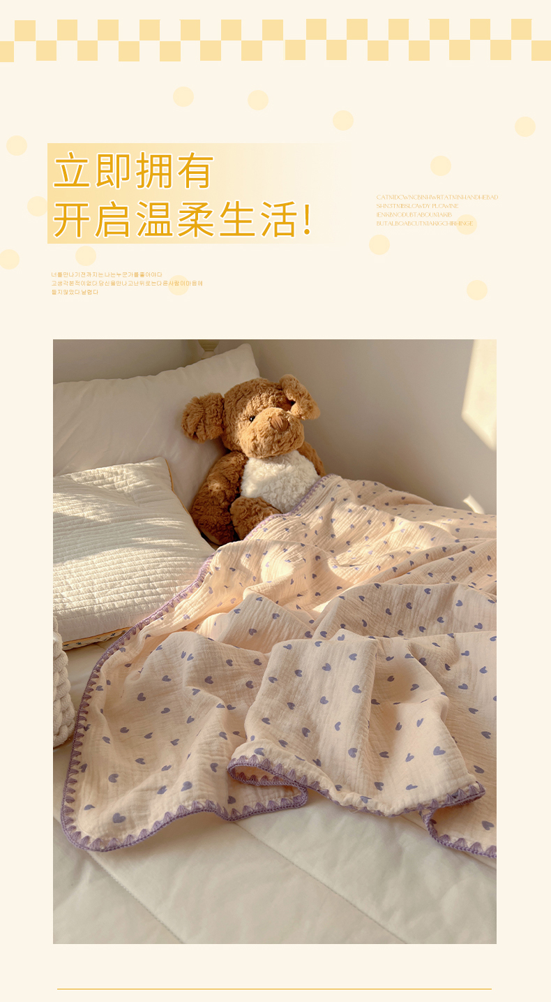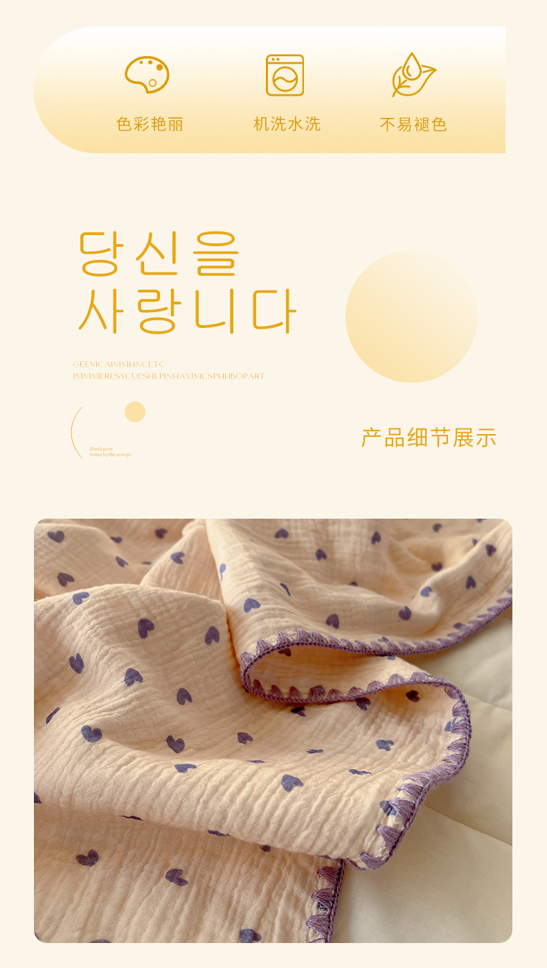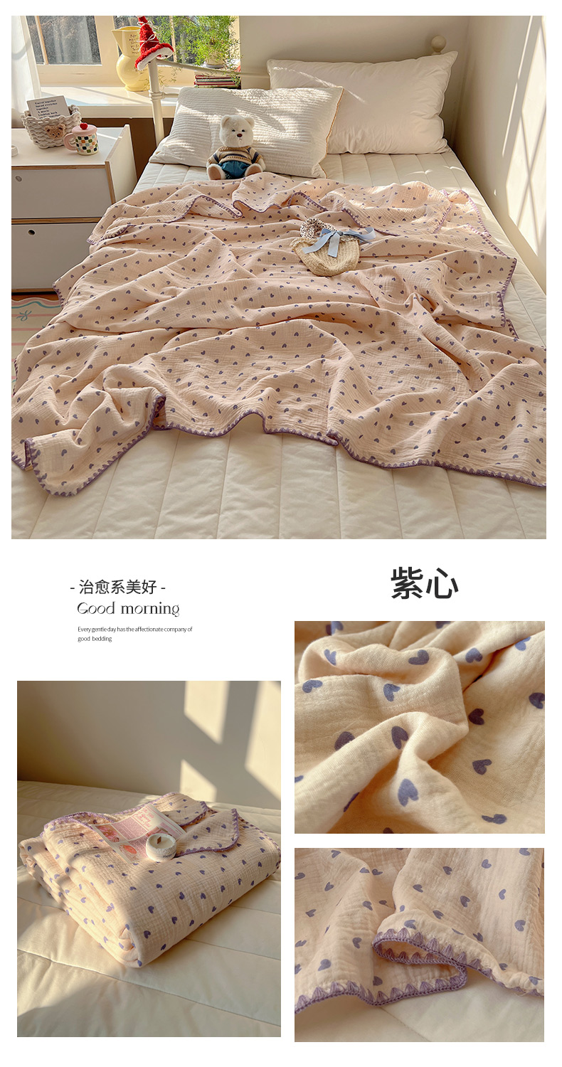 三朵ins风韩国A类全棉绉绉纱多功能毯情图 紫心