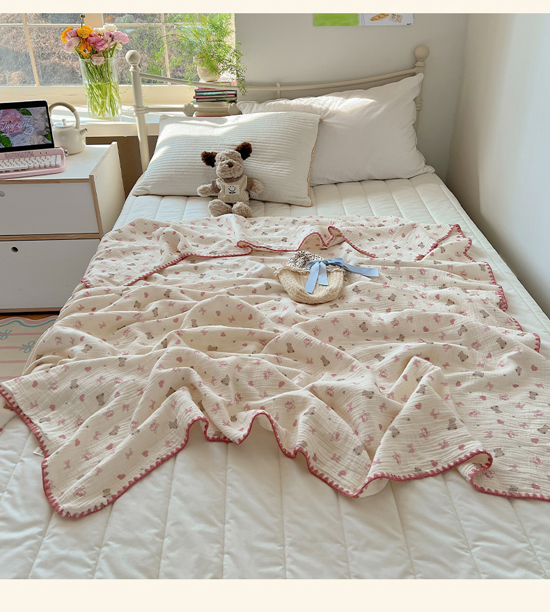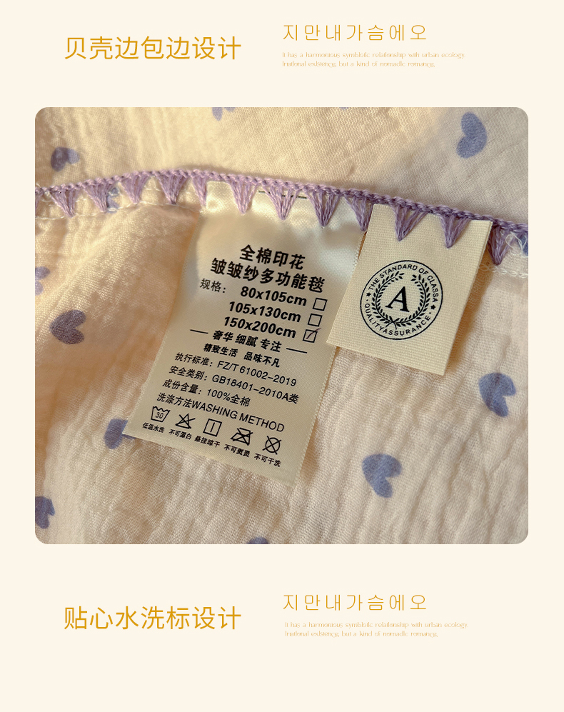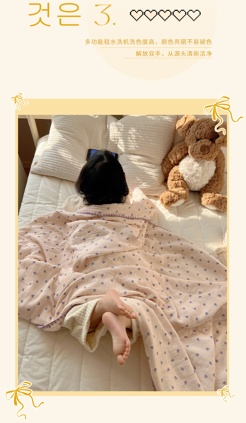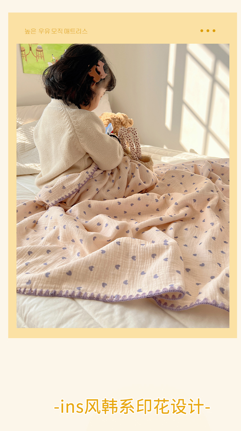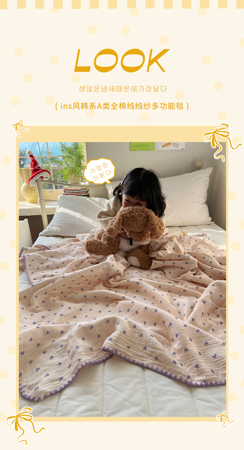 三朵ins风韩国A类全棉绉绉纱多功能毯情图 紫心
