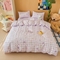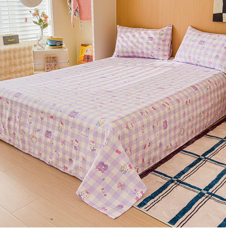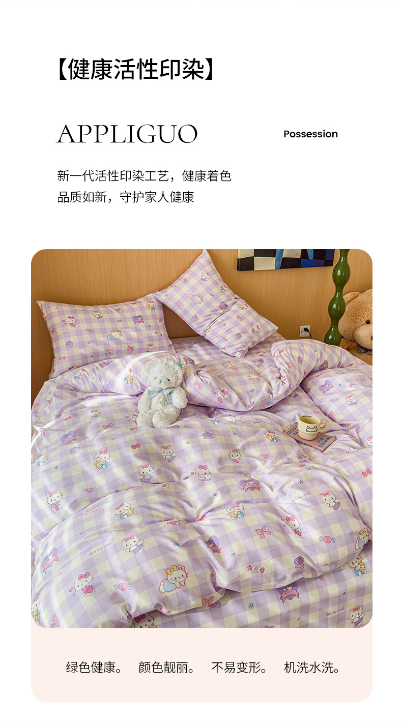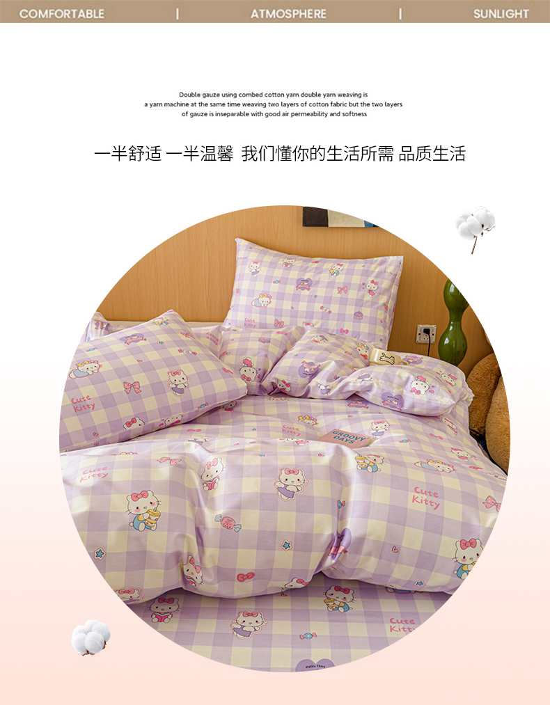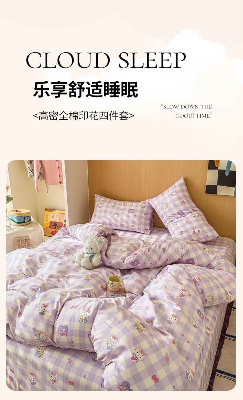 感遇全棉软萌清新四件套 紫格猫咪
