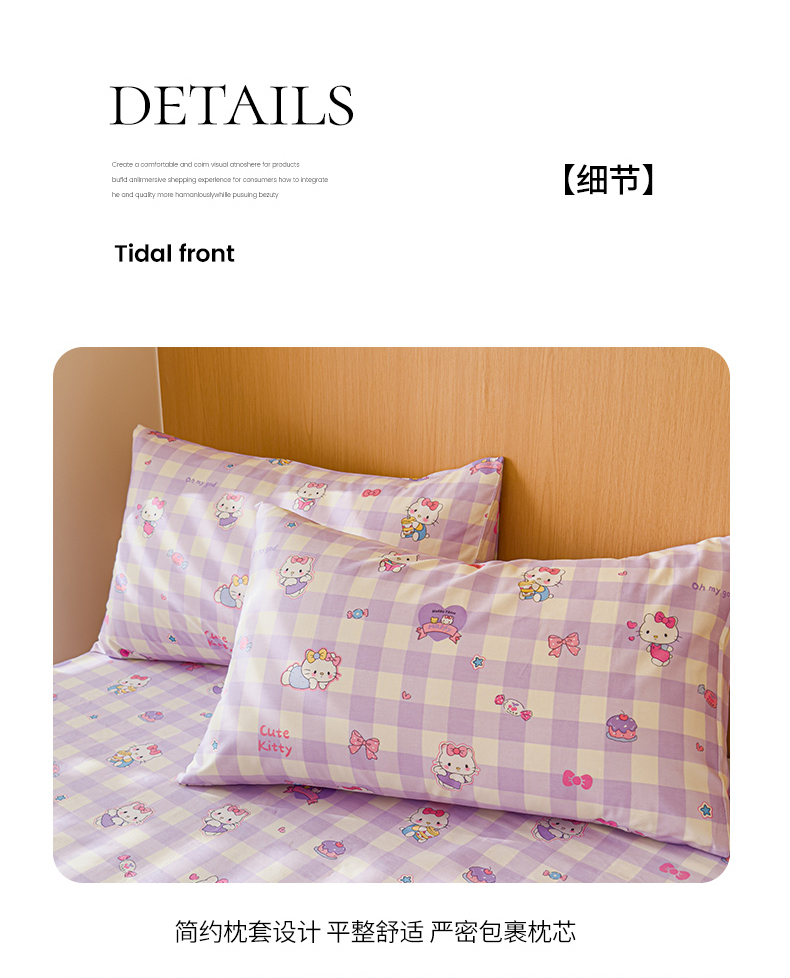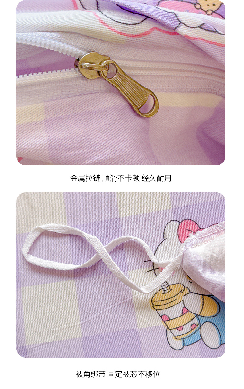 商品名称:感遇全棉软萌清新四件套 紫格猫咪