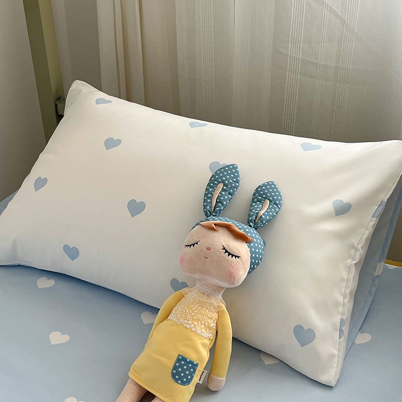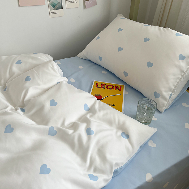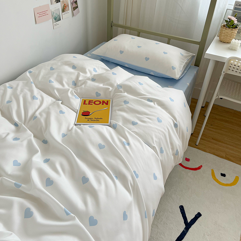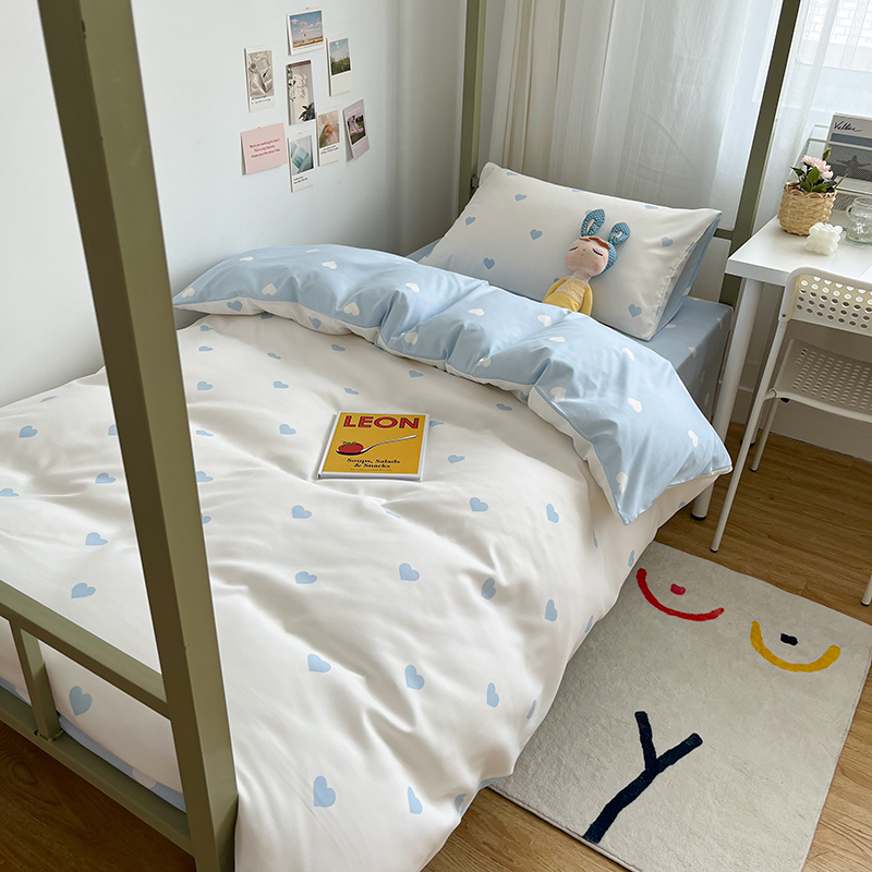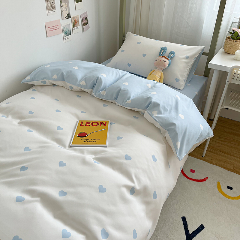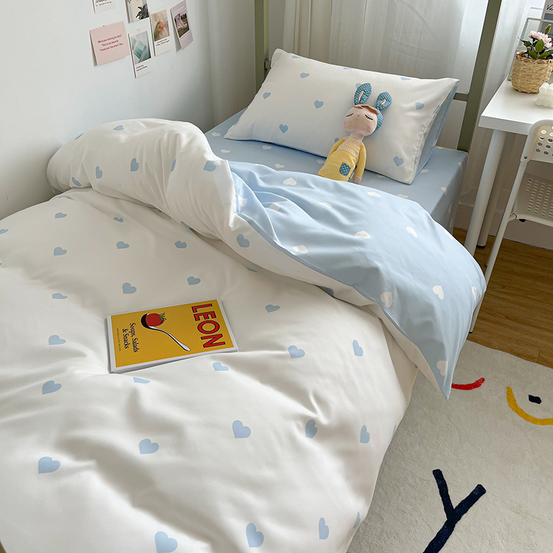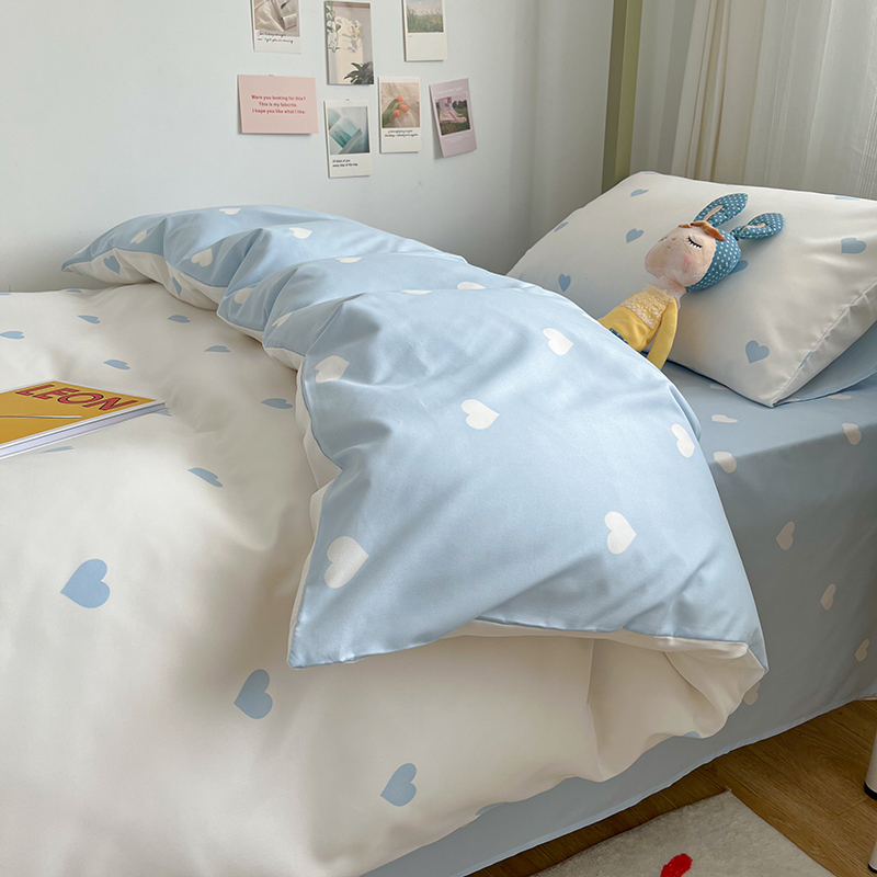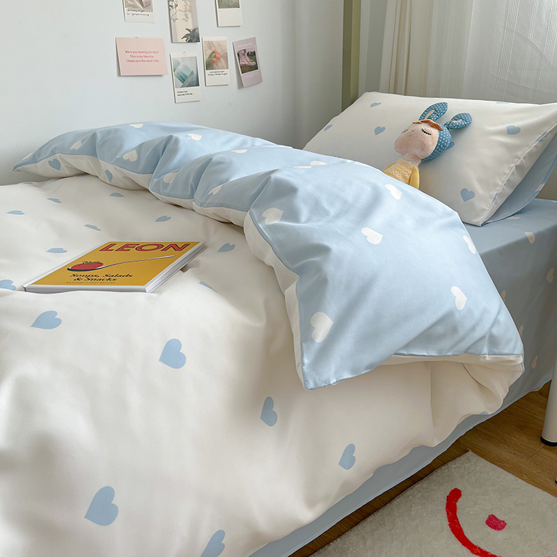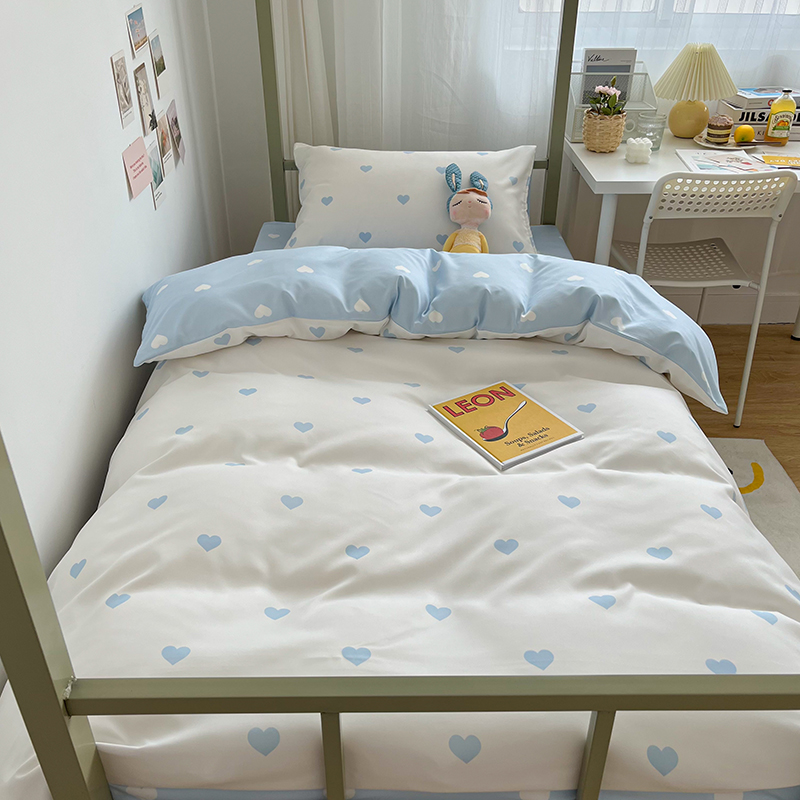 悦织湾家纺 2025新款水洗棉亲肤爱心款学生三件套印花轻奢时尚四件套 爱心-天空蓝
