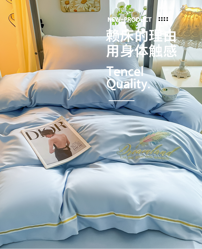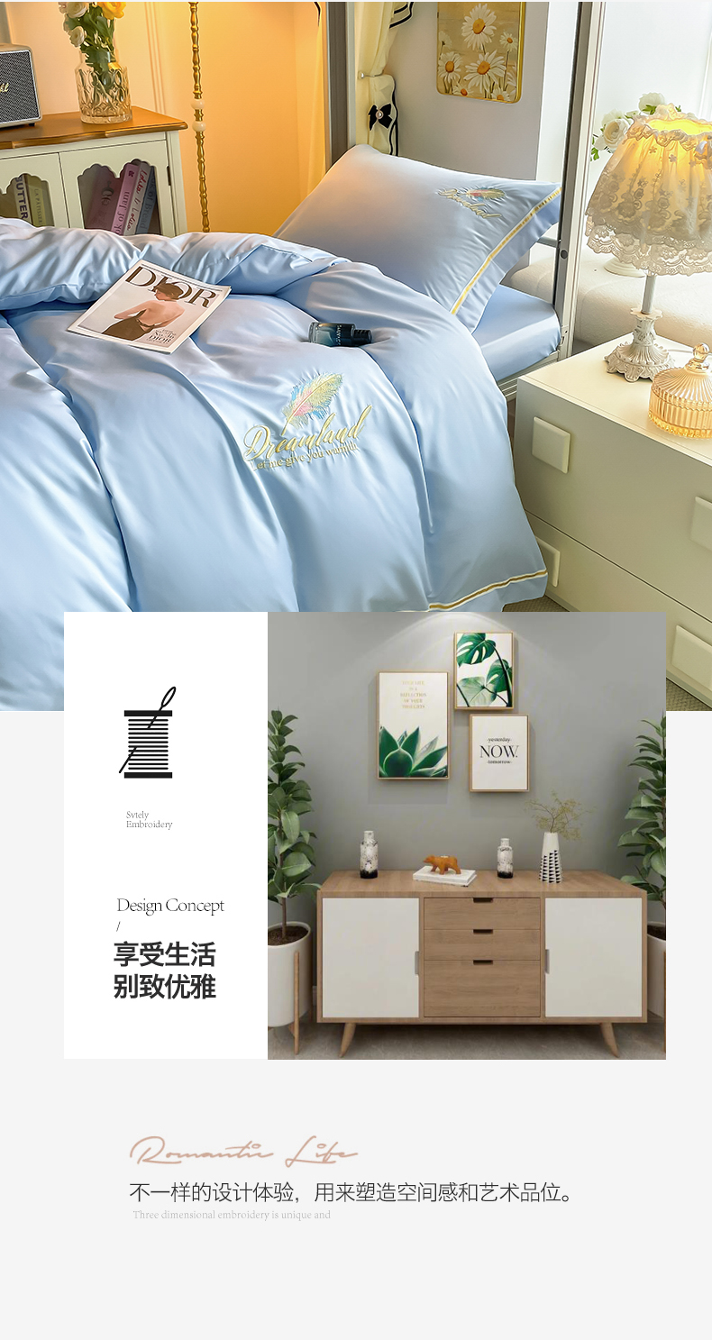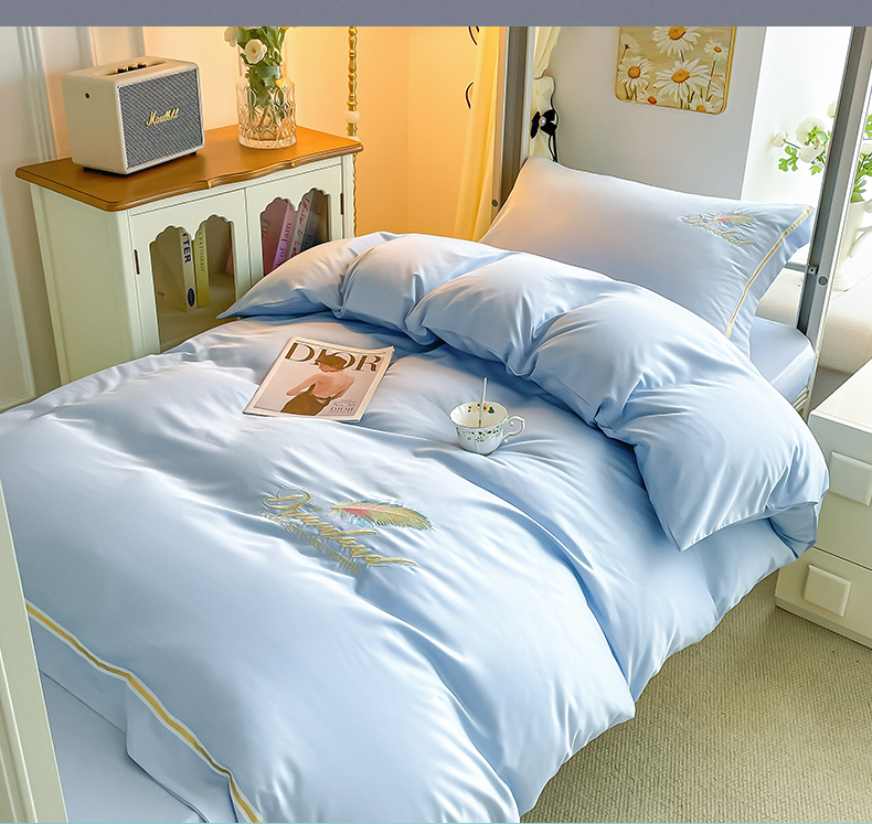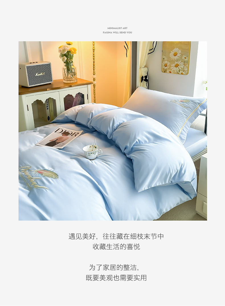 当前位置: 91家纺网 > 商品网购 > 床品套件 > 四件套 > 水洗棉四件套 > 悦织湾家纺 2025新款水洗冰丝羽毛学生宿舍三件套轻奢时尚床上用品四件套 羽毛-天蓝