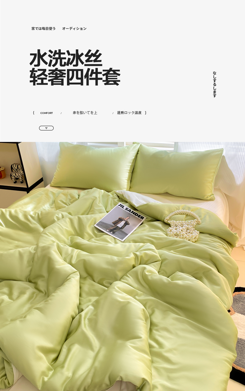 当前位置: 91家纺网 > 商品网购 > 床品套件 > 四件套 > 水洗棉四件套 > 悦织湾家纺 2025新款水洗冰丝双面纯色轻奢四件套学生宿舍三件套 冰丝-果绿芝士