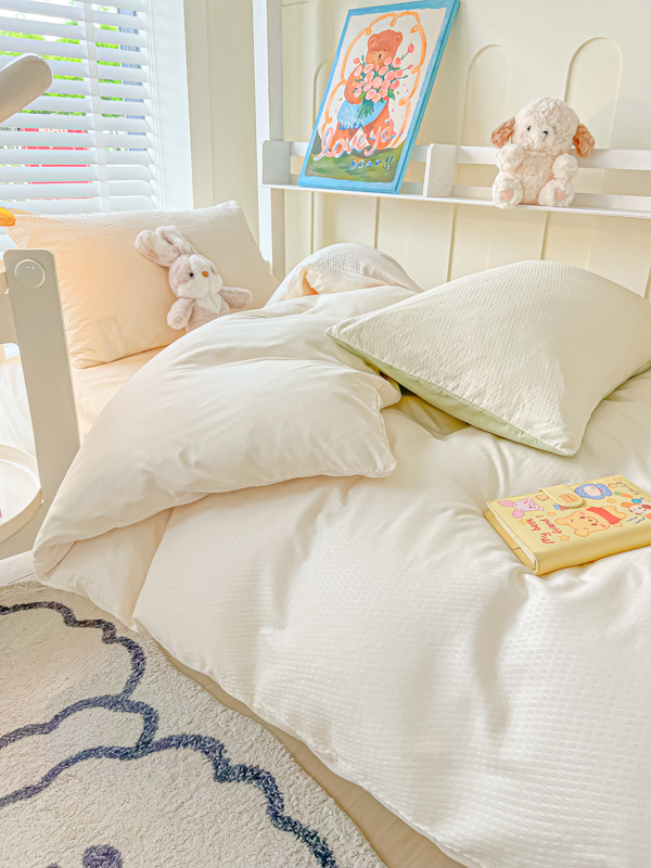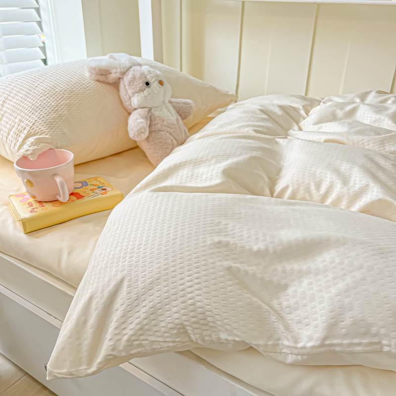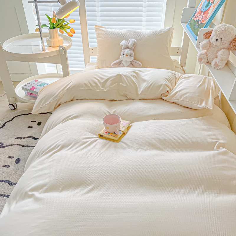 当前位置: 91家纺网 > 商品网购 > 床品套件 > 四件套 > 水洗棉四件套 > 悦织湾家纺 2025新款华夫格压泡亲肤学生宿舍三件套单人床轻奢时尚四件套 华夫格-浅黄