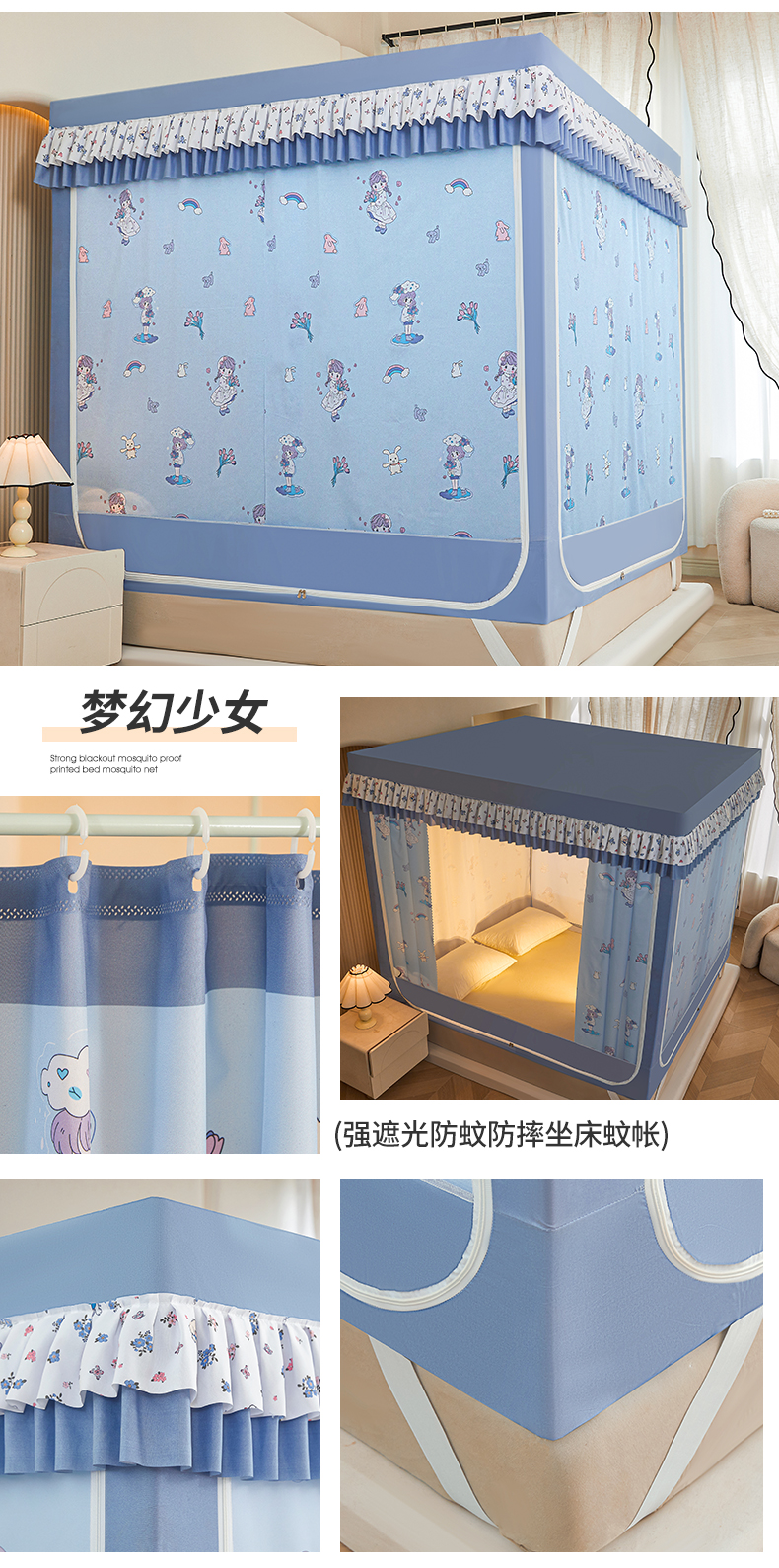 当前位置: 91家纺网 > 商品网购 > 床上用品 > 蚊帐 > 坐床式蚊帐 > 迪凡保罗蚊帐 2025新款2503专版印花遮光帘防摔坐床蚊帐实拍图 梦幻少女