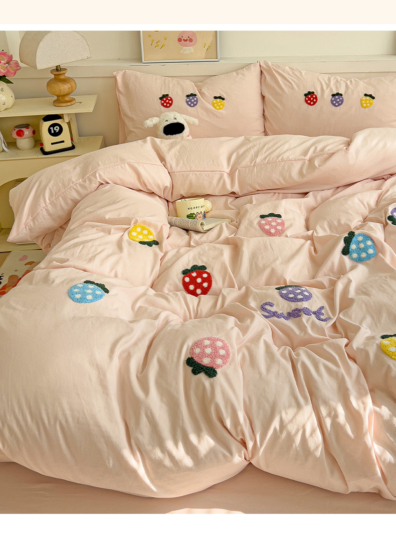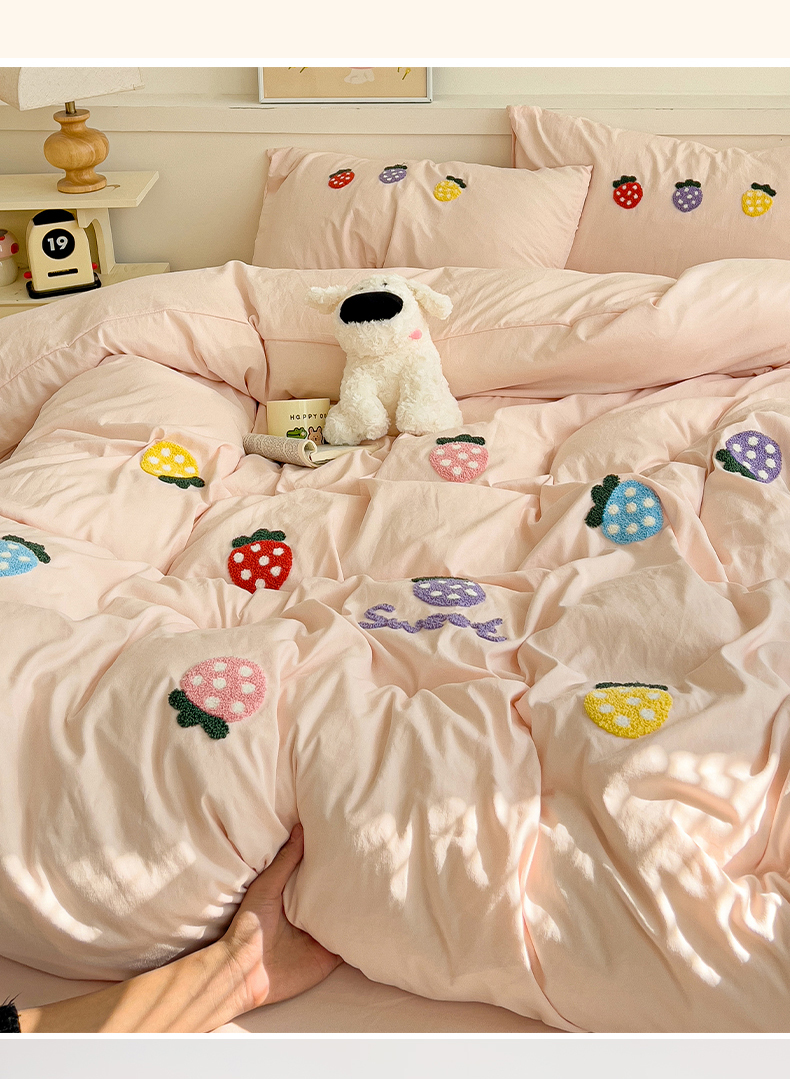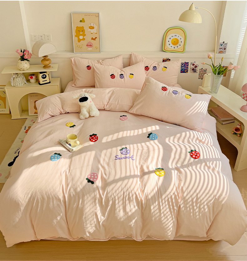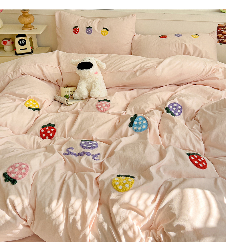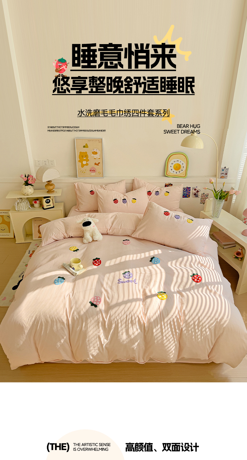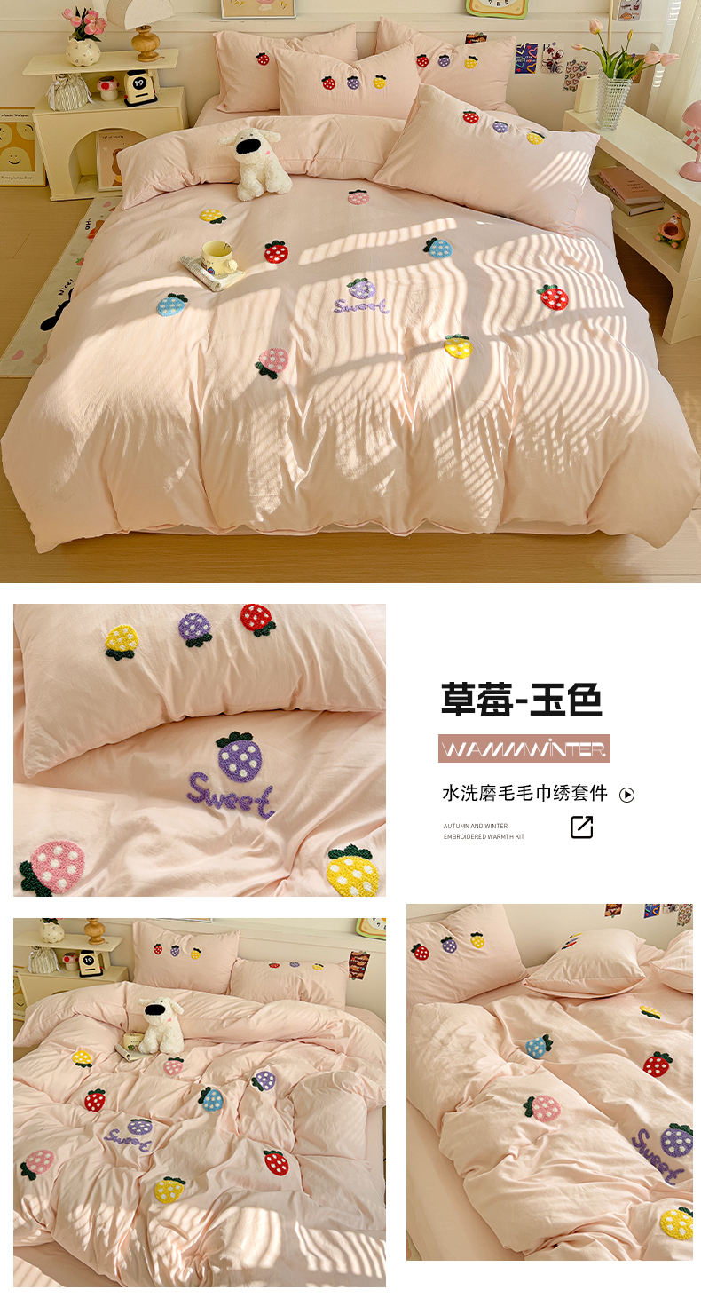 当前位置: 91家纺网 > 商品网购 > 床品套件 > 四件套 > 水洗棉四件套 > 逸尚阁 2025新款小清新毛巾绣四件套(提供买家秀) 草莓-浅玉