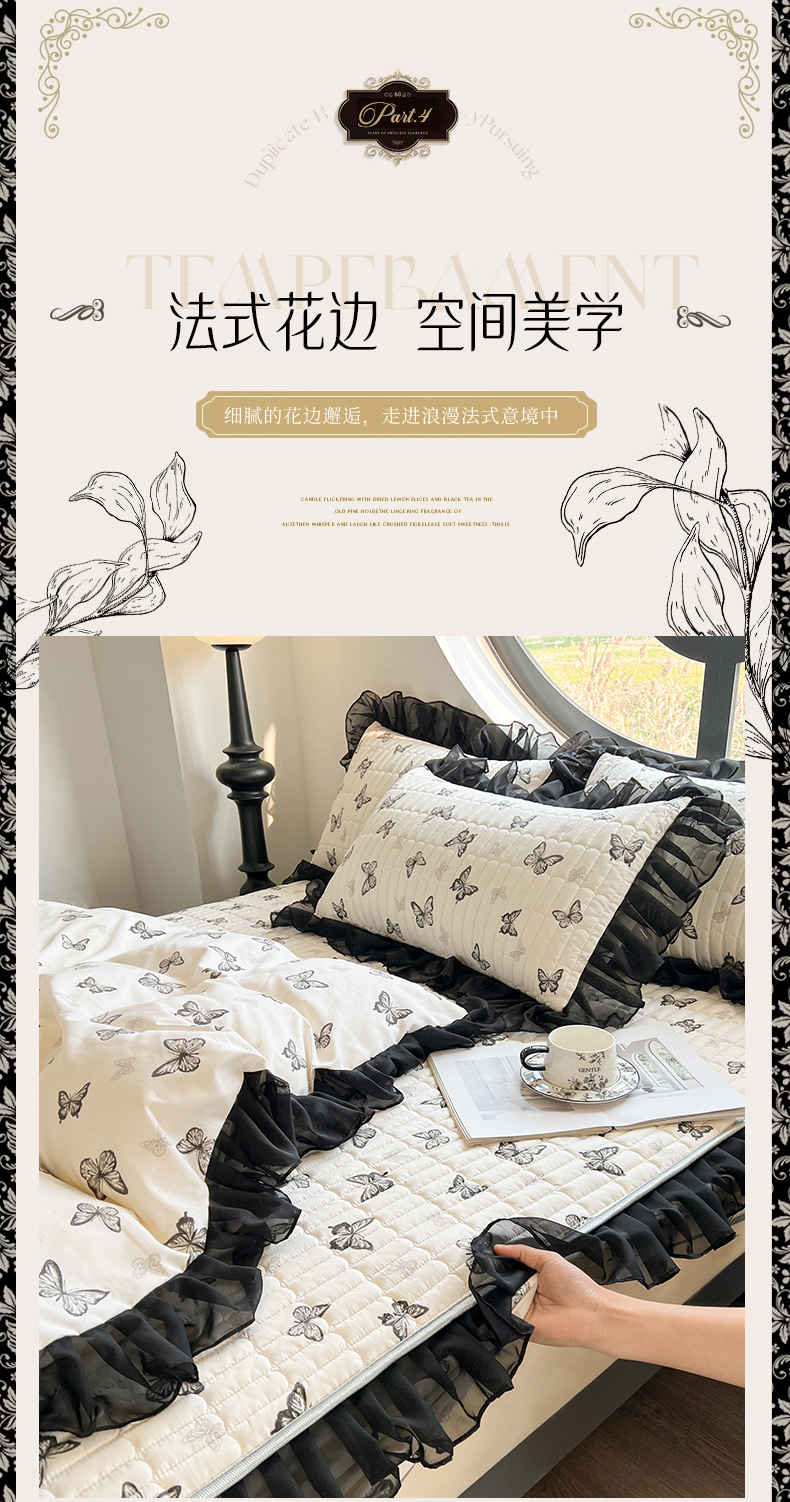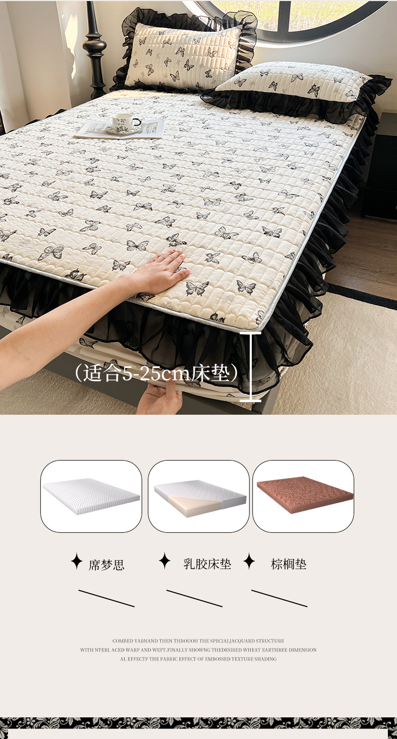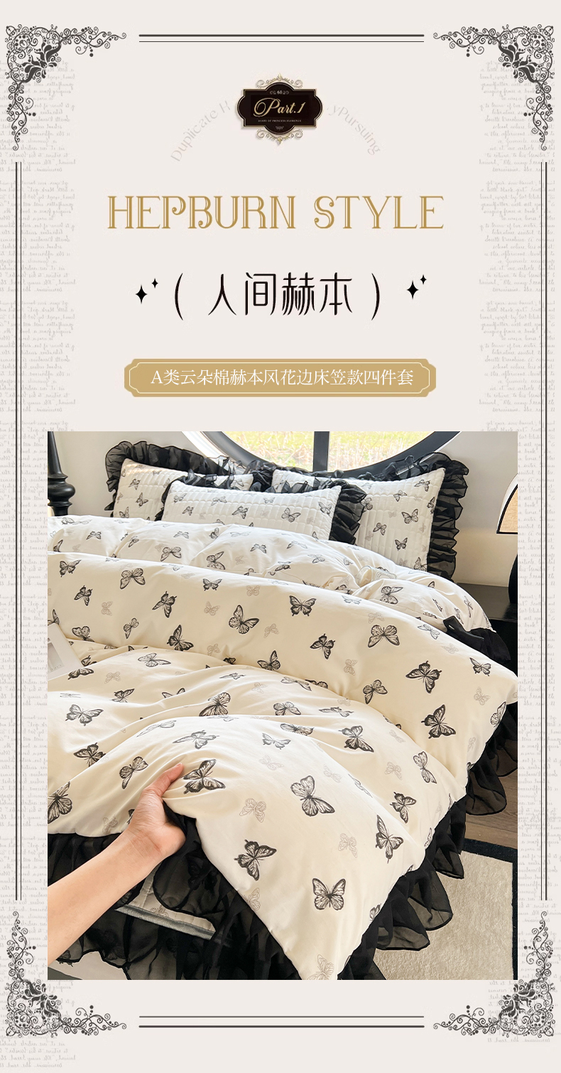 当前位置: 91家纺网 > 商品网购 > 床品套件 > 四件套 > 其它四件套 > 眠势力 2025新款赫本风花边四件套床笠款四季通用夹棉席梦思保护套法式 蝴蝶飞
