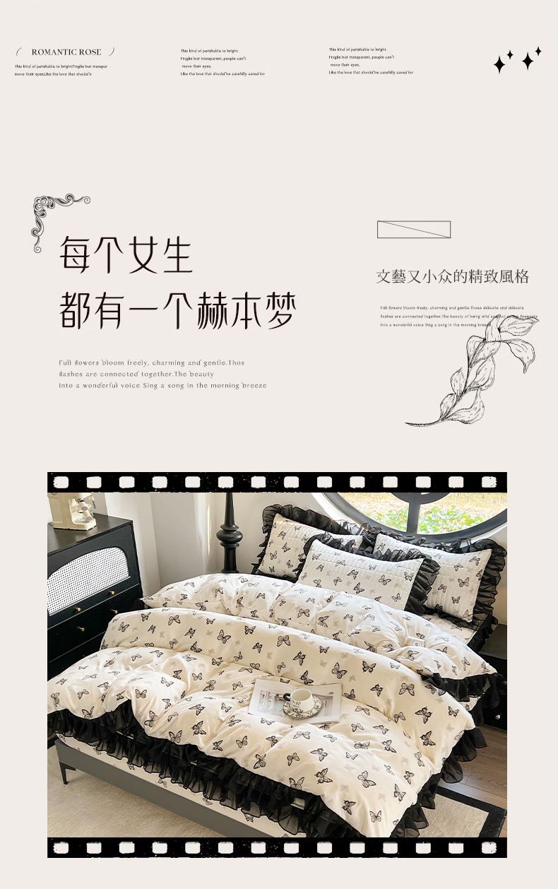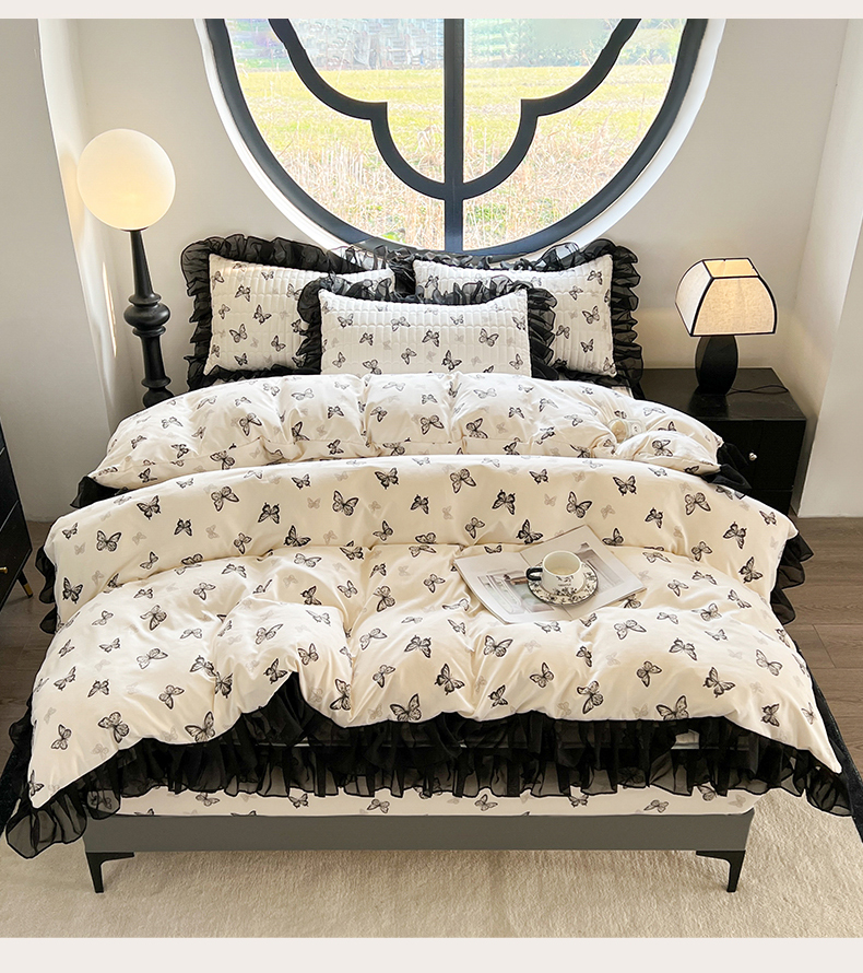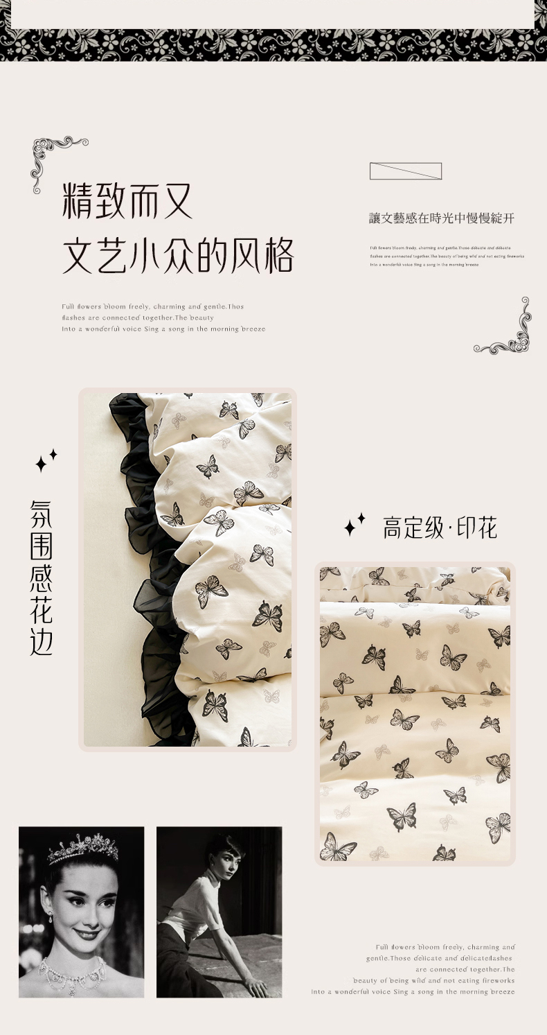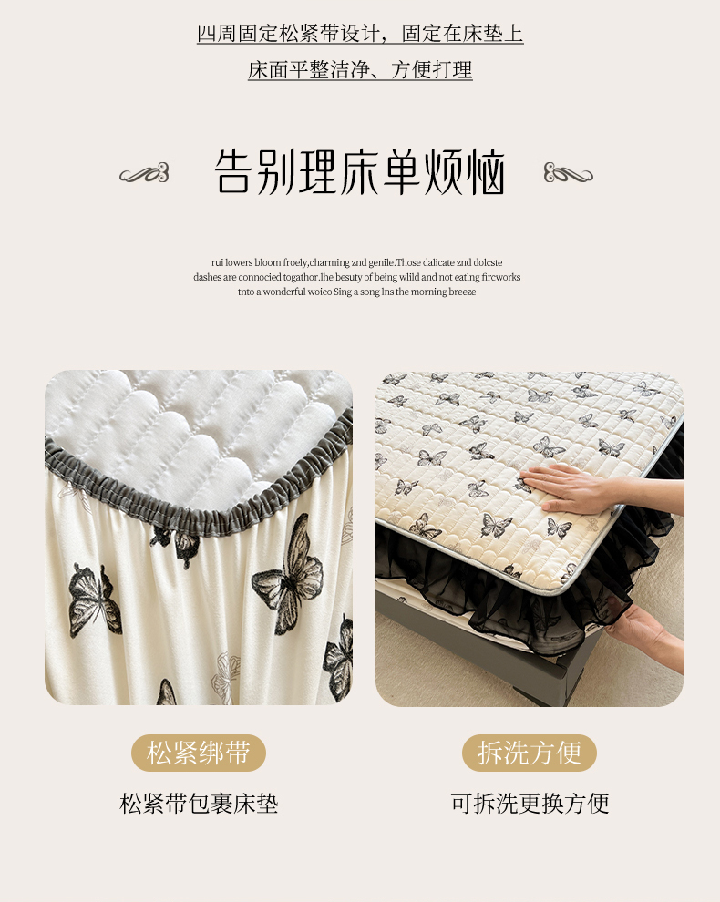 当前位置: 91家纺网 > 商品网购 > 床品套件 > 四件套 > 其它四件套 > 眠势力 2025新款赫本风花边四件套床笠款四季通用夹棉席梦思保护套法式 蝴蝶飞