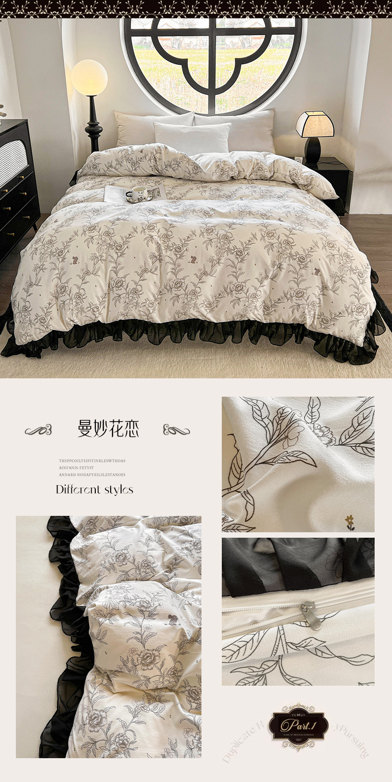 • 91家纺网 家纺一手货源 找家纺 眠势力 2025新款赫本风被套韩版荷叶花边被罩四季款 曼妙花恋
