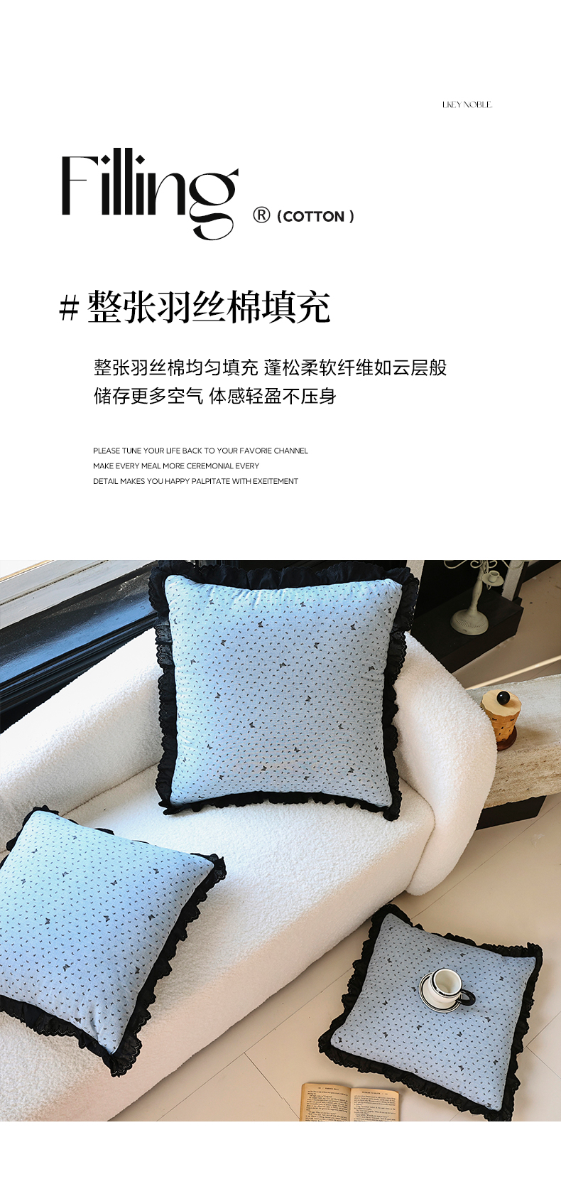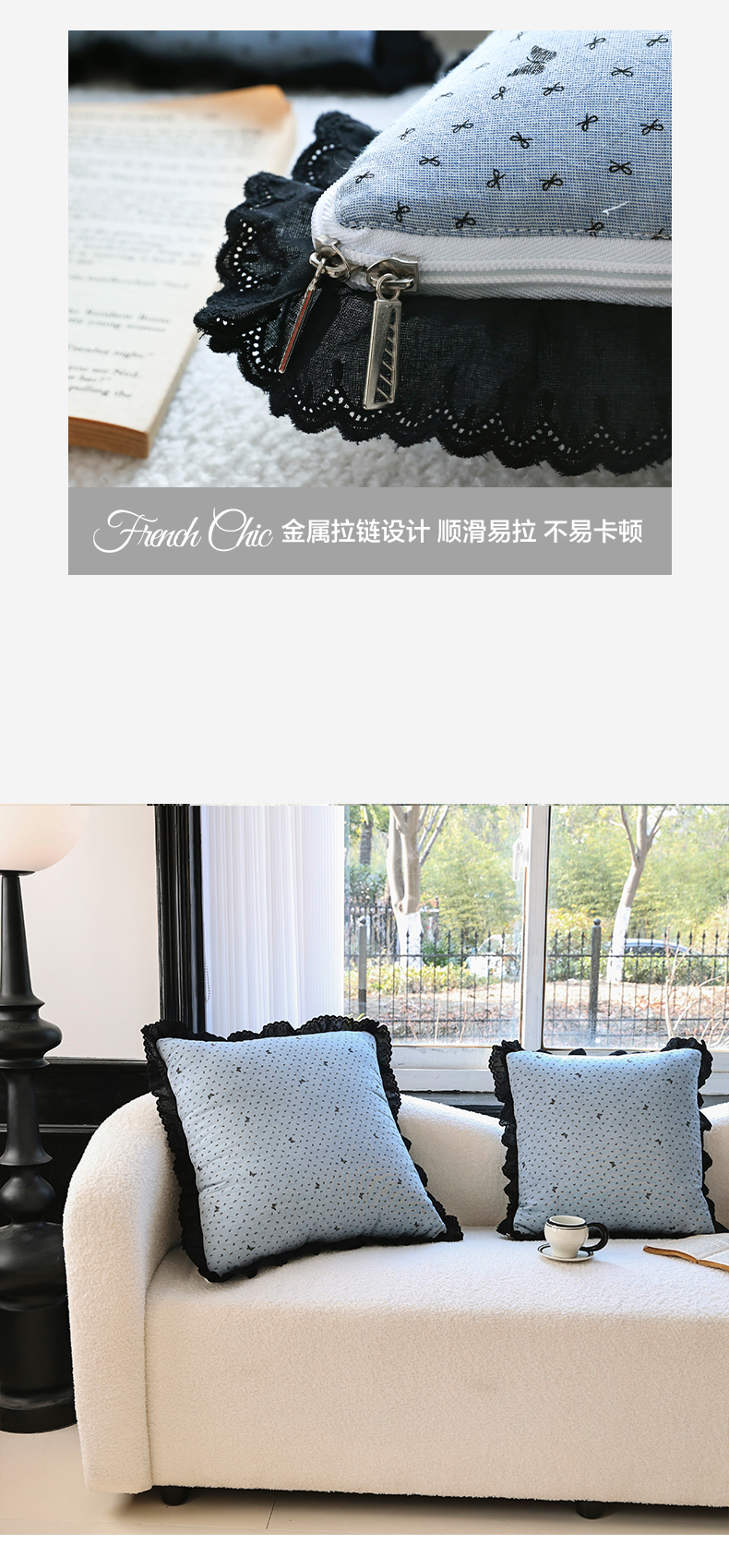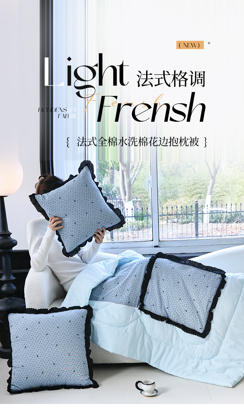 番茄+ 2025新款法式全棉黑花边抱枕被系列 蝶梦蓝