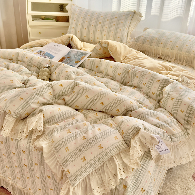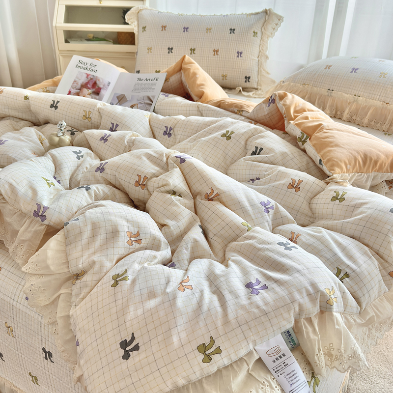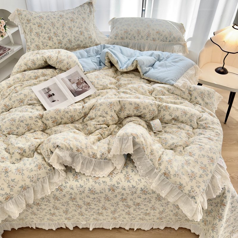 • 91家纺网 家纺一手货源 找家纺 尊妙被业 2025春夏新款全棉纯棉印花法式花边春秋被可机洗 蝴蝶梦