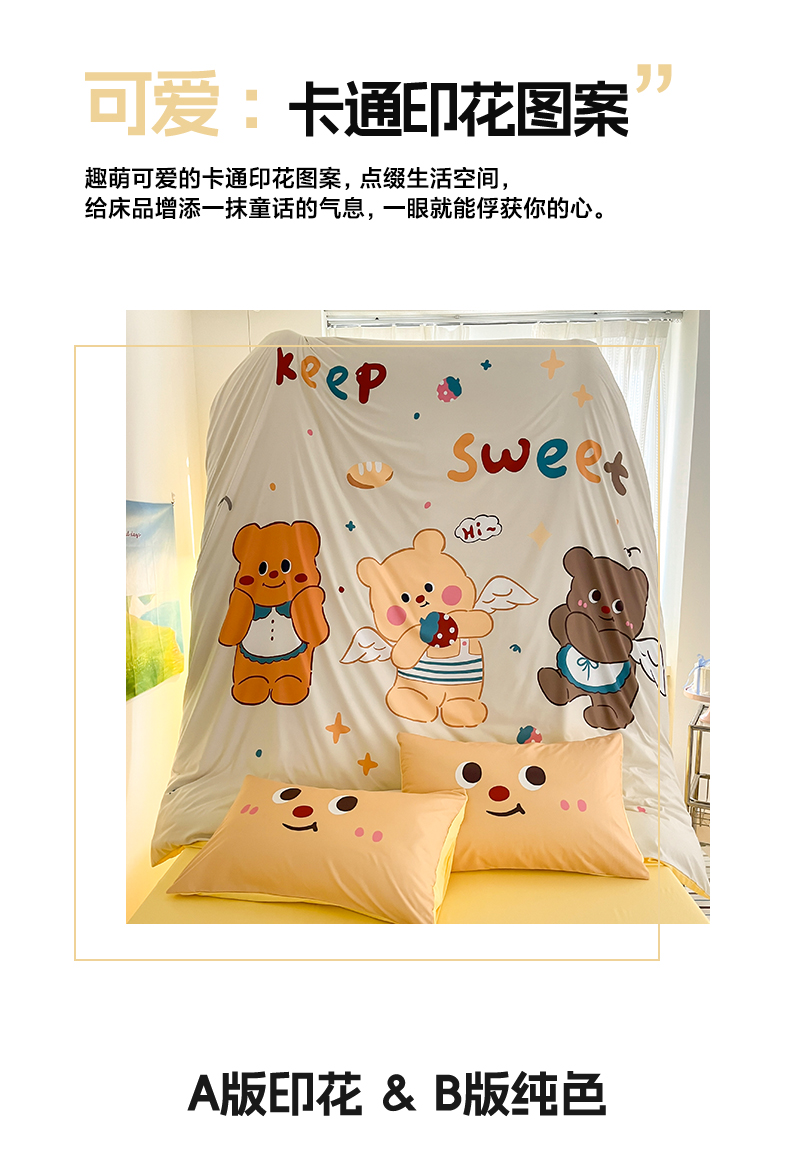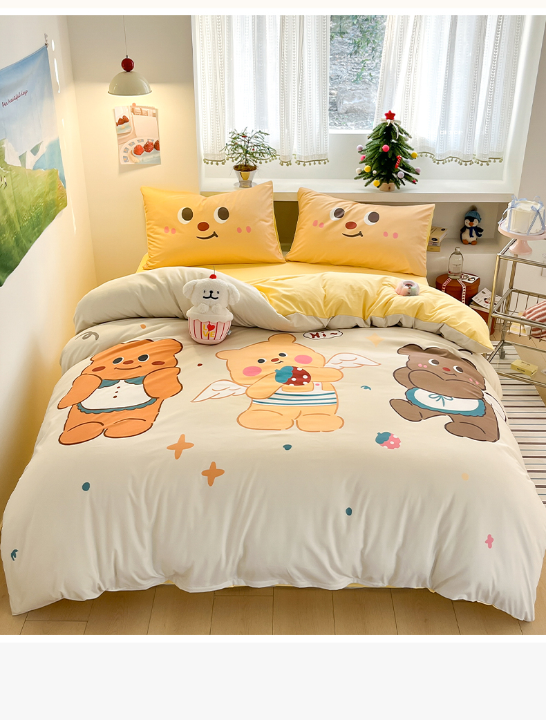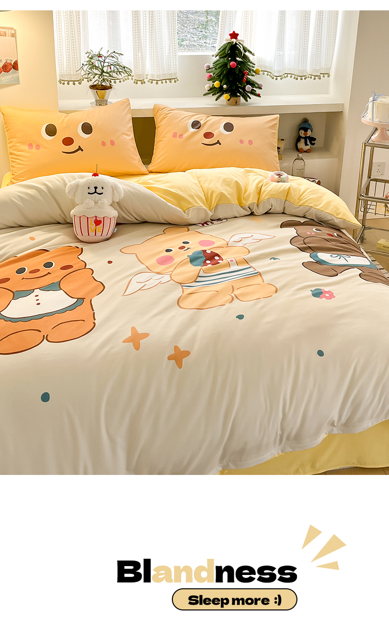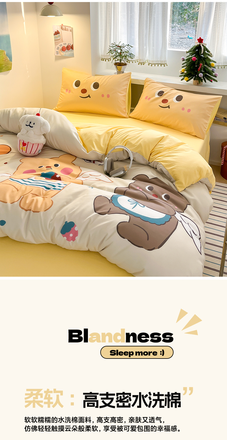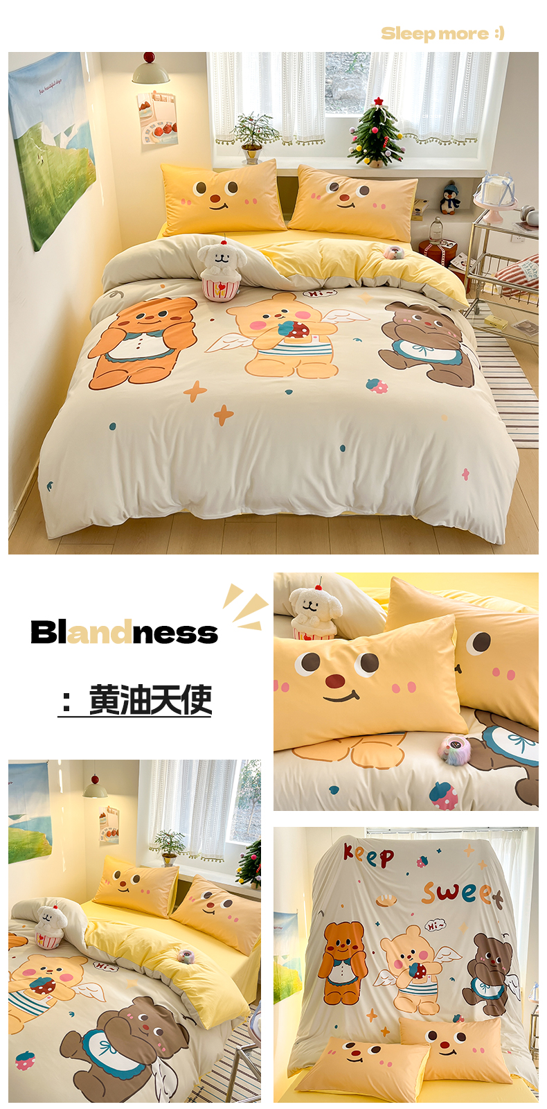 当前位置: 91家纺网 > 商品网购 > 床品套件 > 四件套 > 水洗棉四件套 > 贝扬思家纺 2025新款水洗棉萌萌卡通大版系列四件套 黄油天使