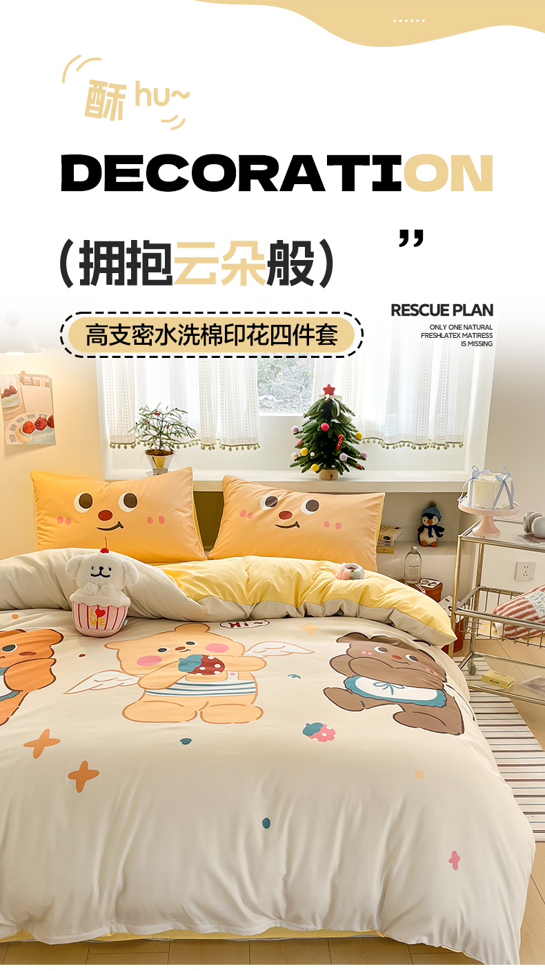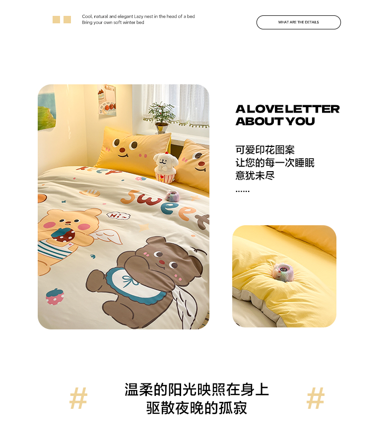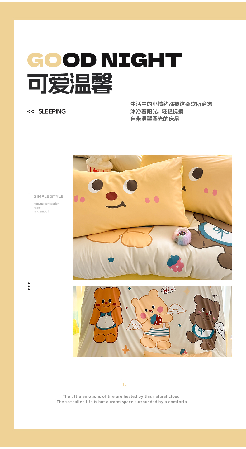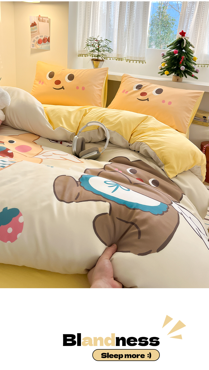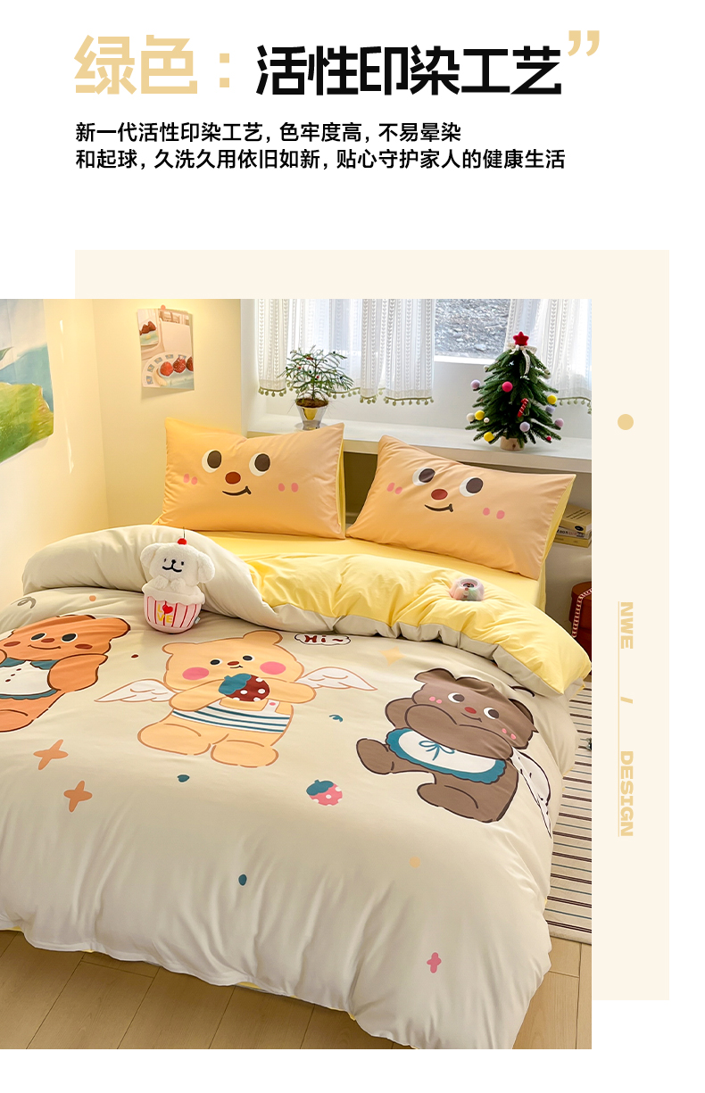 当前位置: 91家纺网 > 商品网购 > 床品套件 > 四件套 > 水洗棉四件套 > 贝扬思家纺 2025新款水洗棉萌萌卡通大版系列四件套 黄油天使