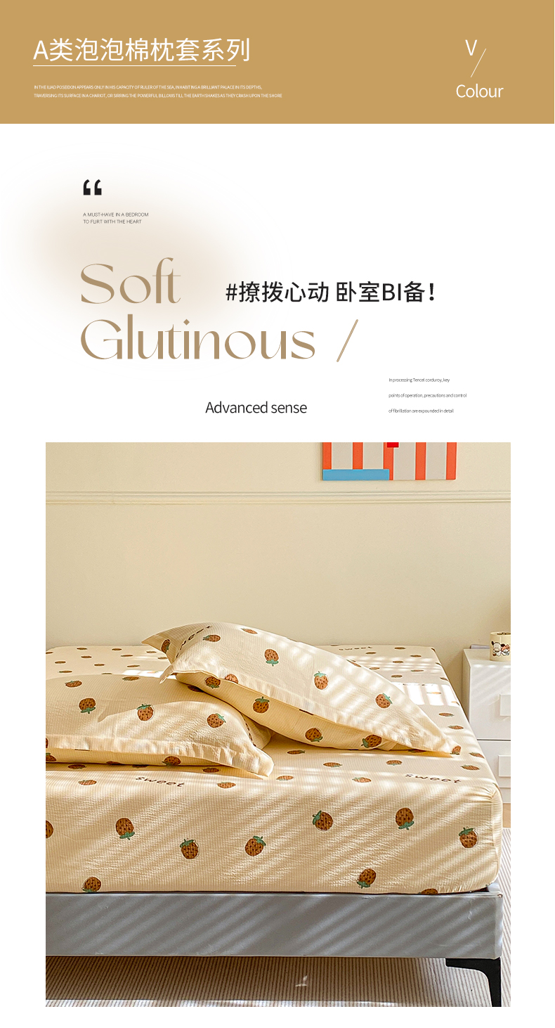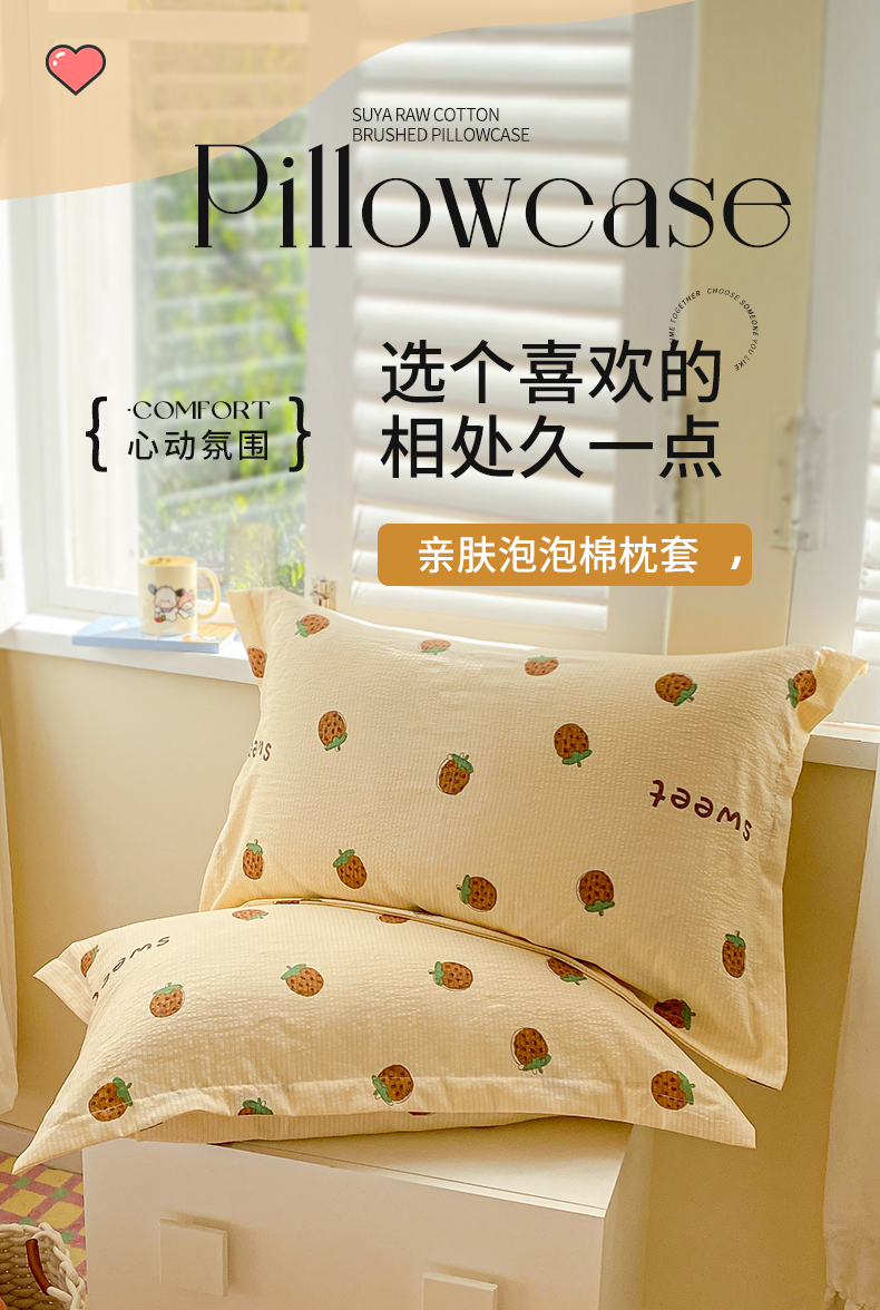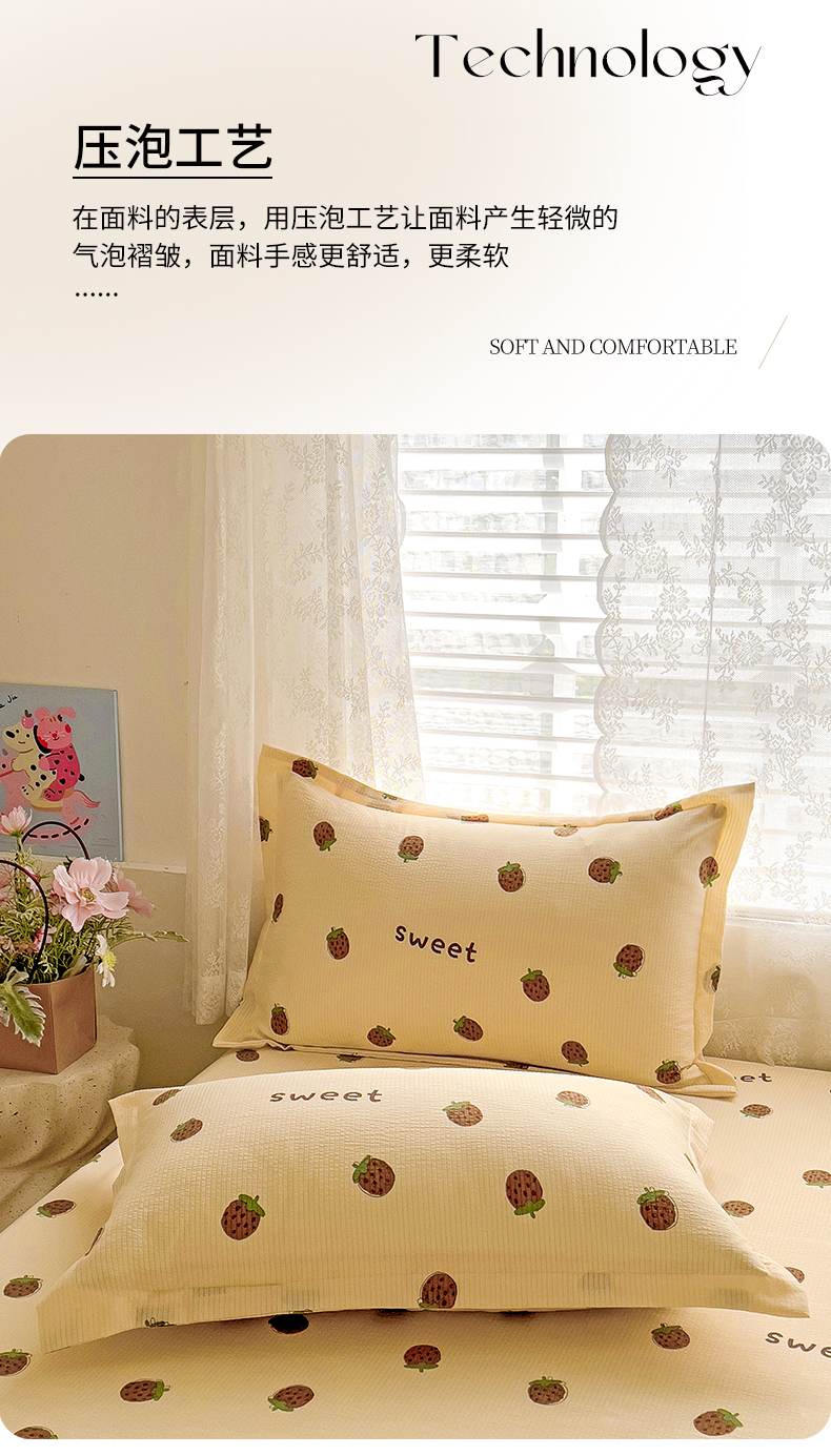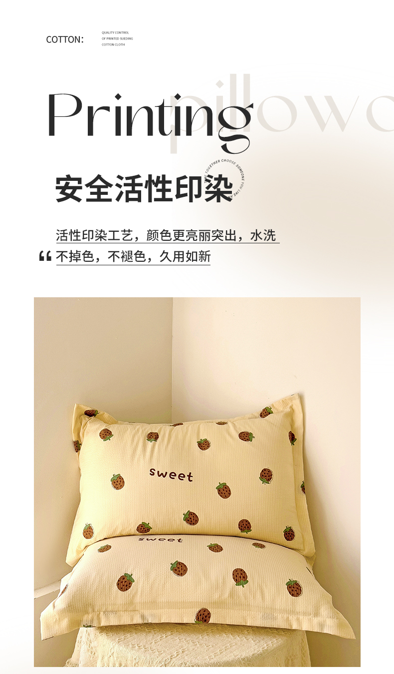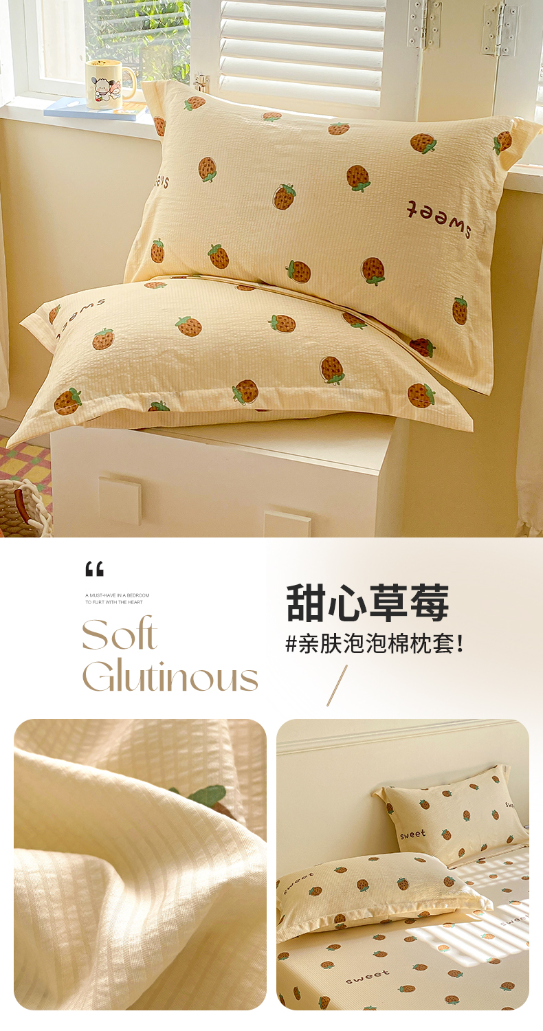 恬澳家纺 2025新款泡泡棉印花枕套 甜心草莓