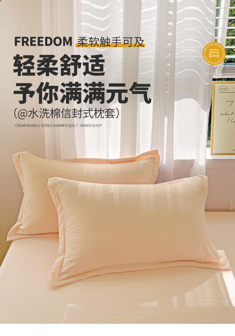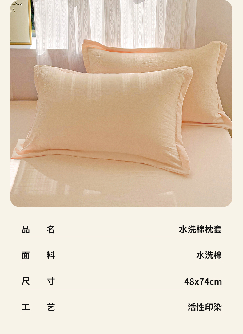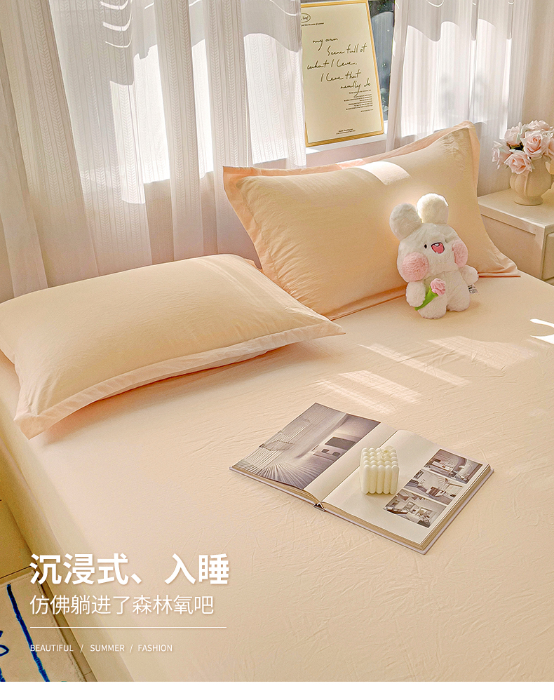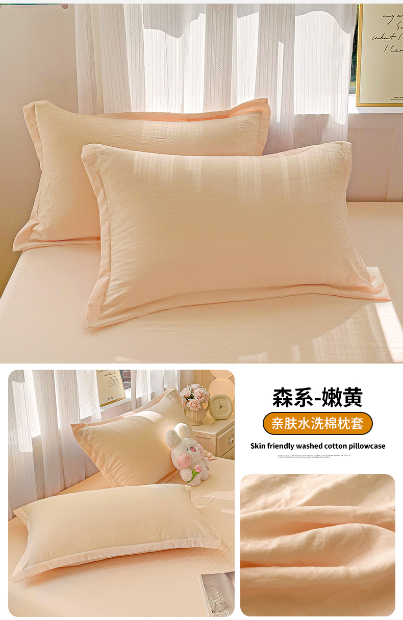 恬澳家纺 2025新款水洗棉森系枕套 森系-嫩黄