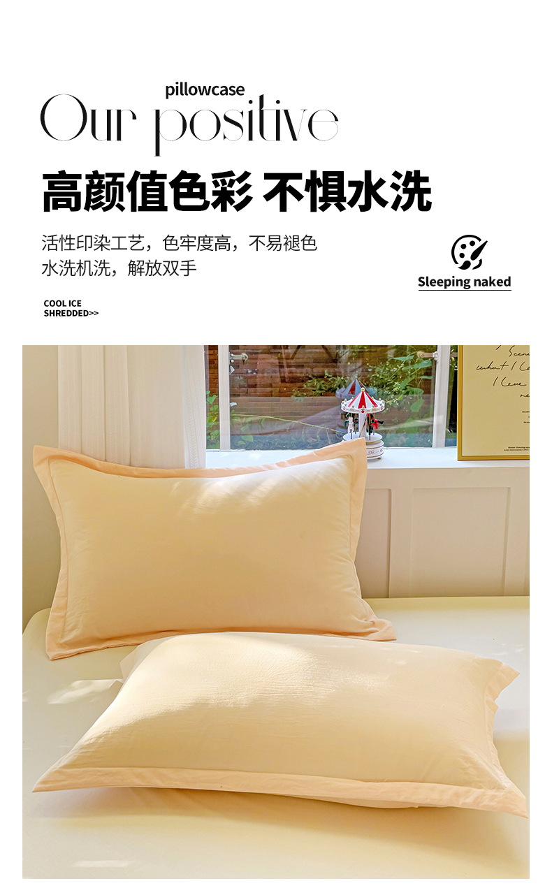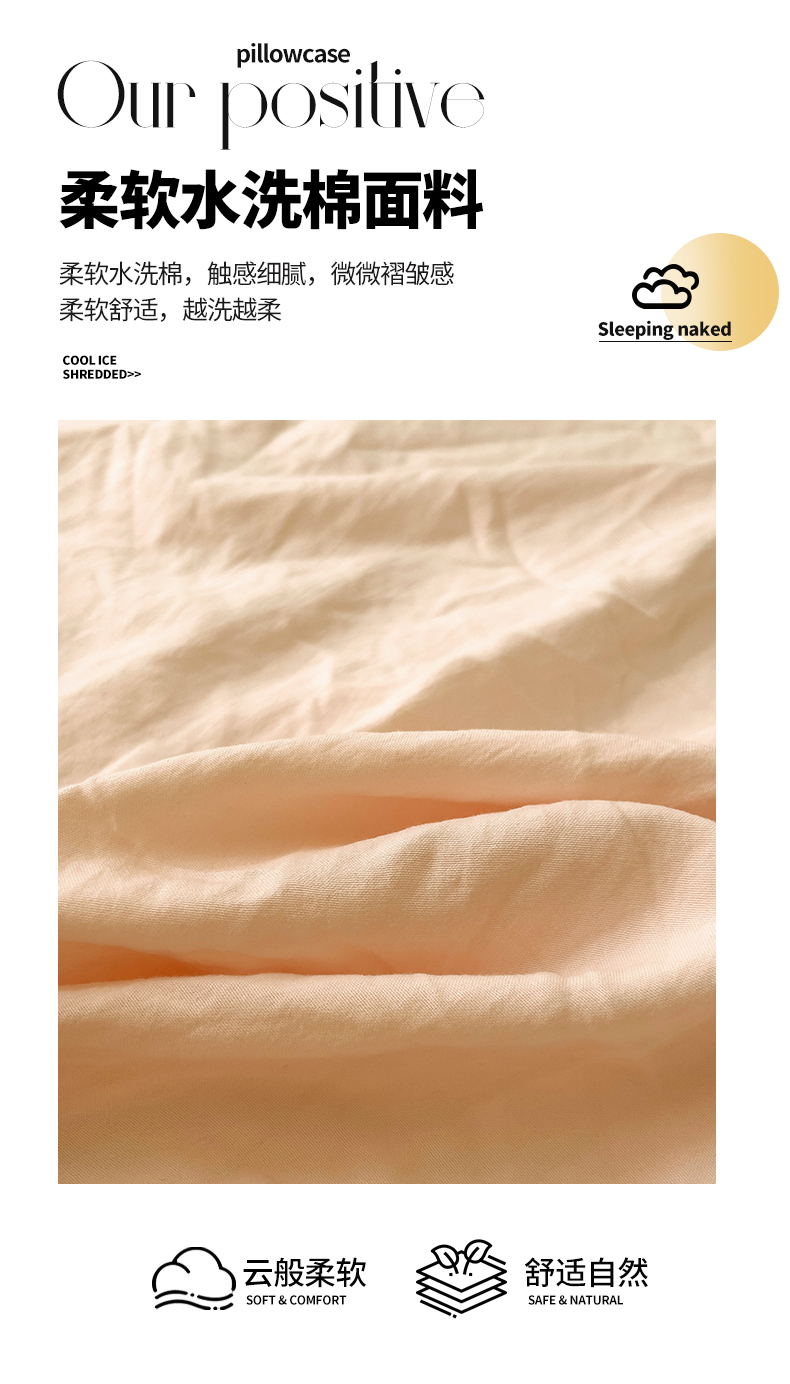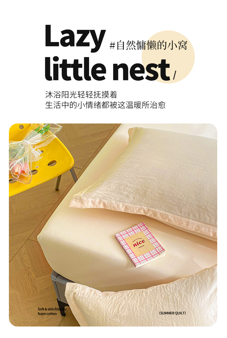 恬澳家纺 2025新款水洗棉森系枕套 森系-嫩黄