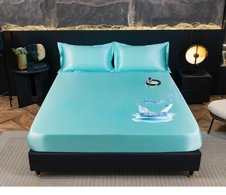 • 91家纺网 家纺一手货源 找家纺 圣比熊2025新款防水冰丝纯色床笠凉爽柔顺床垫保护罩 防水款-水蓝色