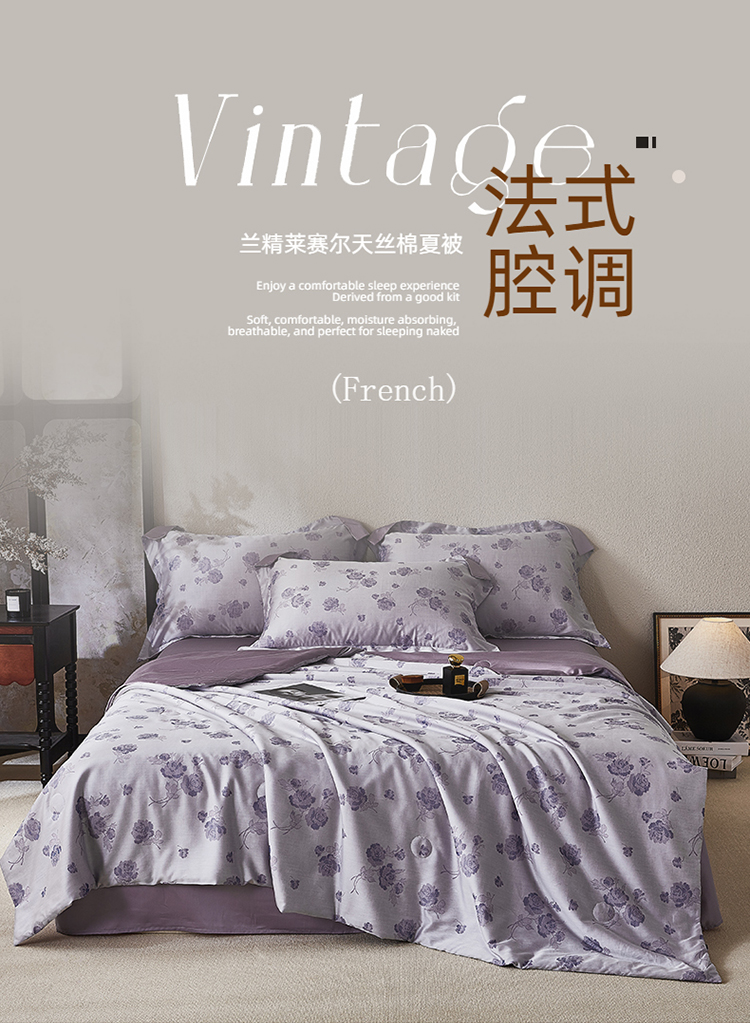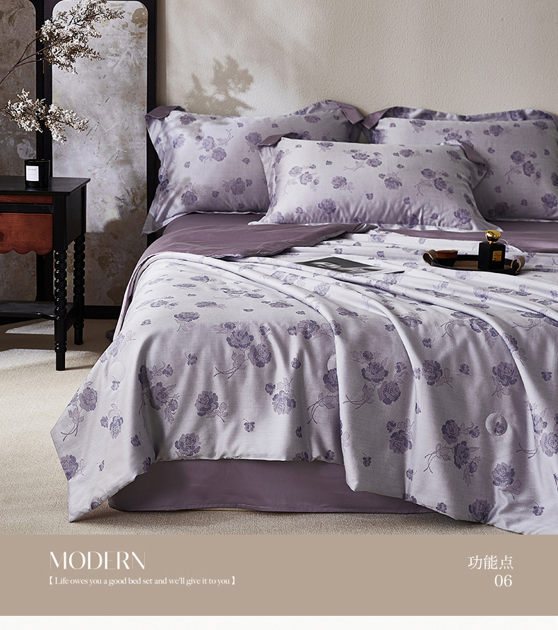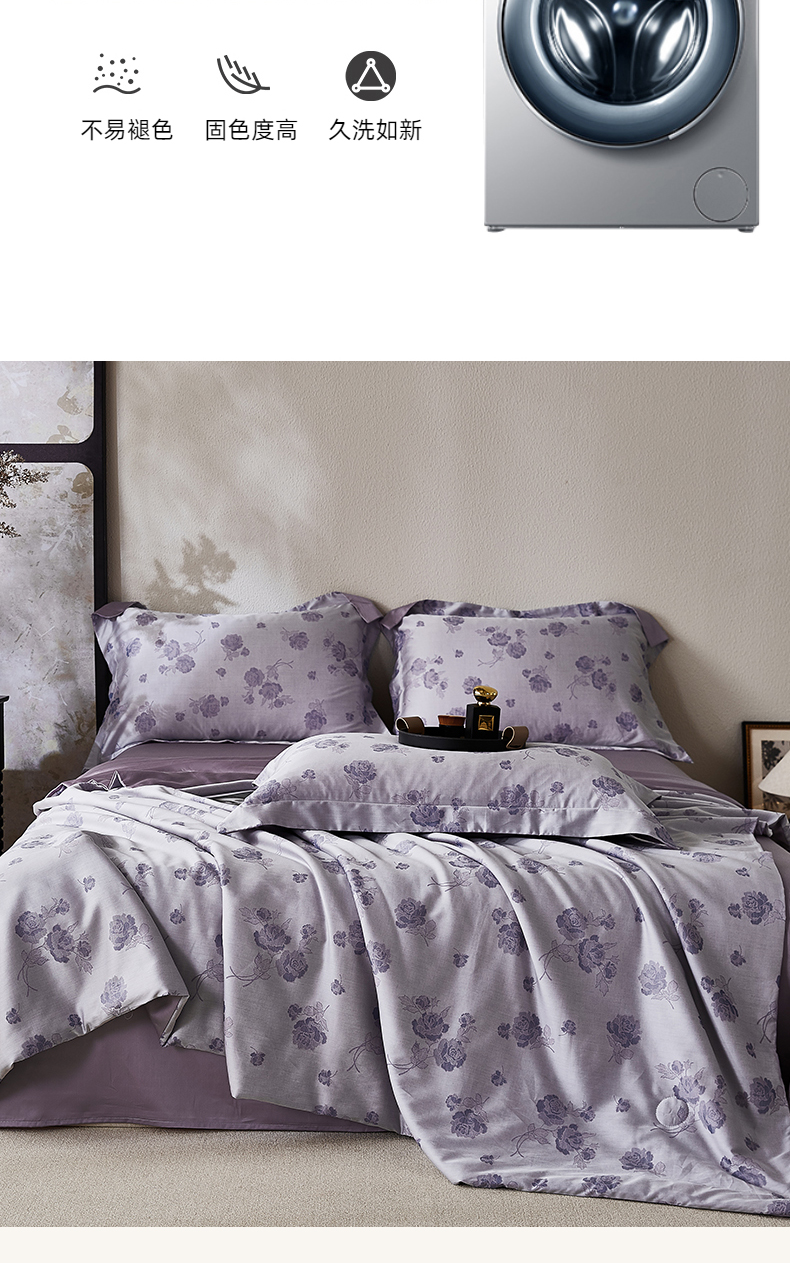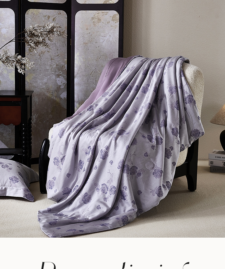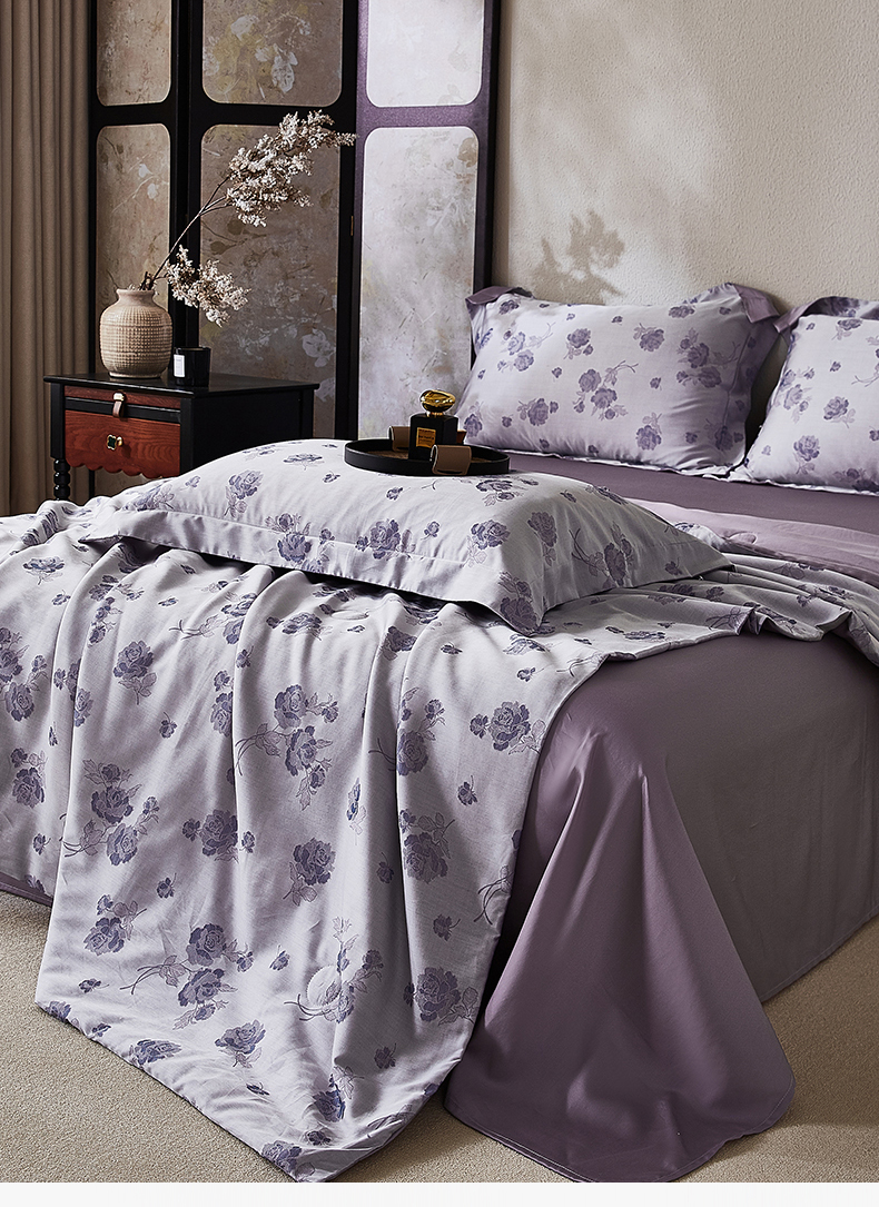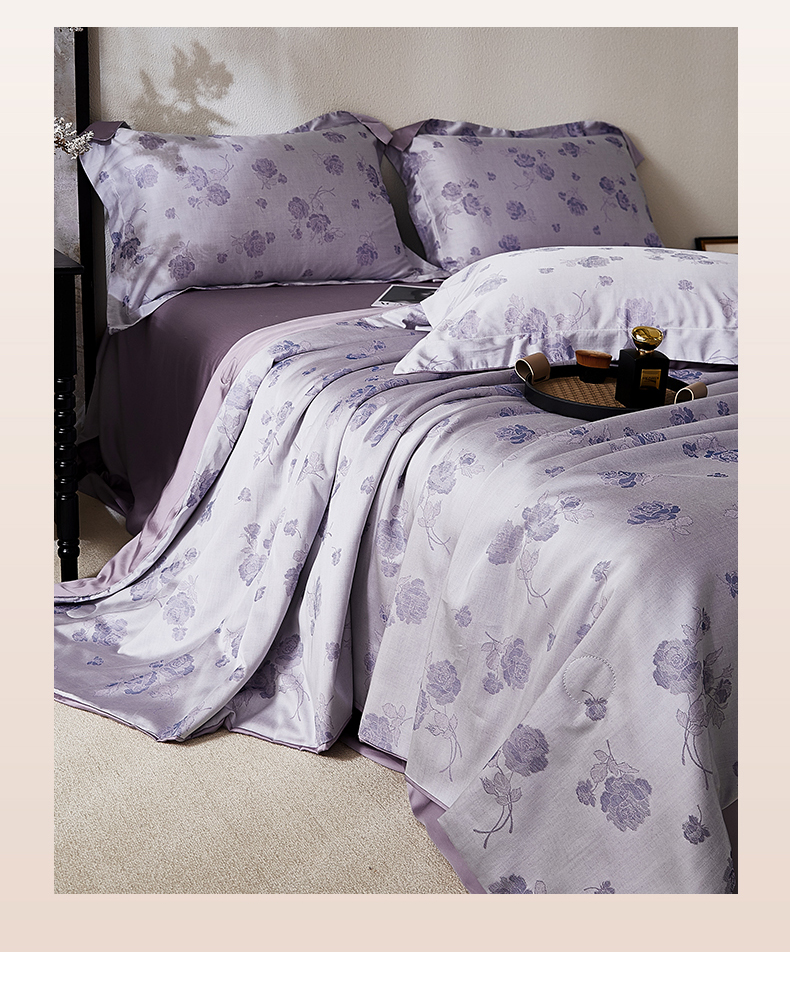 当前位置: 91家纺网 > 商品网购 > 被子 > 莱赛尔夏被 > 鸣升家纺 2025新款莱赛尔兰精天丝棉色织大提花大豆夏凉被四件套 雾野山亭-紫
