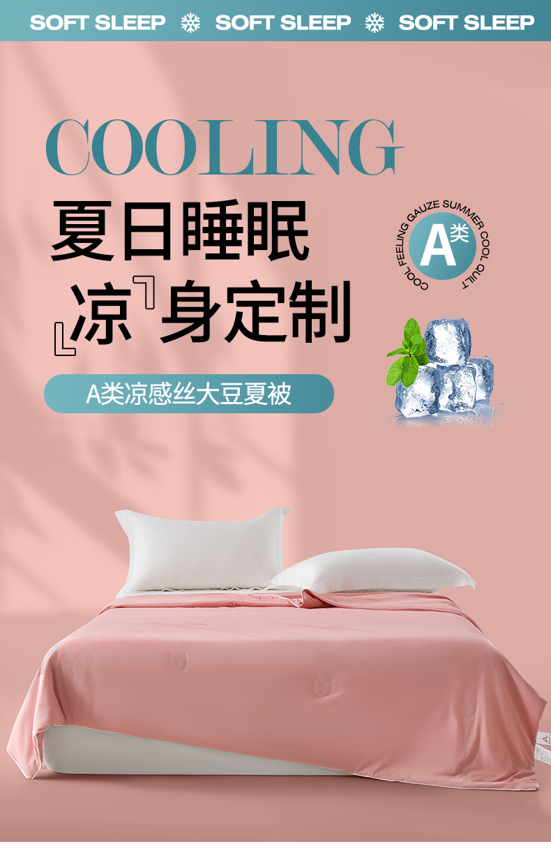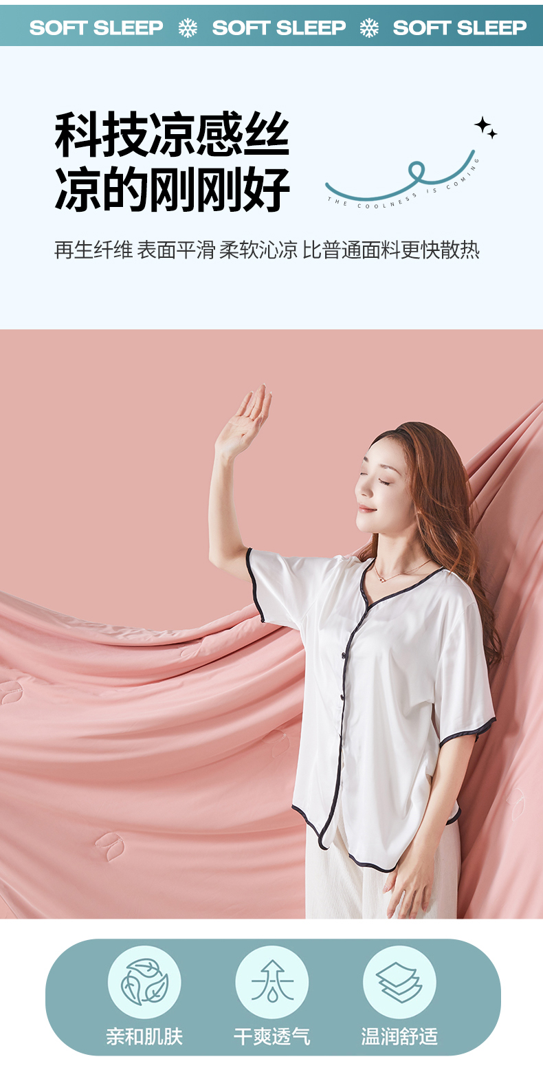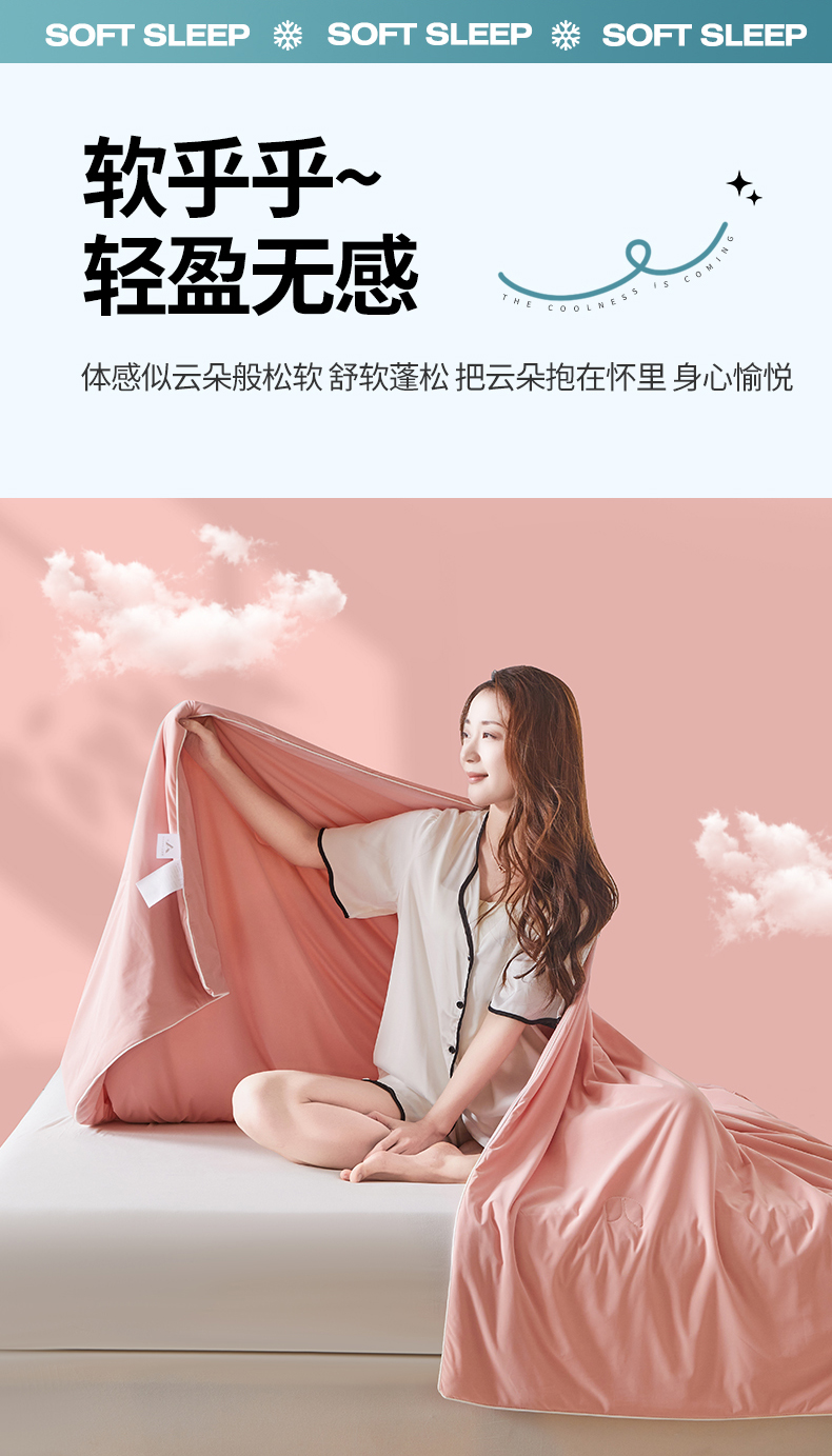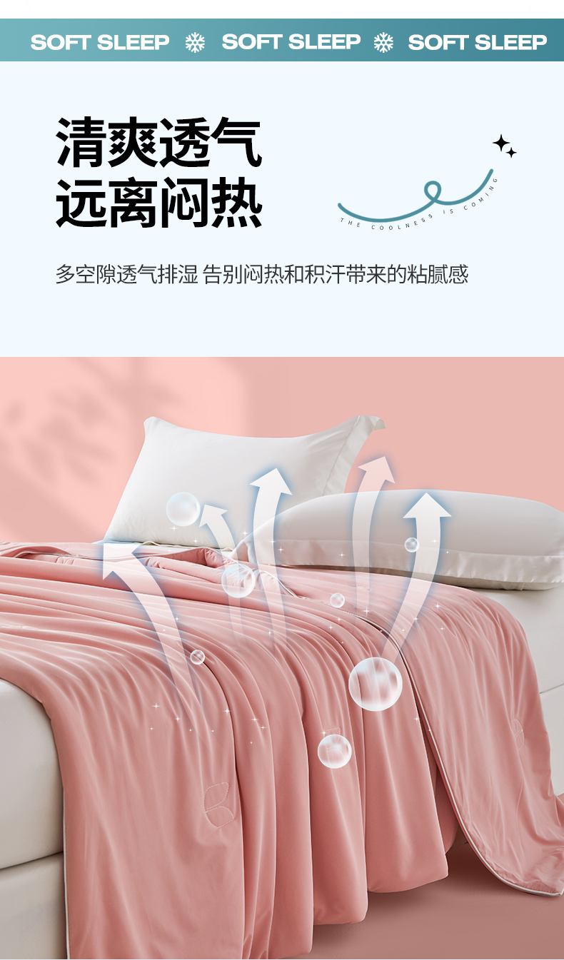 商品名称:2025新款A类氨纶凉感天丝夏被纯色冰淇淋西瓜夏凉被空调被直播带货 蜜桃粉