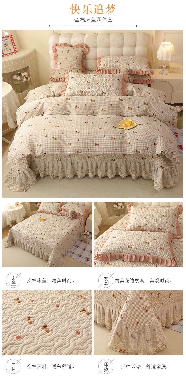 当前位置: 91家纺网 > 商品网购 > 床品套件 > 四件套 > 其它四件套 > 美达家纺2025新款全棉蕾丝边单床盖四件套 快乐追梦